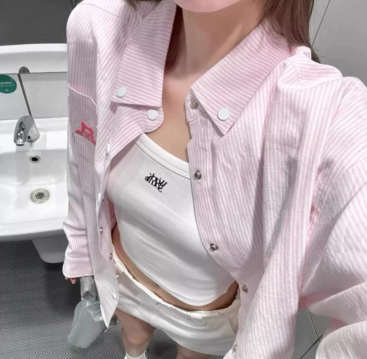 신선한 강아지 자수 줄무늬 선스크린 셔츠 재킷 여성의 봄과 여름 새로운 디자인 감각 느슨한 캐주얼 셔츠스토어 가기