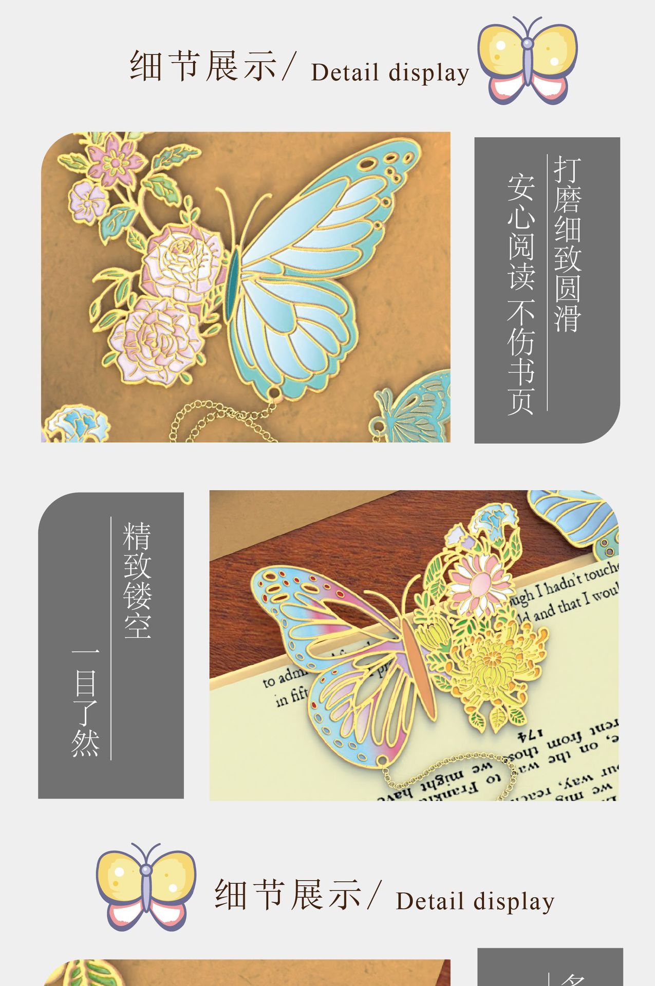 그림 나비 시리즈 중공 유화 금속 책갈피 복고풍 특별한 모양의 나비 학생 독서 크리 에이 티브 책갈피 홀더 도매스토어 가기