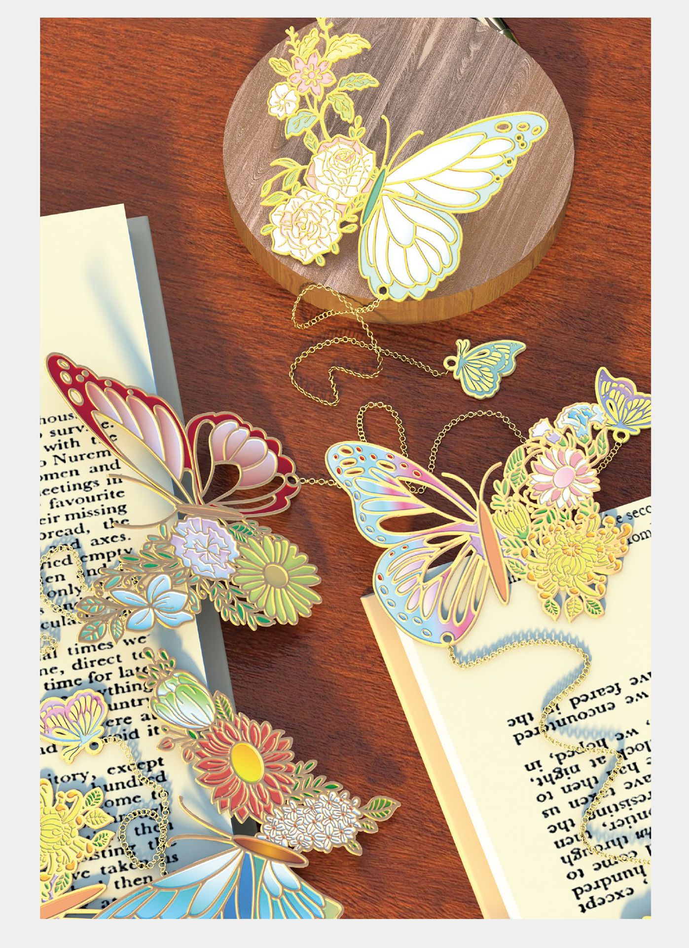 그림 나비 시리즈 중공 유화 금속 책갈피 복고풍 특별한 모양의 나비 학생 독서 크리 에이 티브 책갈피 홀더 도매
