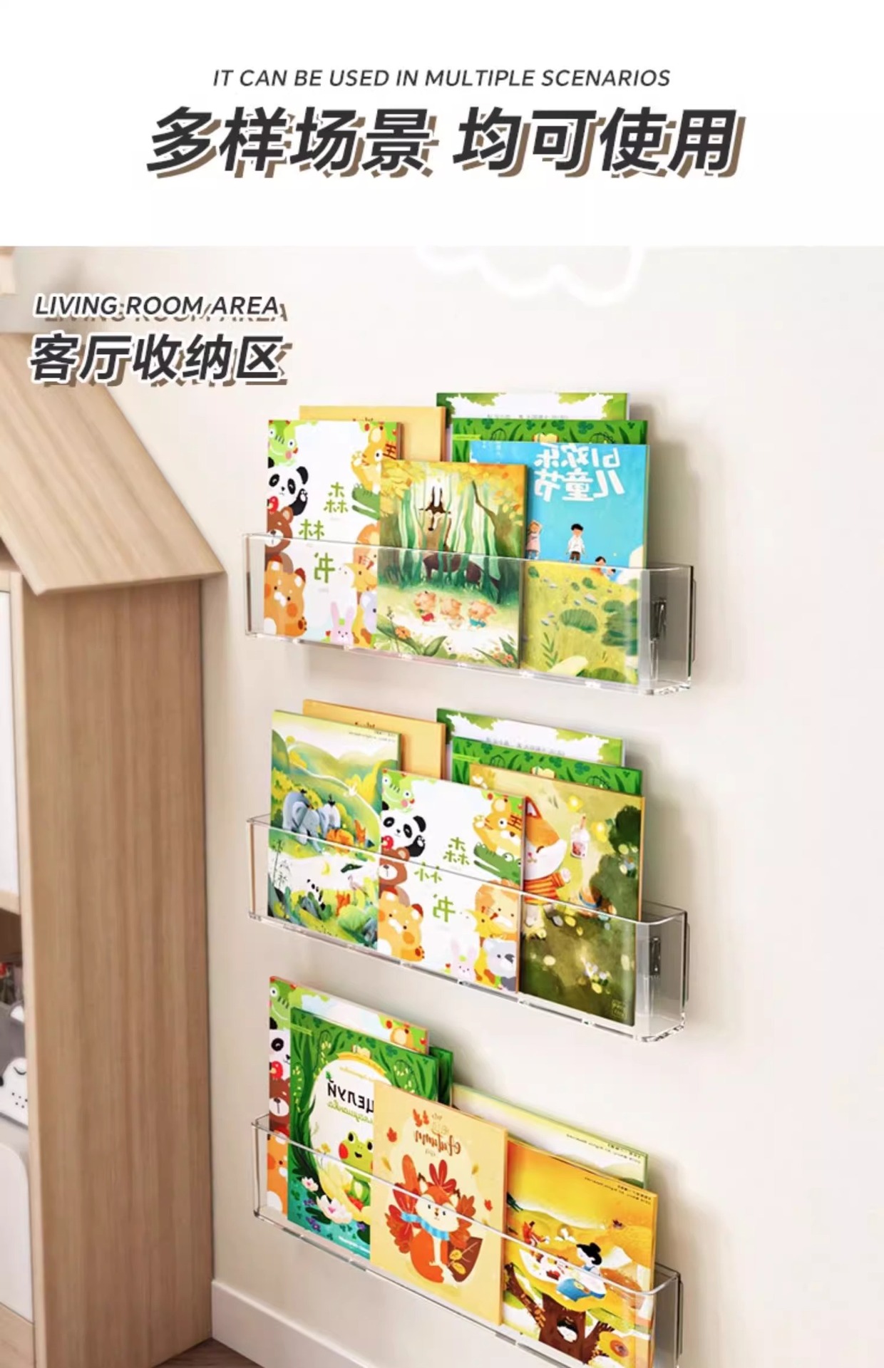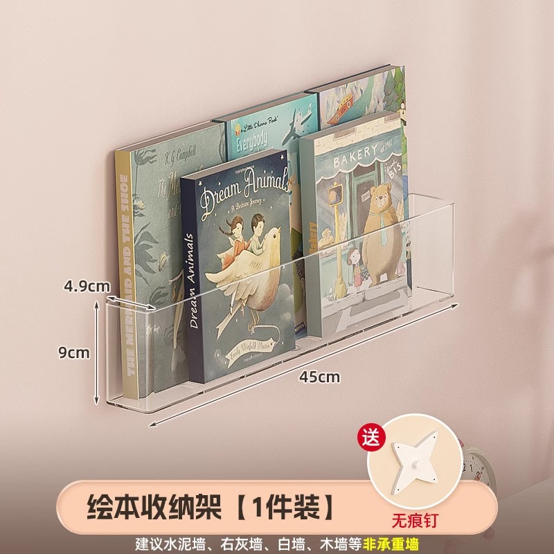 펀치없는 벽 책장 매달린 벽 멀리 문 후면 보관 랙 벽 매달려 투명 아크릴 어린이 그림책 디스플레이 랙스토어 가기