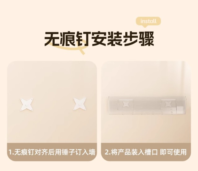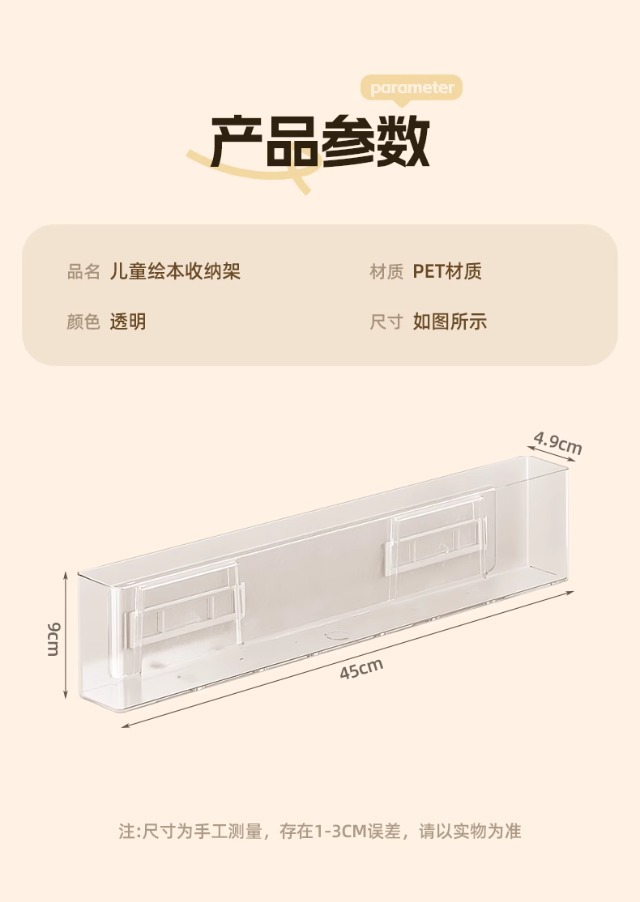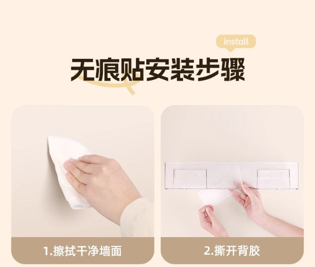 • 투명한 벽걸이 책장 + 흔적 없는 접착제 2개