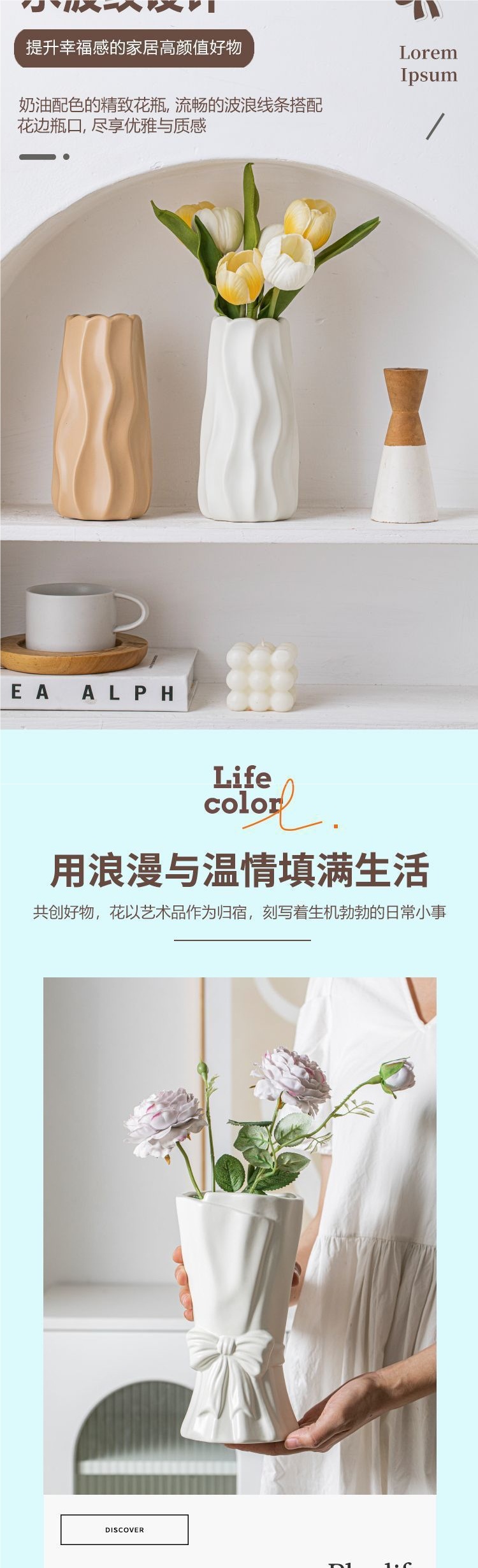 심플한 스타일의 세라믹 꽃병 장식품, 수경 꽃, 부유한 대나무, 레스토랑 거실, 탁상 장식스토어 가기