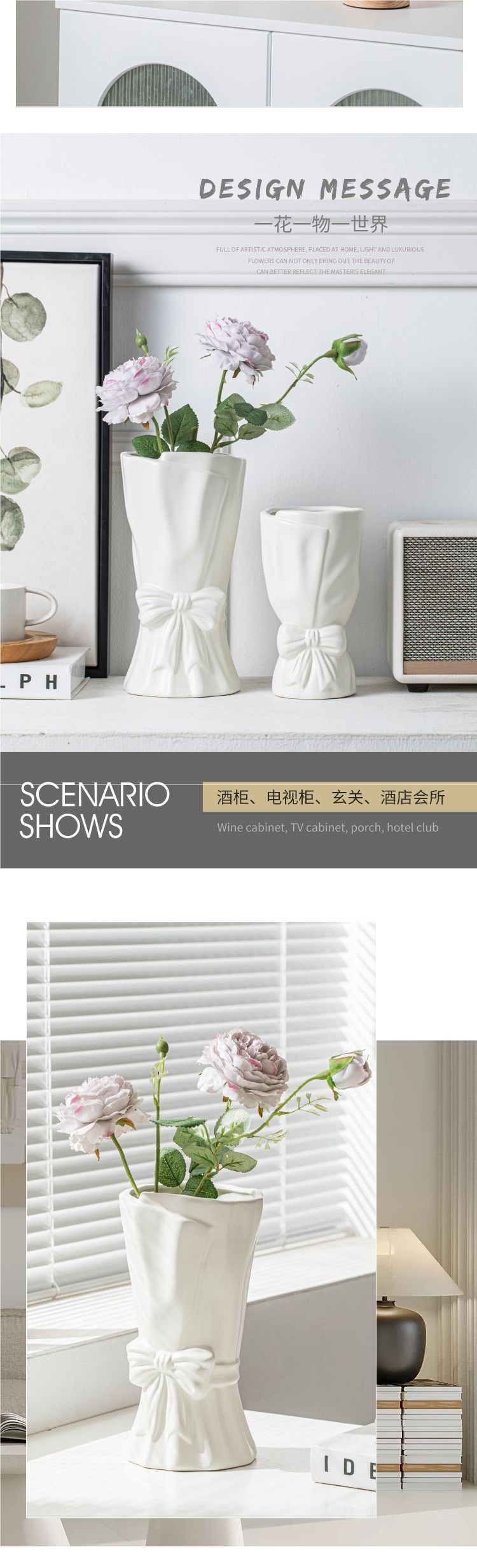 심플한 스타일의 세라믹 꽃병 장식품, 수경 꽃, 부유한 대나무, 레스토랑 거실, 탁상 장식