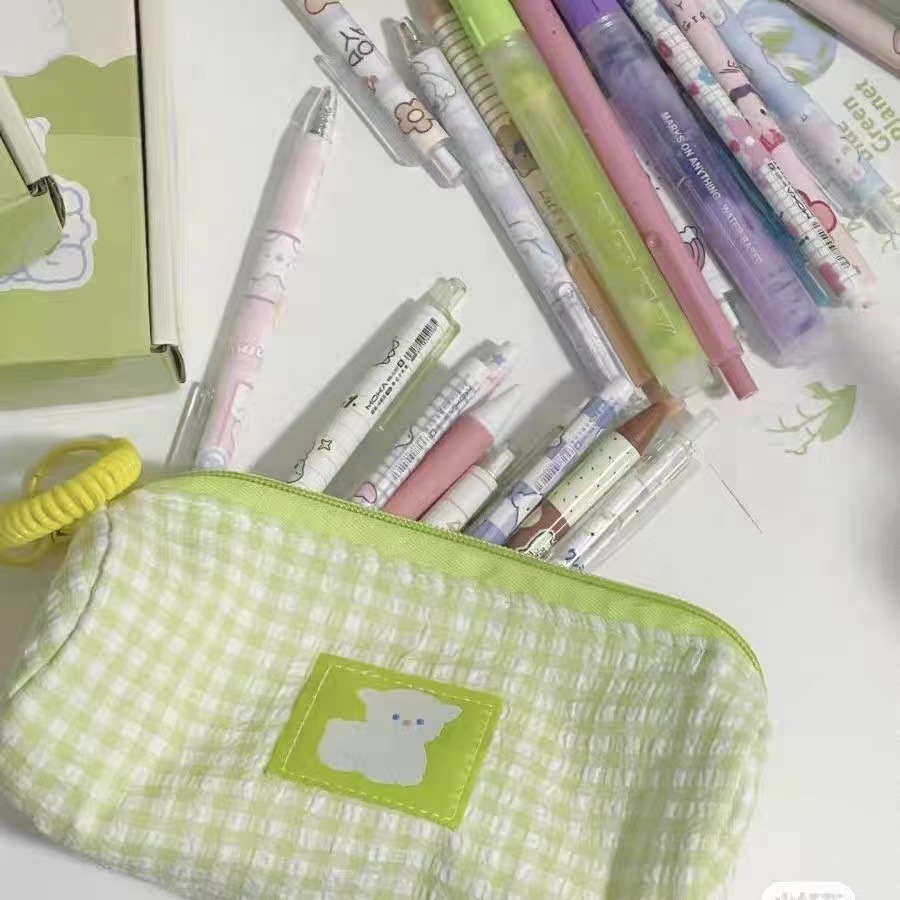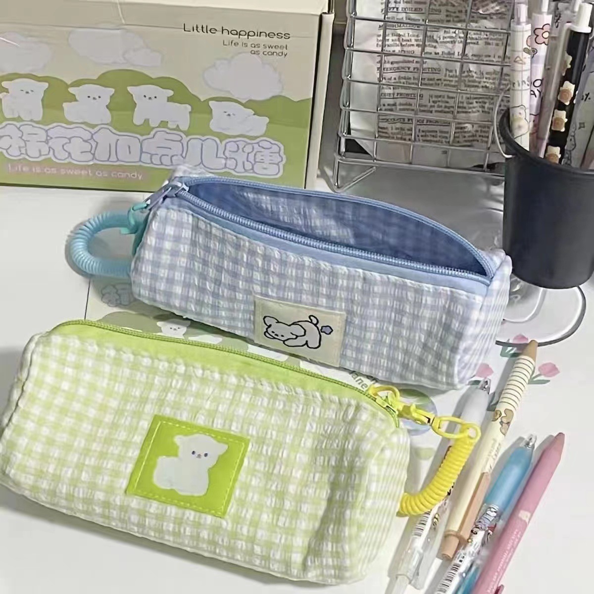 새로운 신선한 스타일 체크 무늬 연필 케이스 높은 색상 값 귀여운 양고기 대용량 데스크탑 학생 문구 보관 가방
