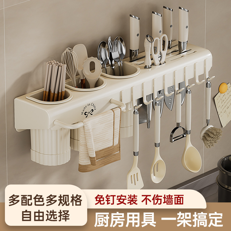 @`젓가락 보관함 벽걸이형 펀치 없는 주방 칼 홀더 보관함 가정용 젓가락 케이지 바구니 다기능 일체형 젓가락