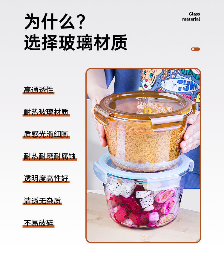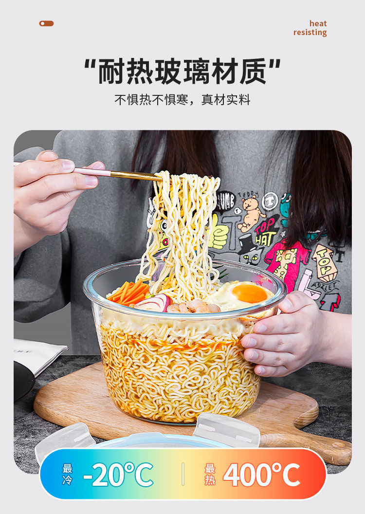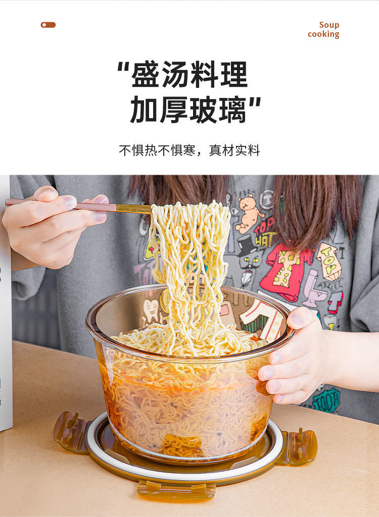 직장인 기숙사용 갈색 유리그릇 수프박스 고급 도시락 뚜껑있는 라면그릇 대용량 전자레인지스토어 가기