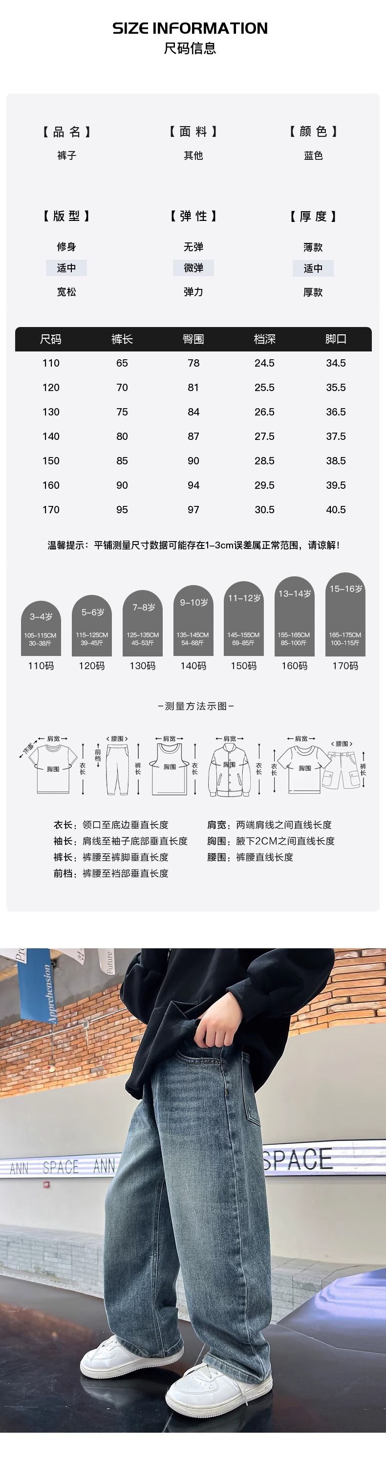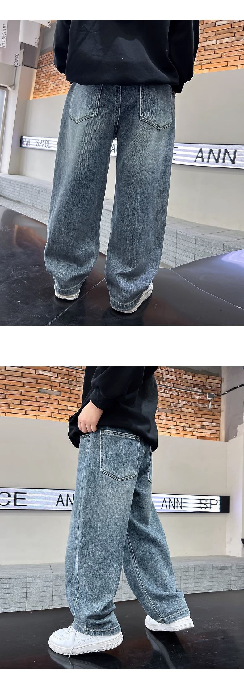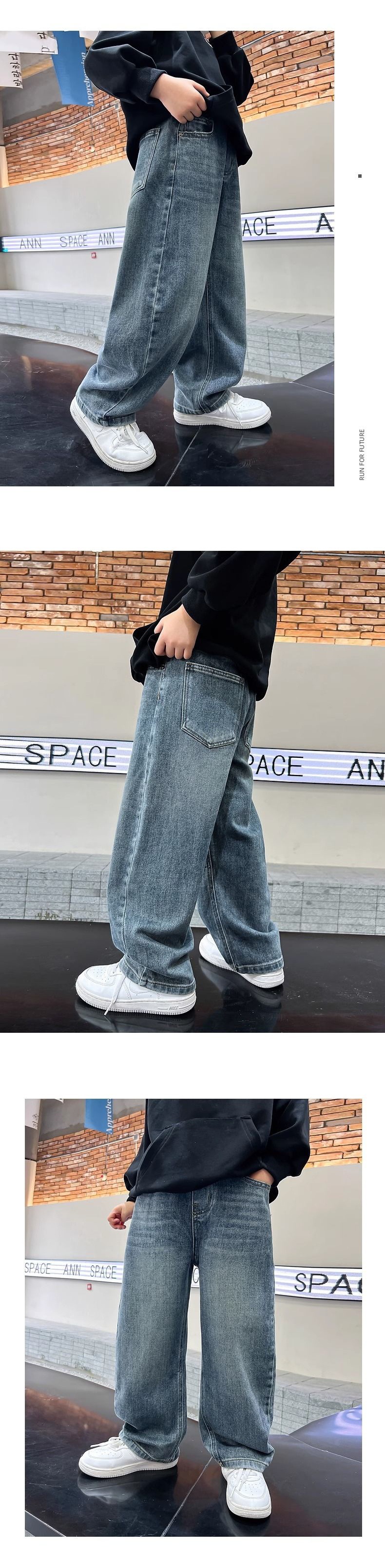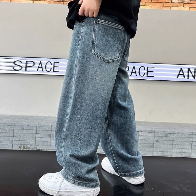 소년의 봄과 가을 스트레이트 튜브 느슨한 청바지 2024 새로운 어린이 소년 봄 잘 생긴 얇은 바지스토어 가기