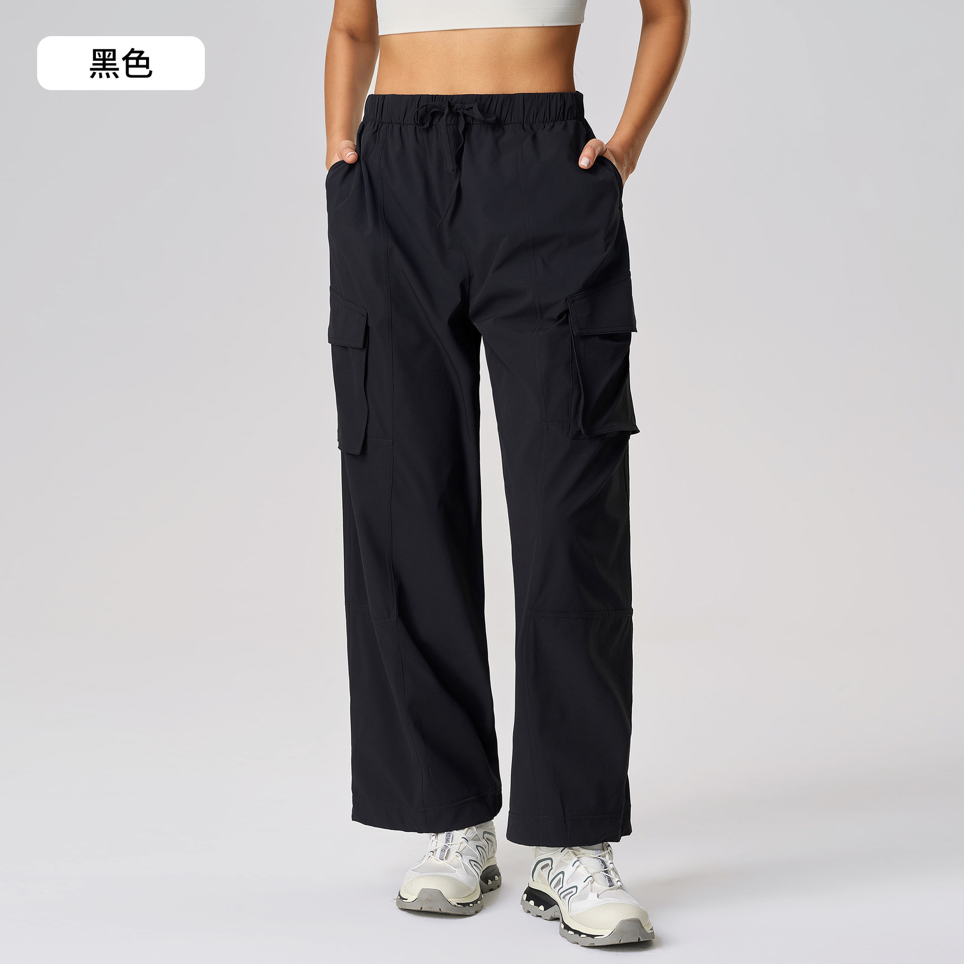 여름 빠른 건조 통기성 카고 바지 여성 캐주얼 모든 일치하는 느슨한 넓은 다리 바지 야외 등산 스포츠 바지 D25076