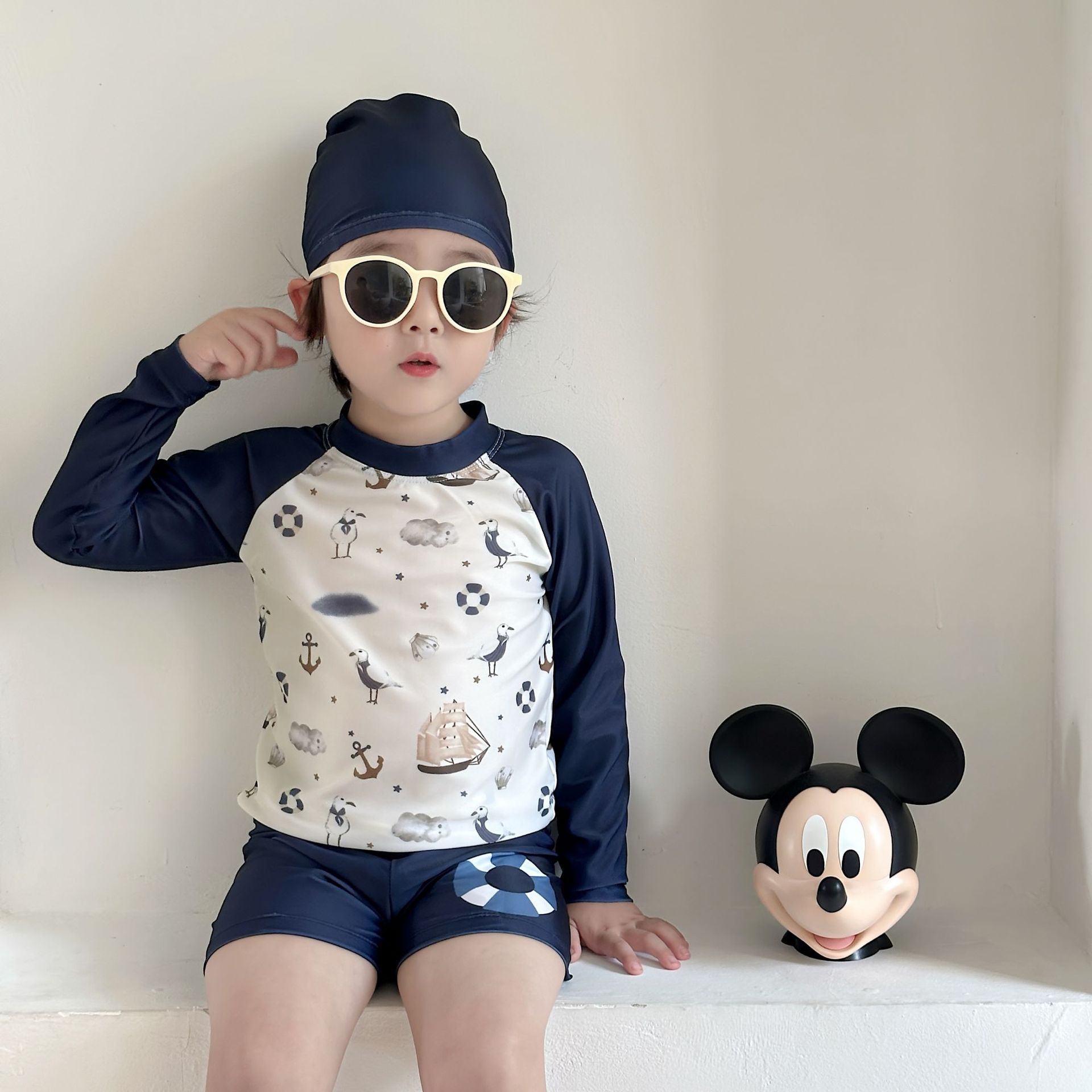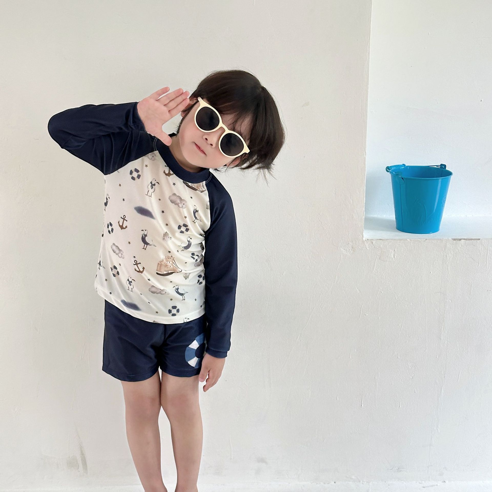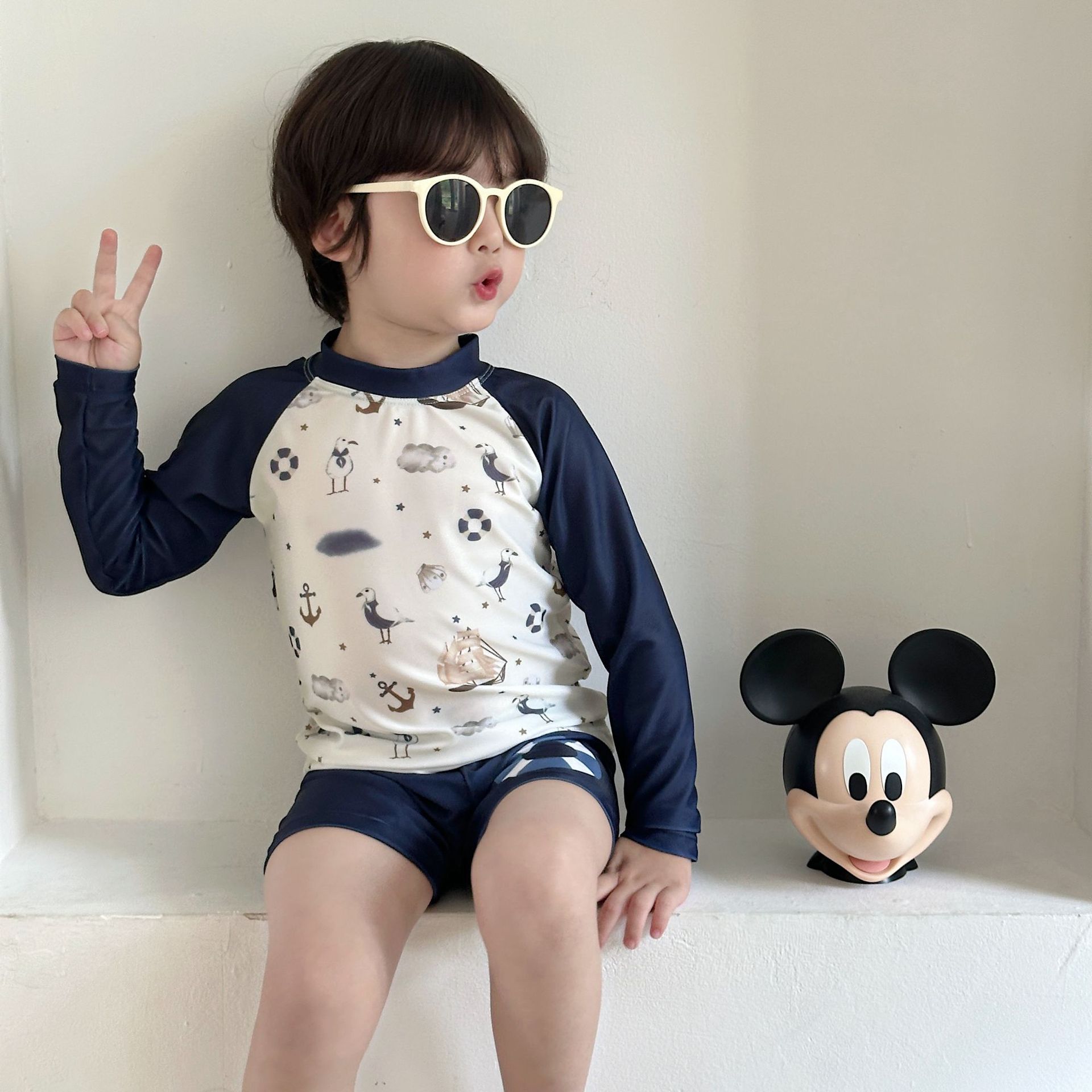새로운 어린이 수영복 남아용 분리형 여름 온천 아기 2025 긴팔 비치웨어 자외선 차단 수영복 세트