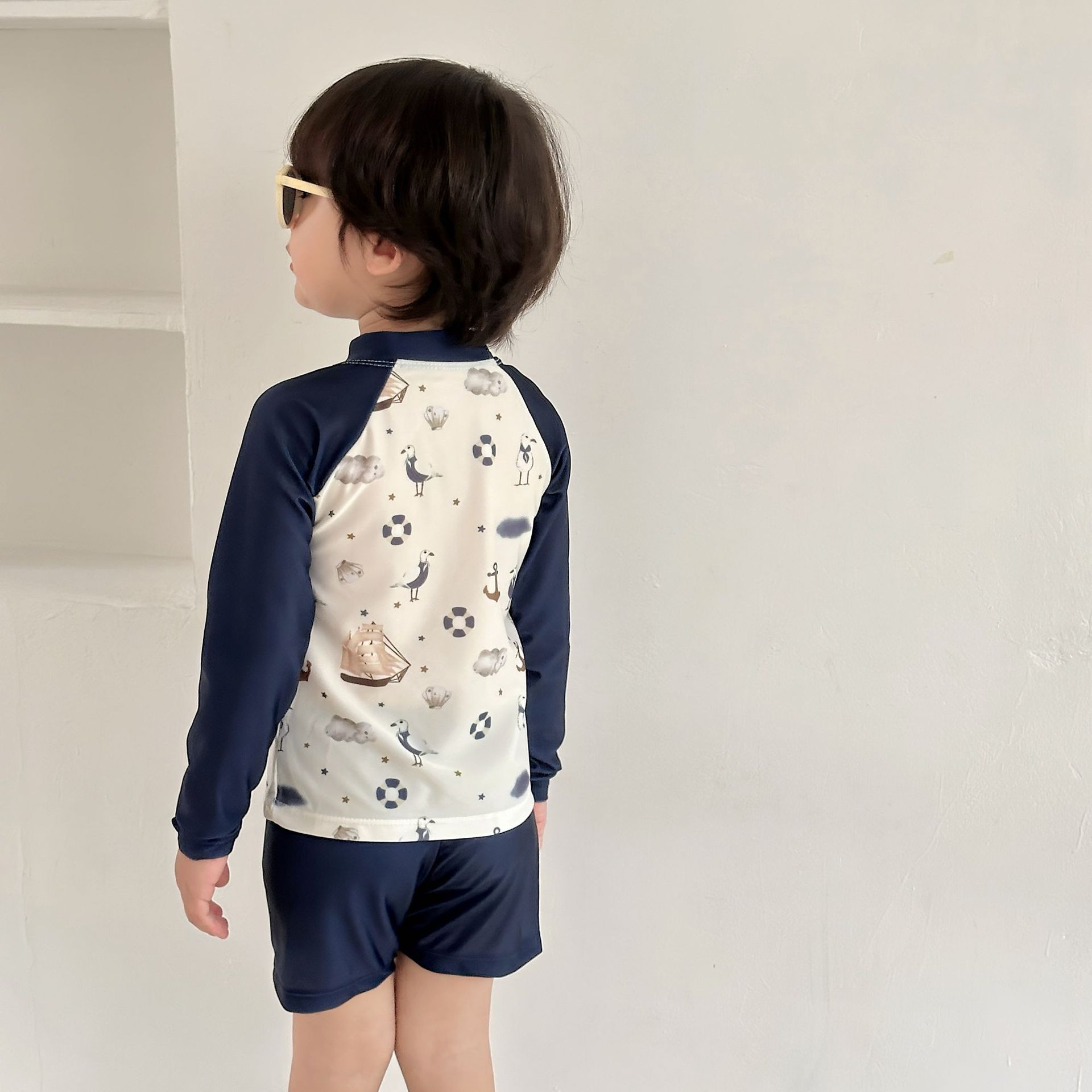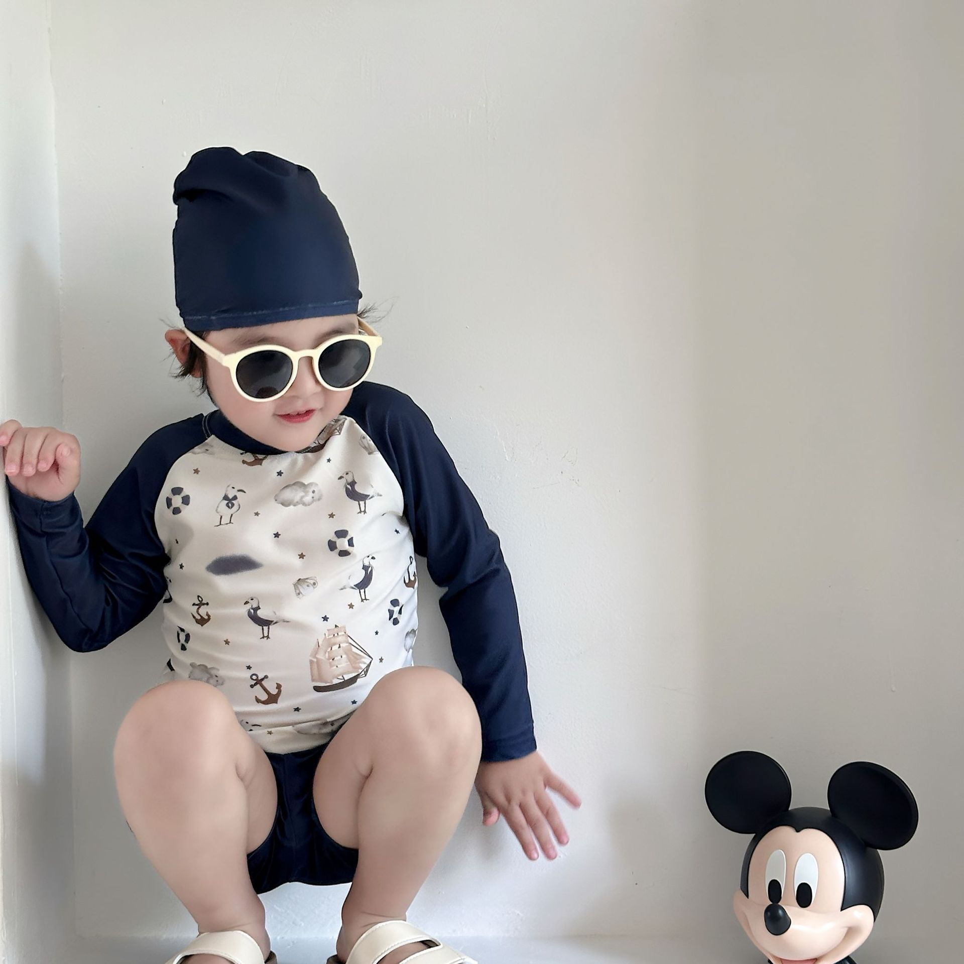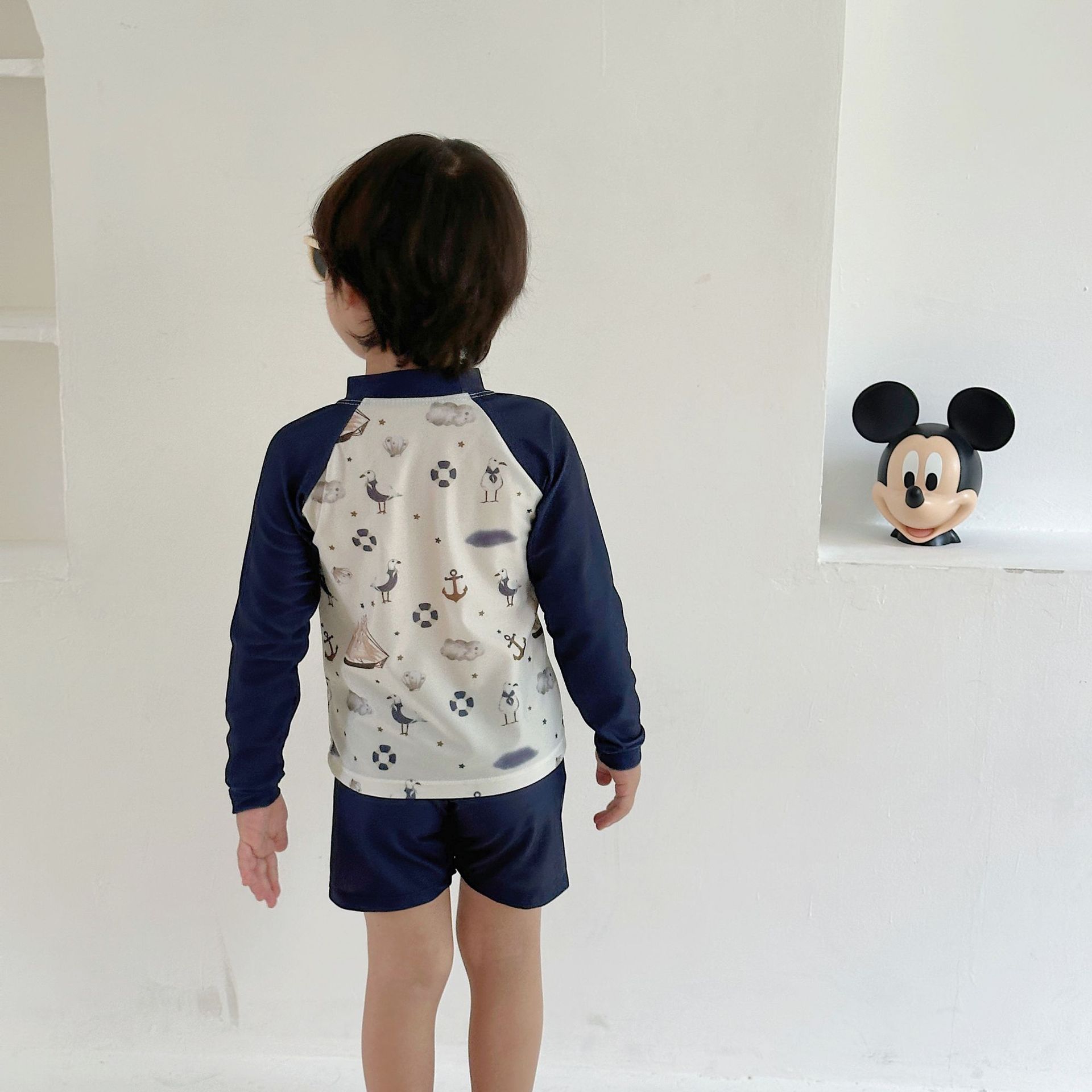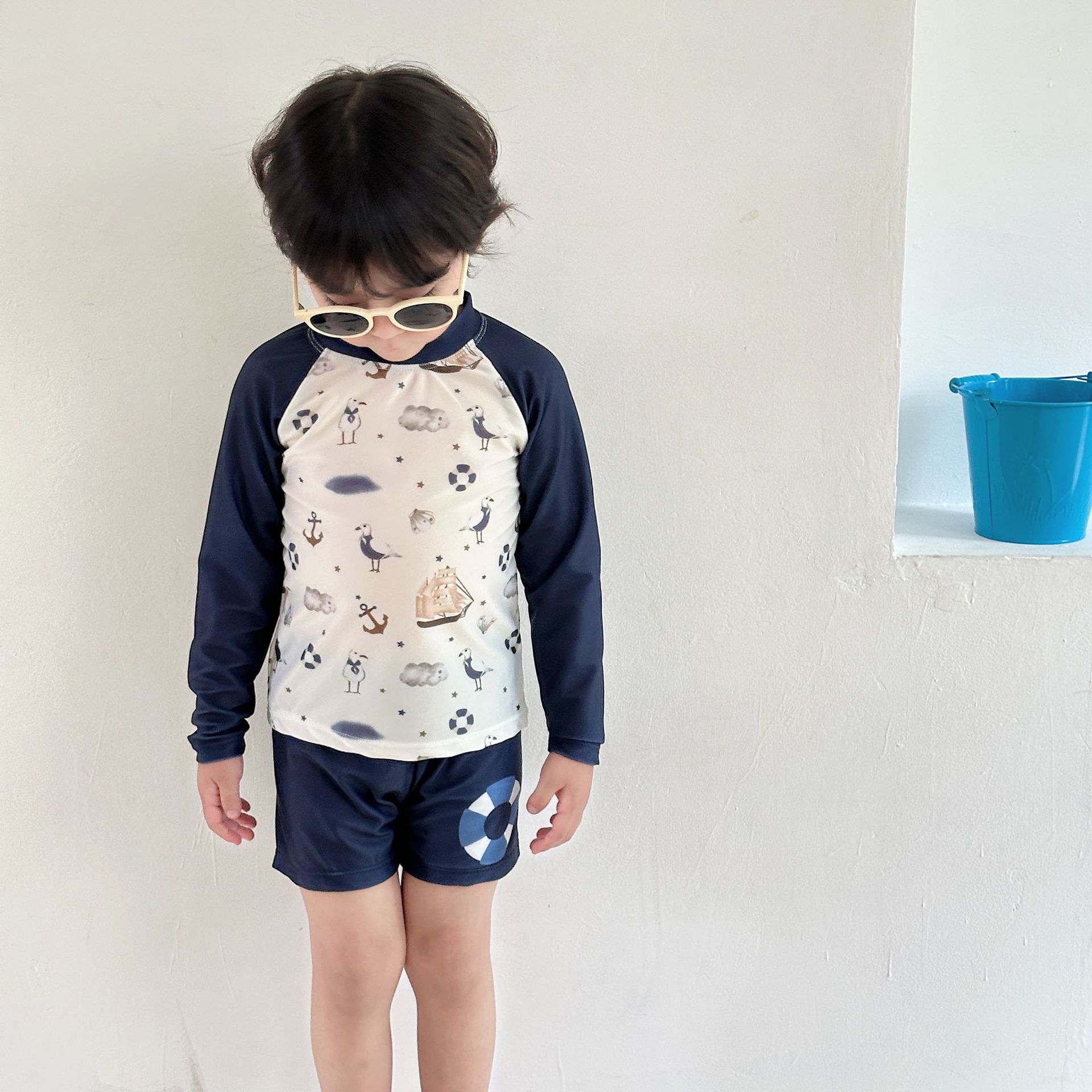 새로운 어린이 수영복 남아용 분리형 여름 온천 아기 2025 긴팔 비치웨어 자외선 차단 수영복 세트