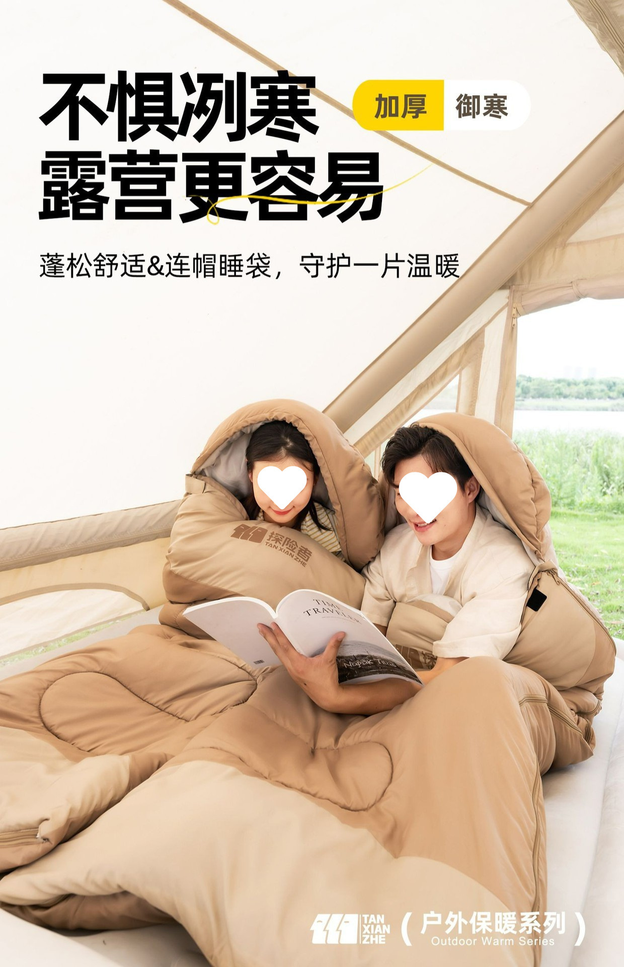 探险者睡袋户外成人儿童隔脏加厚防寒冬季露营野营单双人被子拼接