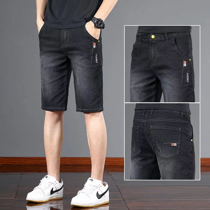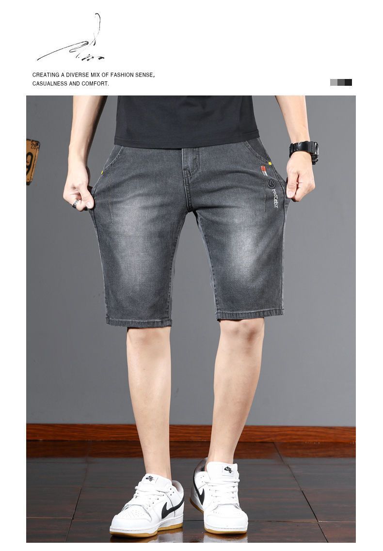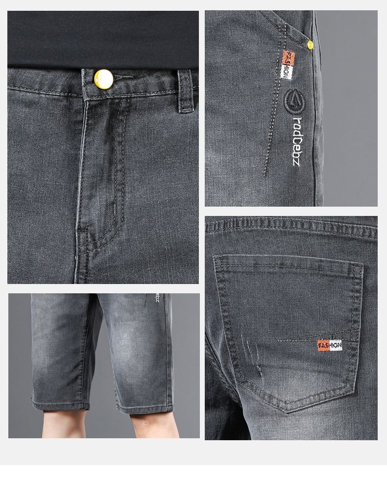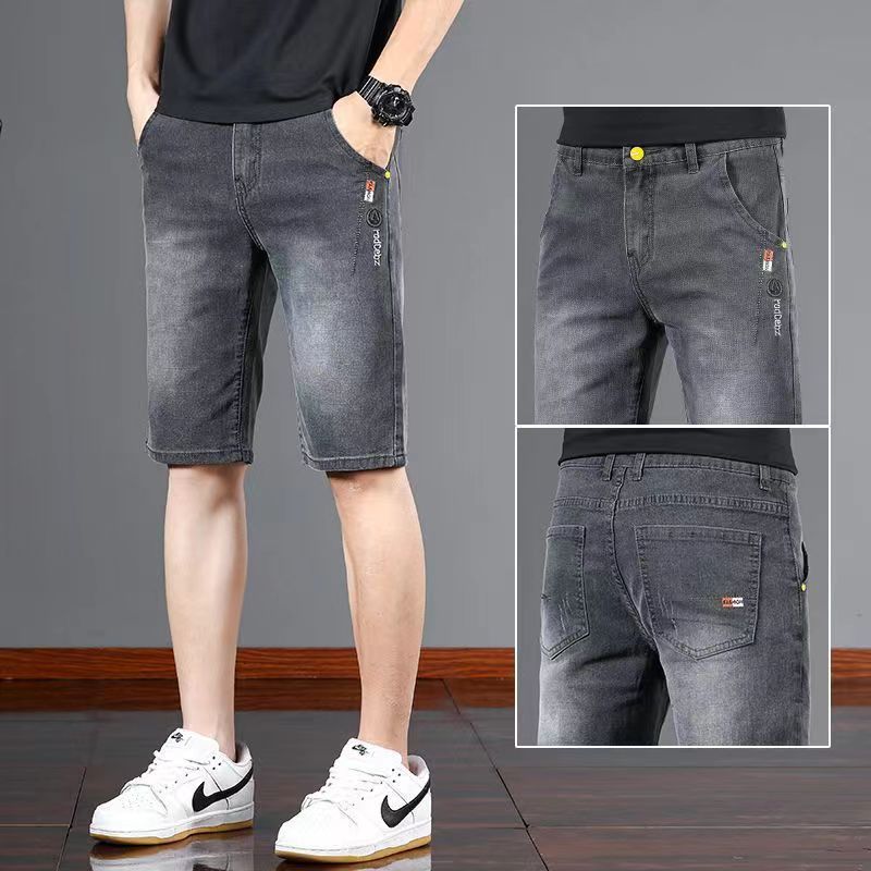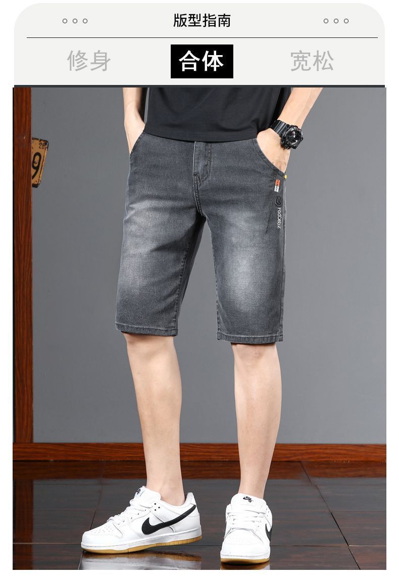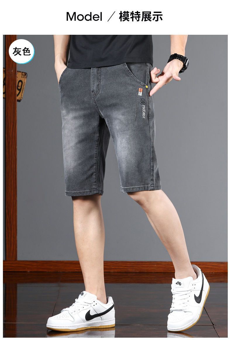 2024 신상 스모크 그레이 청바지 반바지 슬림핏 청소년 트렌드 얼룩 방지 및 내마모성 캐주얼 자수 5부 바지스토어 가기