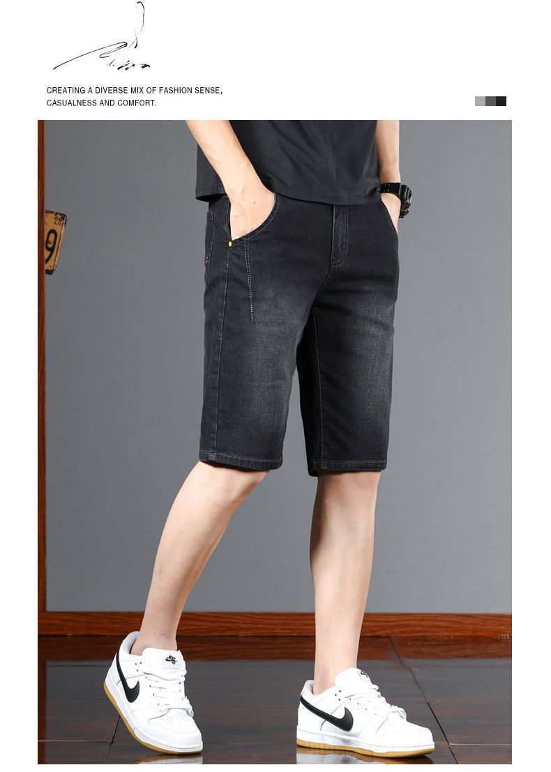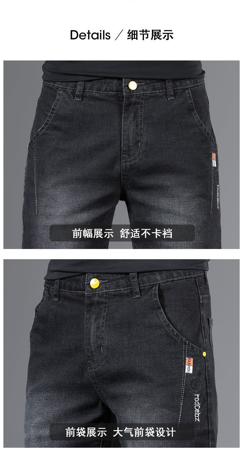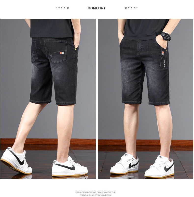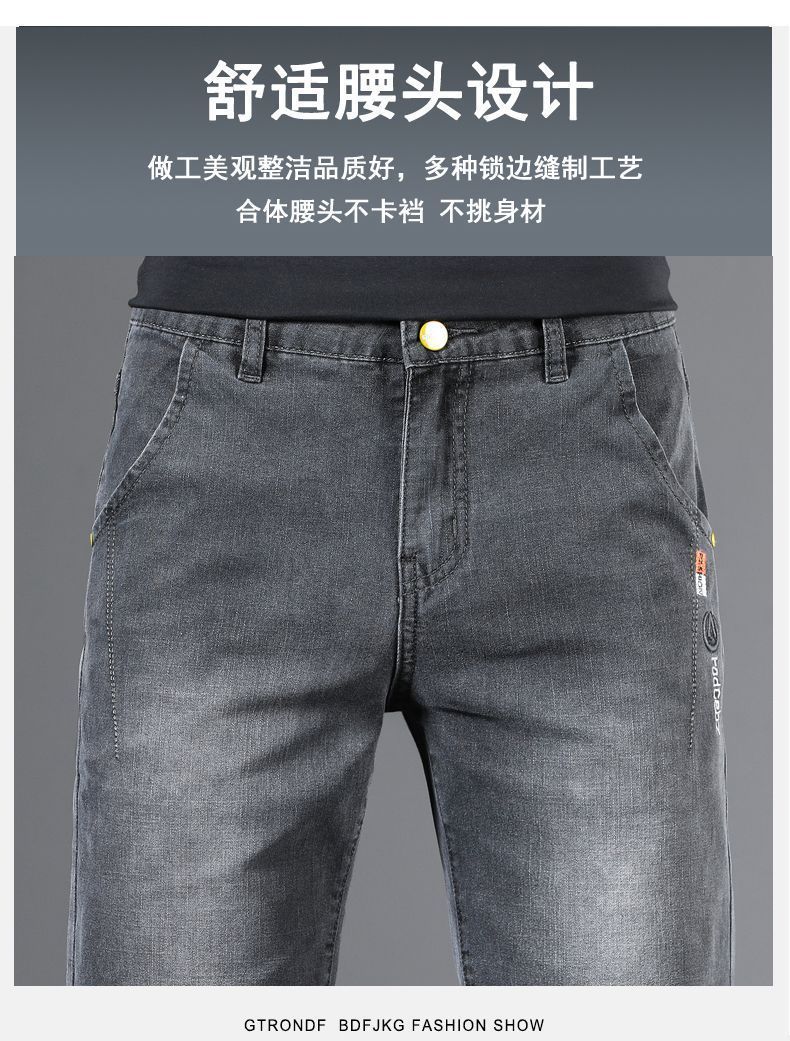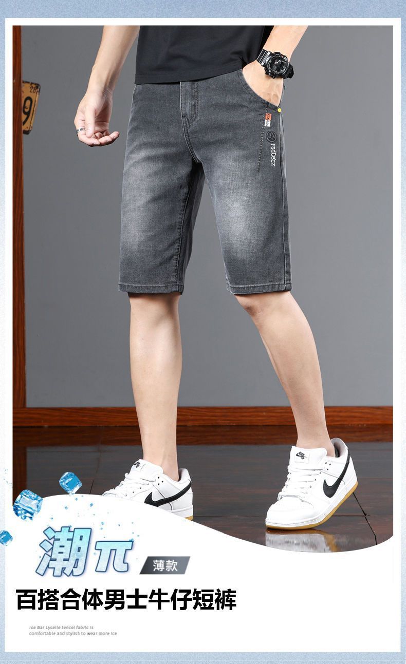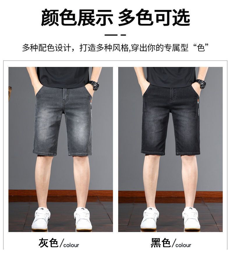 2024 신상 스모크 그레이 청바지 반바지 슬림핏 청소년 트렌드 얼룩 방지 및 내마모성 캐주얼 자수 5부 바지스토어 가기