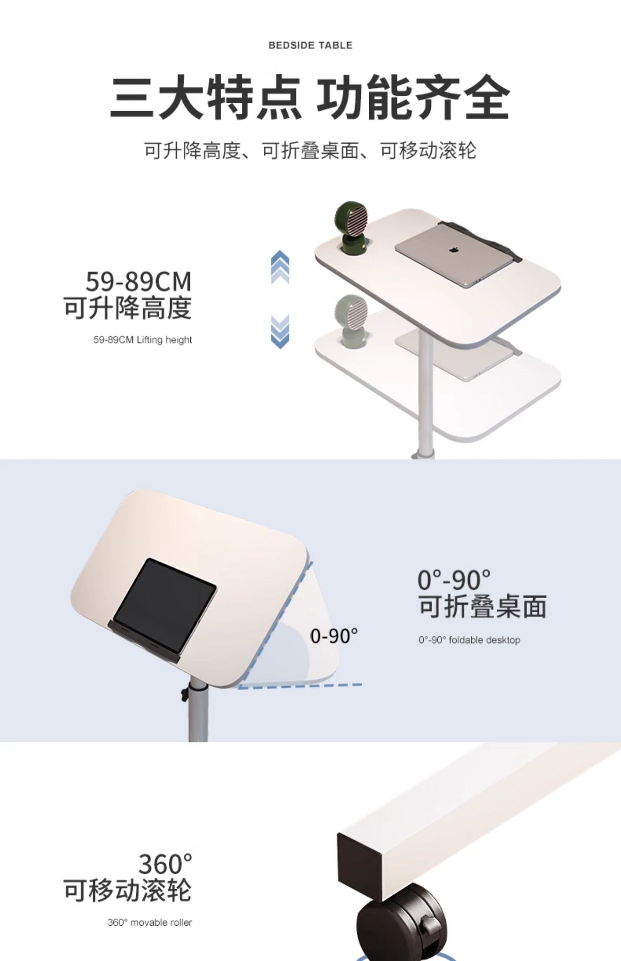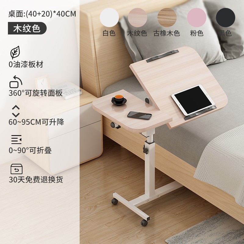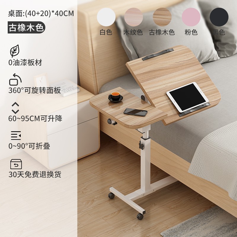 이동식 침대 옆 테이블, 침대 위 노트북 테이블, 침실 측면, 접이식 게으른 리프팅 작은 테이블 J&