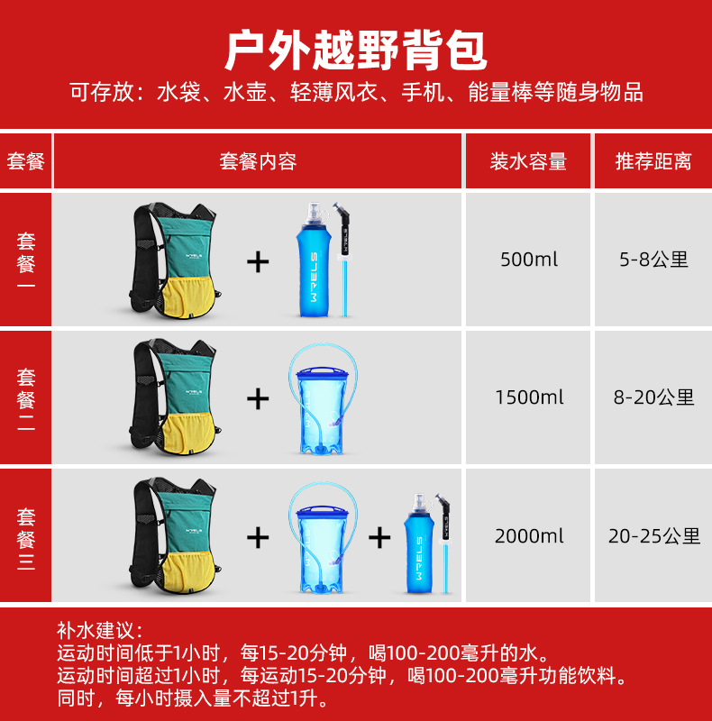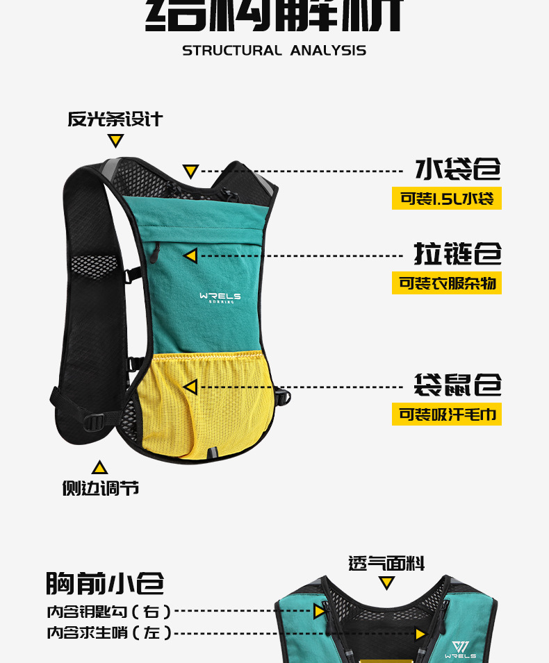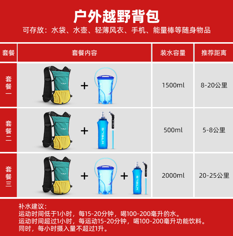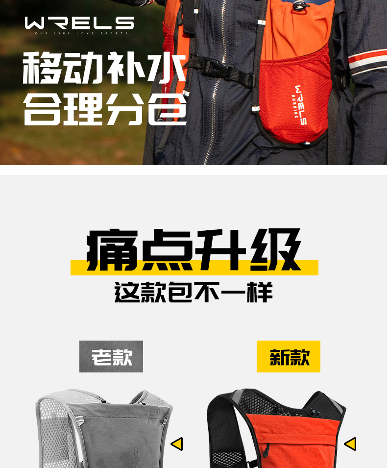 WRELS 야외 등산 크로스 컨트리 배낭 남자 마라톤 달리기 배낭 스포츠 배낭 여자 승마 워터 백