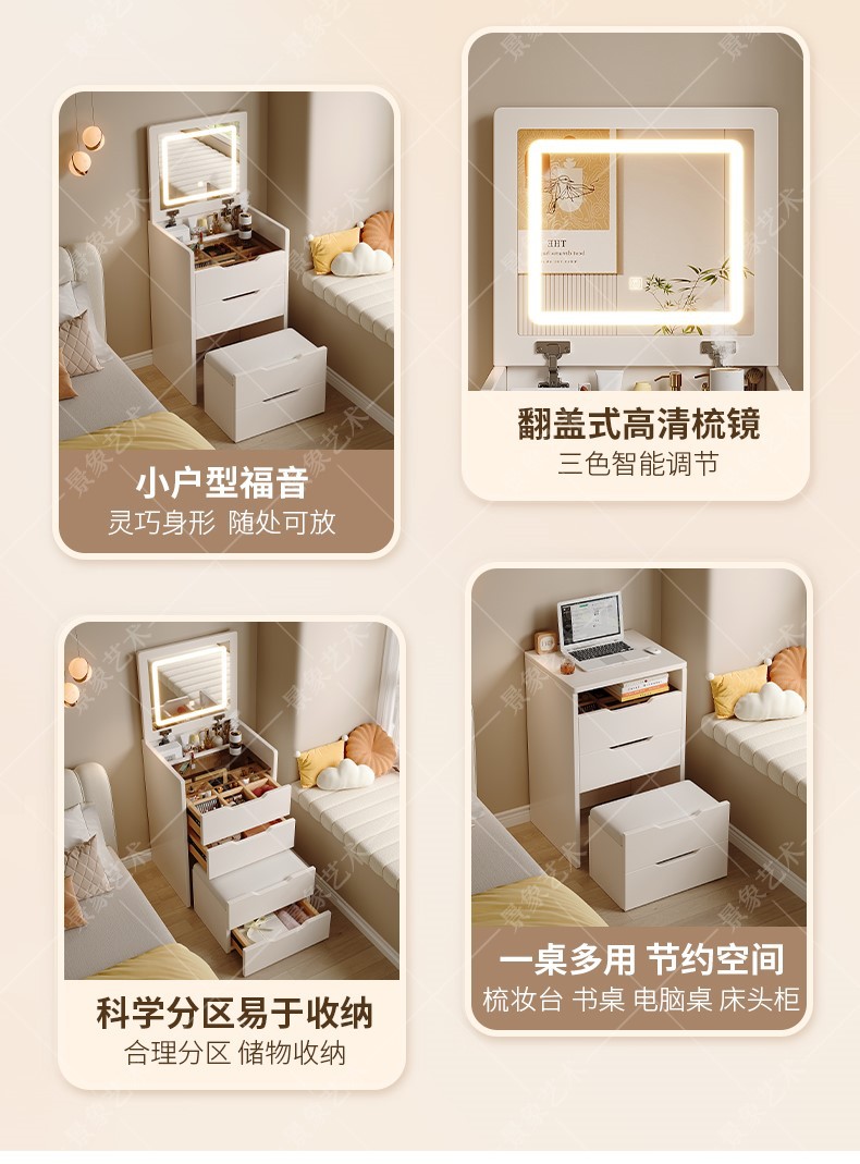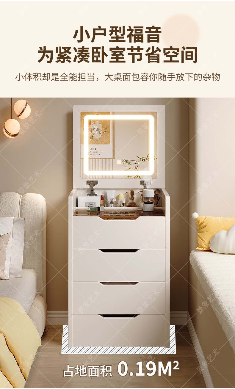 의자 현대 간단한 다기능 플립 침대 옆 메이크업 테이블과 드레싱 테이블 작은 아파트 침실 보관 캐비닛