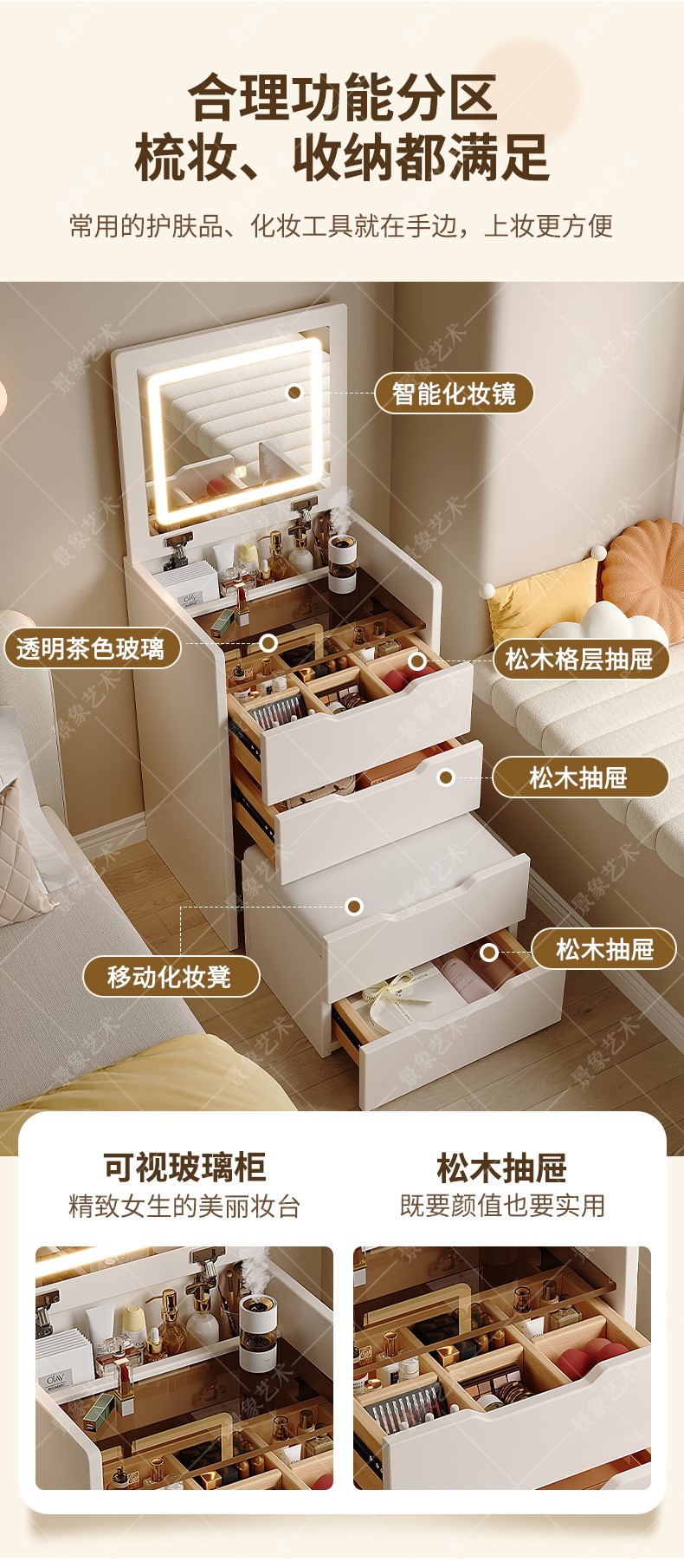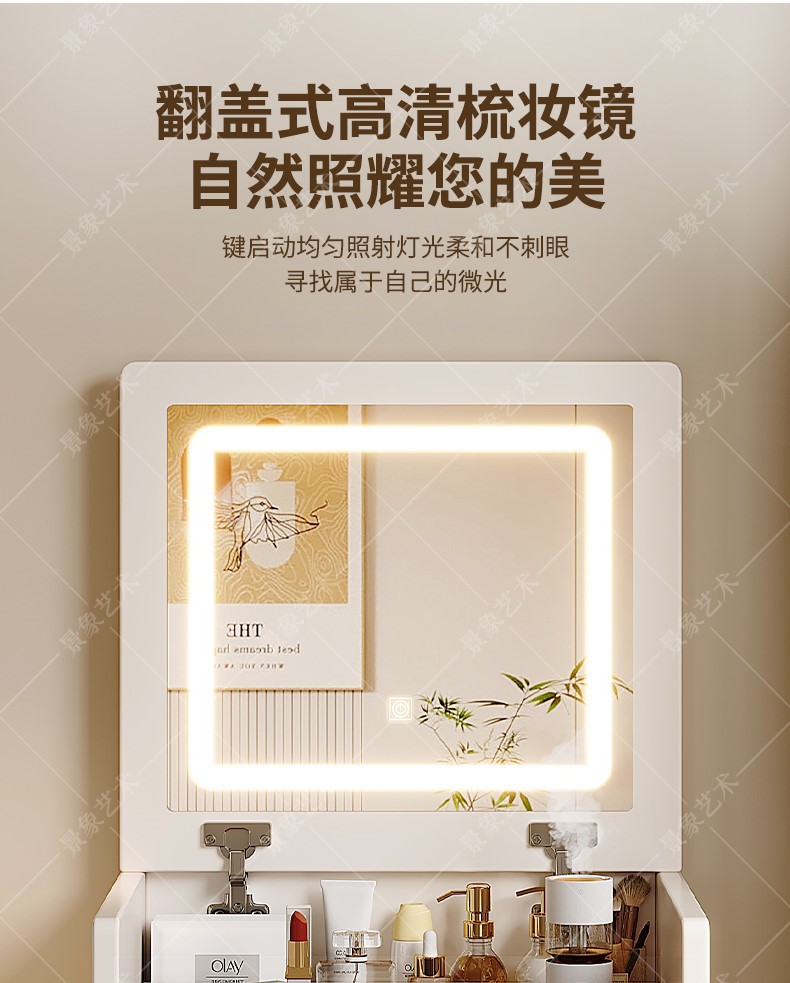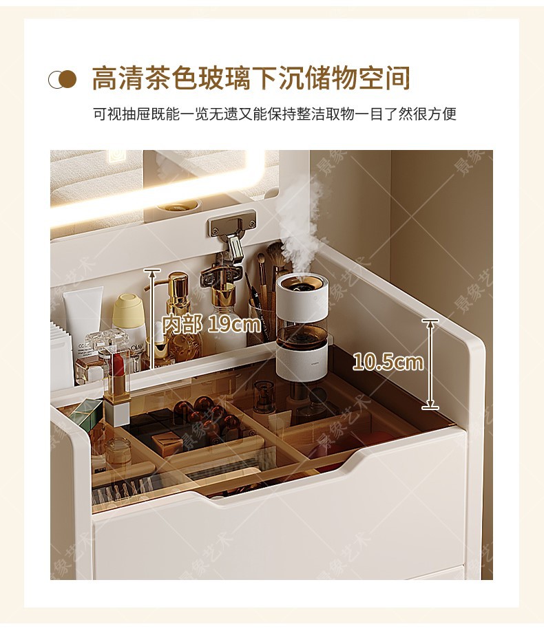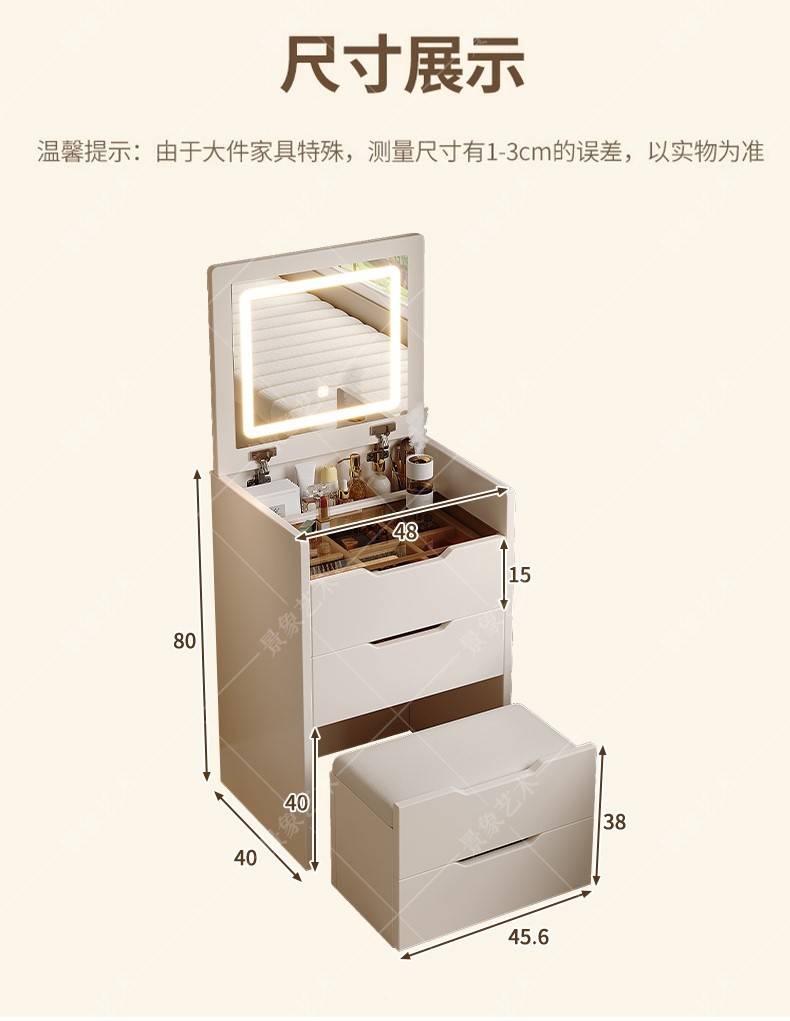 • [숨겨진 화장대*소나무 서랍] 조명 없는 따뜻한 흰색 48CM