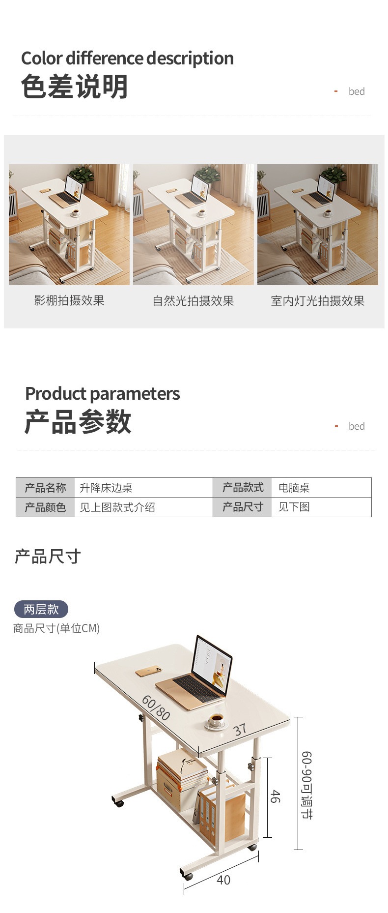 DZ 이동식 침대 테이블 리프팅 테이블 컴퓨터 책상 홈 침실 책상 기숙사 게으른 간단한 학생 글쓰기