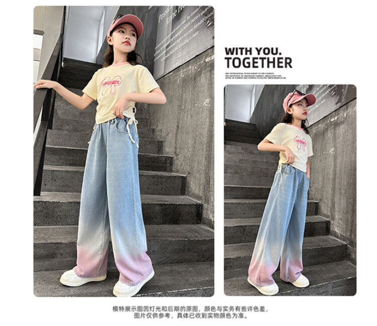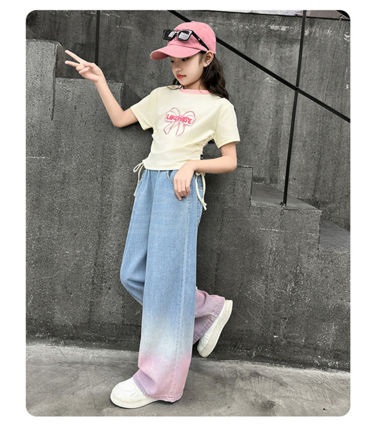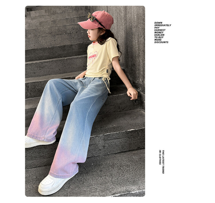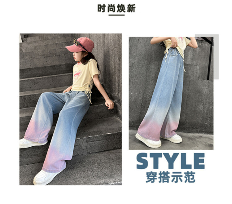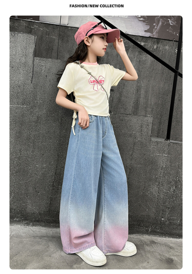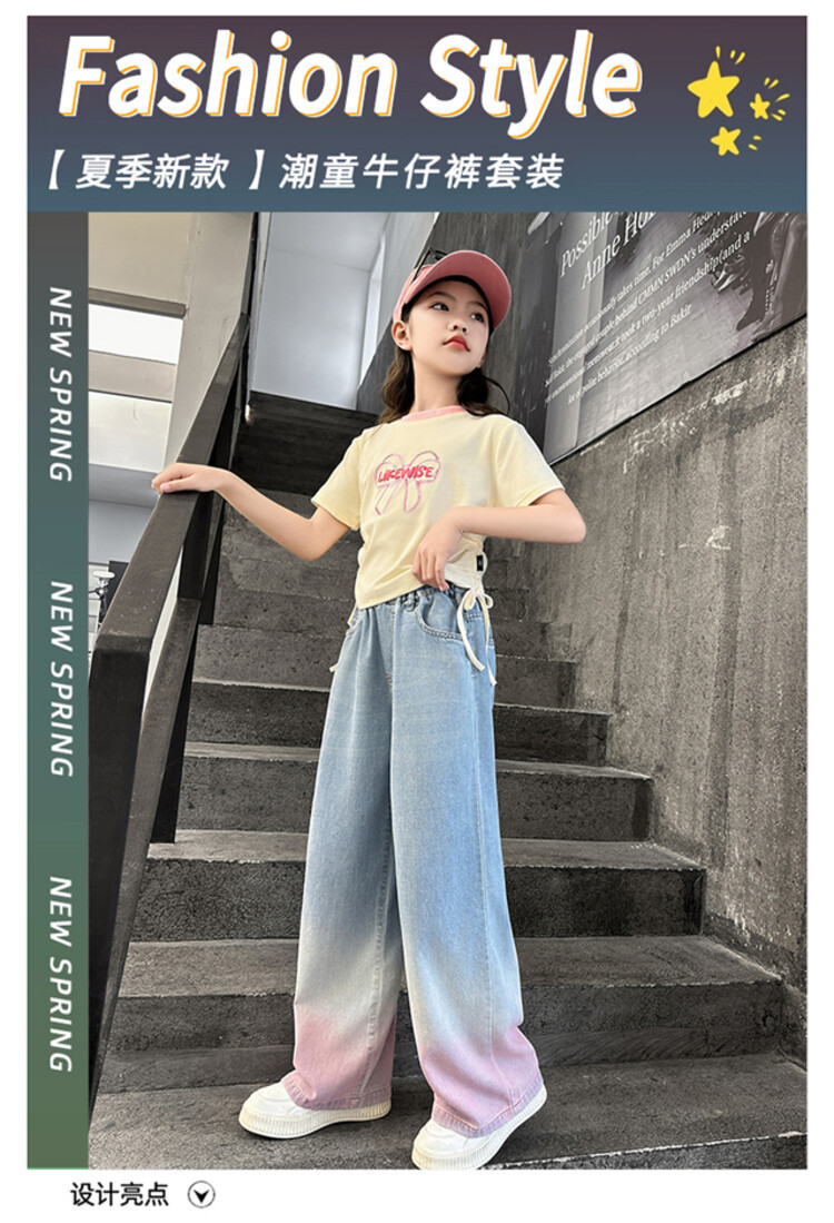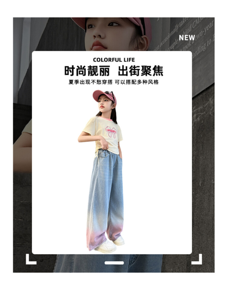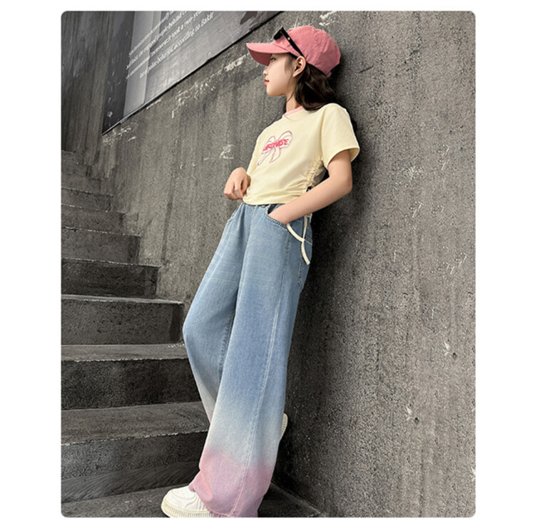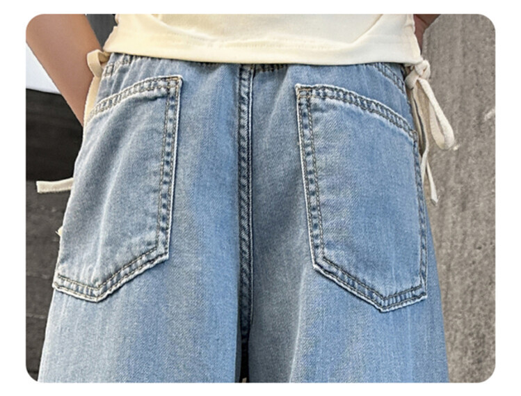 소녀 바지 여름 2025 새로운 서양식 어린이 캐주얼 안티 모기 바지 얇은 대형 아동복 텐셀 데님 넓은 다리 바지스토어 가기