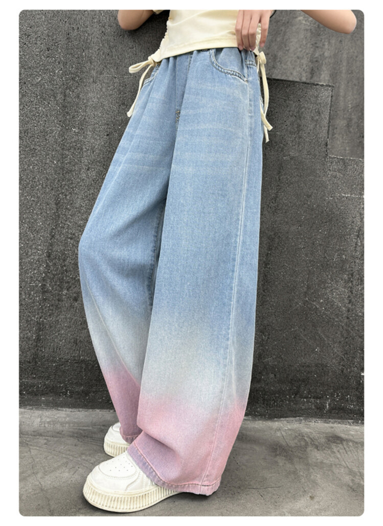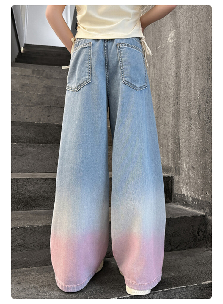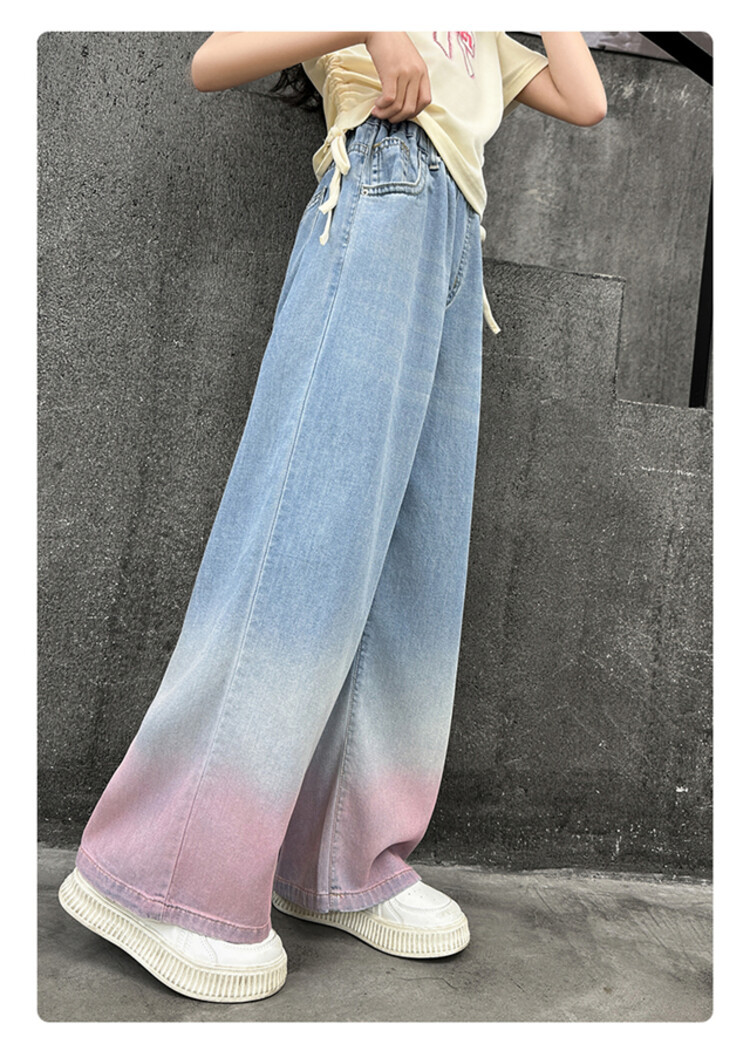 소녀 바지 여름 2025 새로운 서양식 어린이 캐주얼 안티 모기 바지 얇은 대형 아동복 텐셀 데님 넓은 다리 바지
