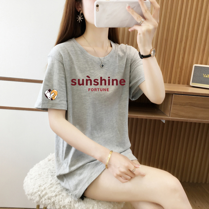 봄과 여름 반팔 티셔츠 여성용 루즈 하이 엔드 센스 헤비 웨이트 퓨어 코튼 풀 숄더 코튼 티셔츠 한국 스타일스토어 가기