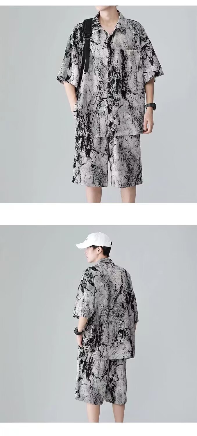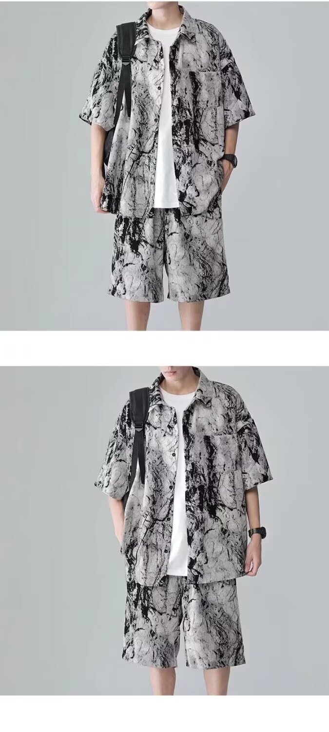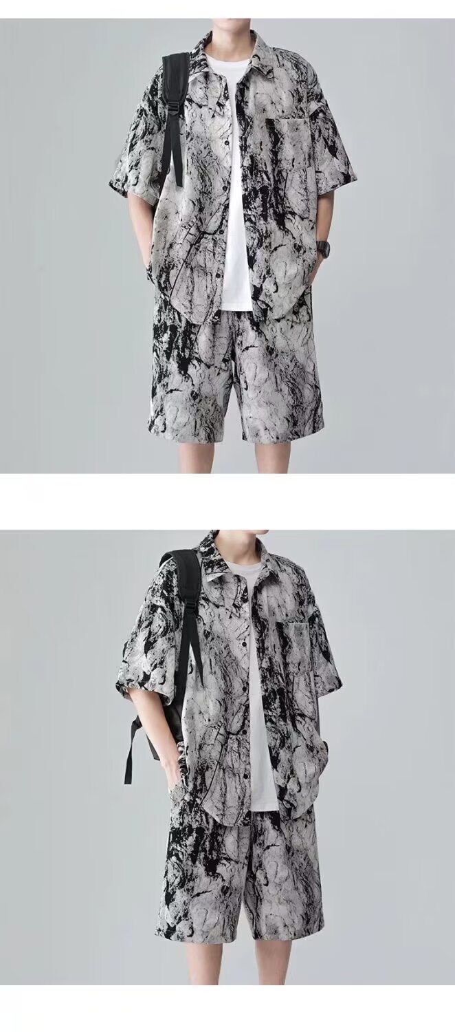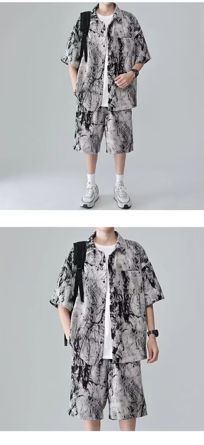 타이다이 핸섬 슈트 남성용 반팔 셔츠 청소년 맞춤형 틈새 디자인 캐주얼 스포츠 투피스 패션 세트스토어 가기