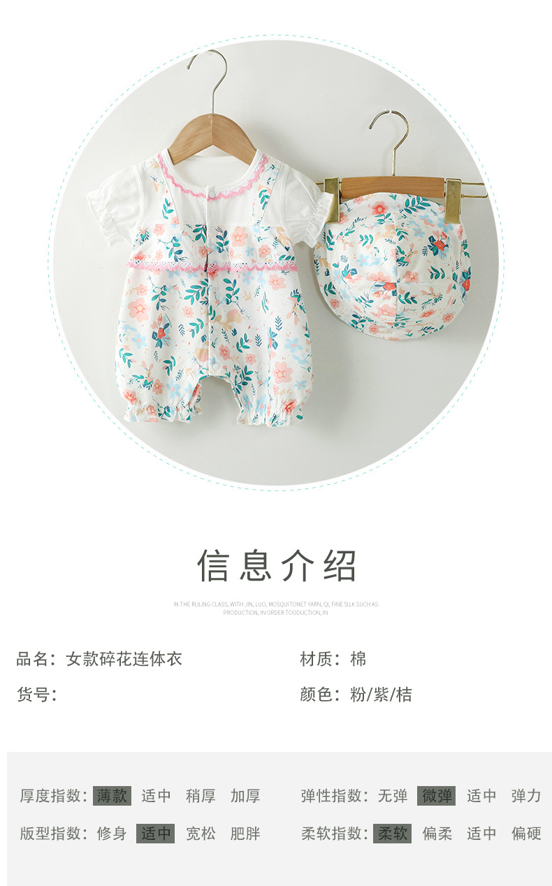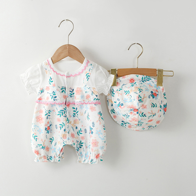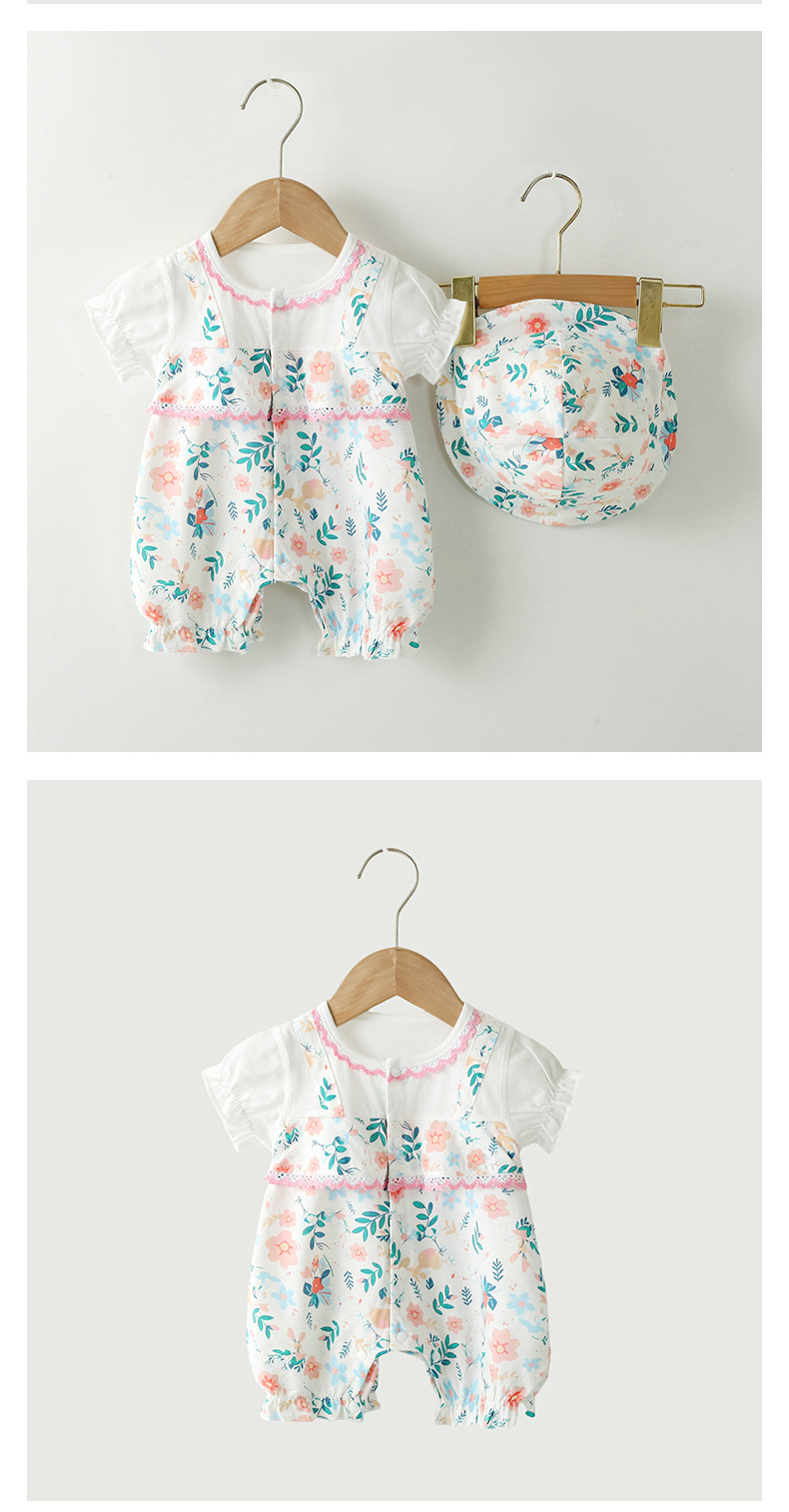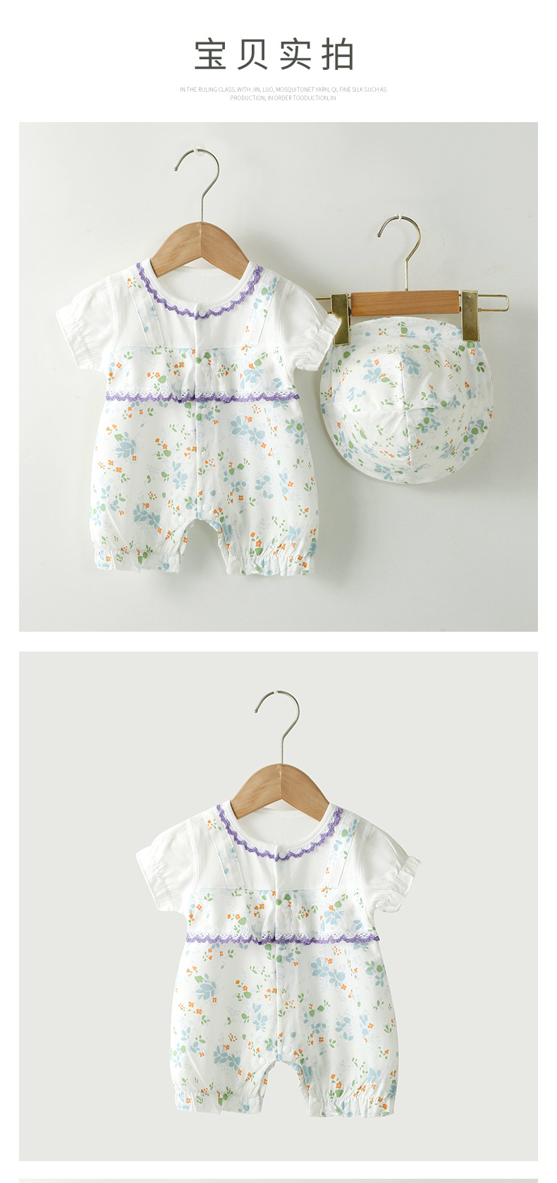 Summer New Baby's Hone-body 신생아 뼈없는 모자 아기 반팔 얇은 점프 수트 여성용 레이스 모자스토어 가기