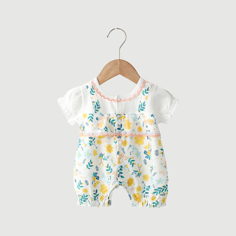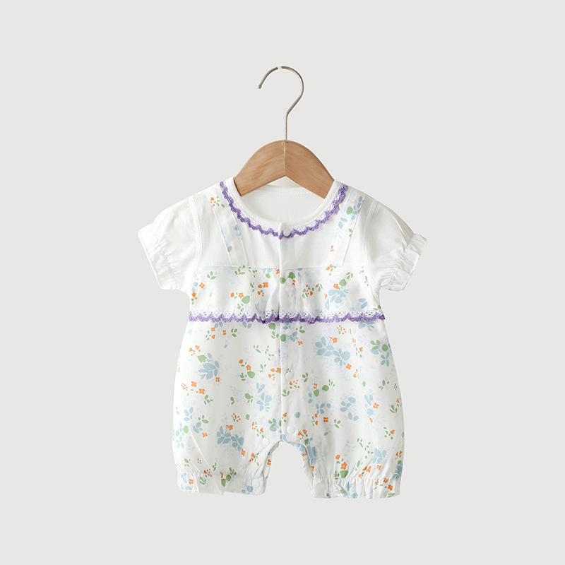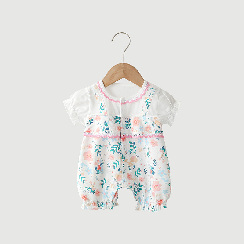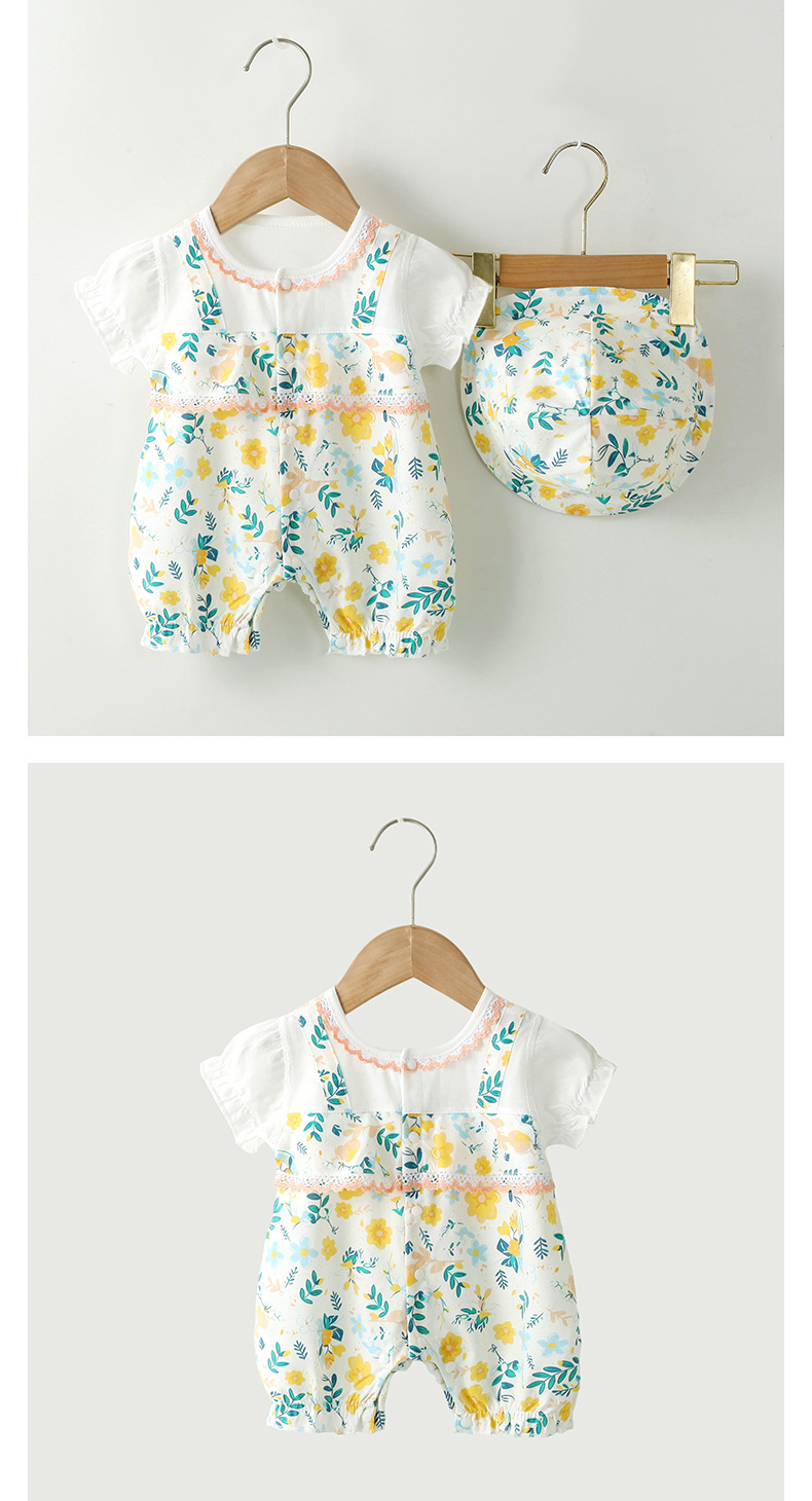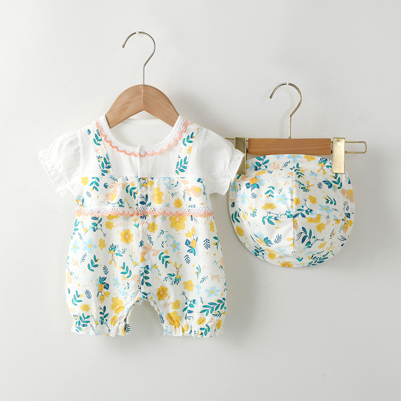 Summer New Baby's Hone-body 신생아 뼈없는 모자 아기 반팔 얇은 점프 수트 여성용 레이스 모자스토어 가기
