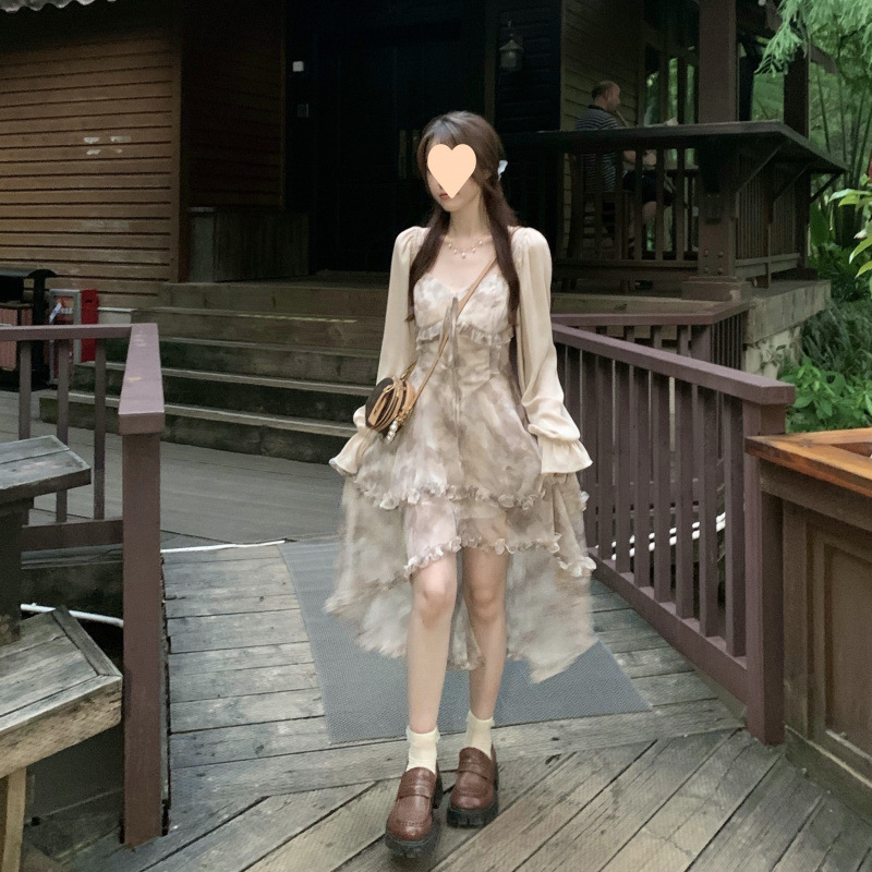 슬립 드레스, 우아하고 우아한 꽃무늬 롱 스커트, 여성용 달콤한 쉬폰 가디건 여름 슈트스토어 가기