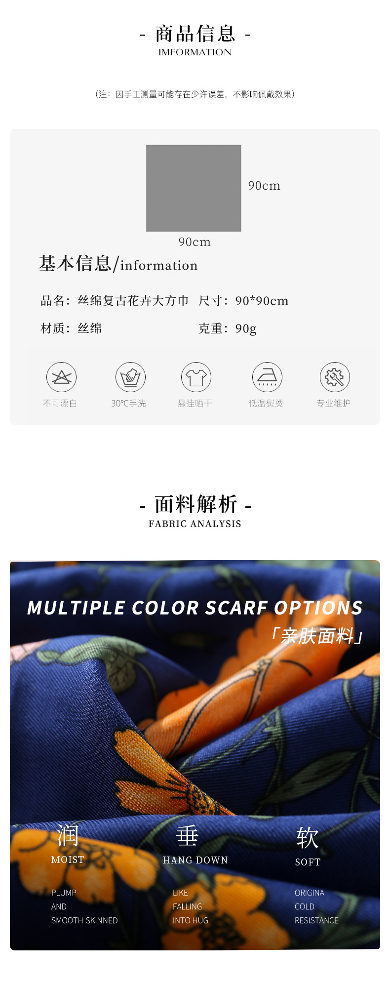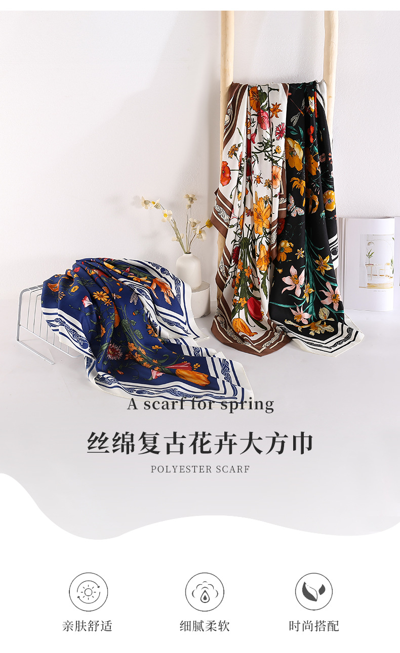 프랑스 복고풍 꽃 실크 코튼 스퀘어 스카프 여성 Ins 틈새 우아한 좋은 착용 장식 실크 스카프 햇빛 90 목도리 패션스토어 가기