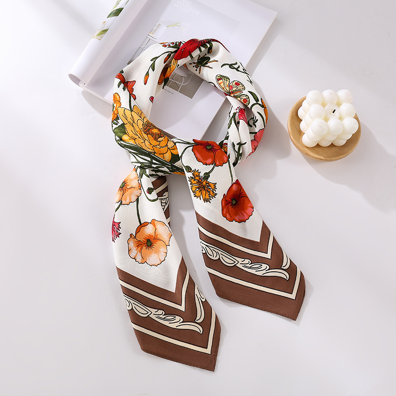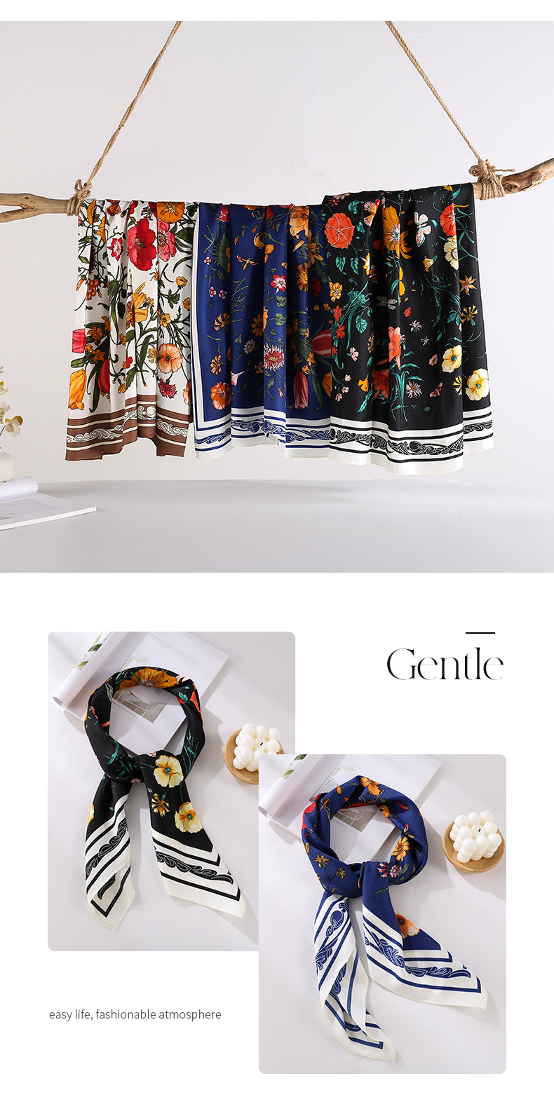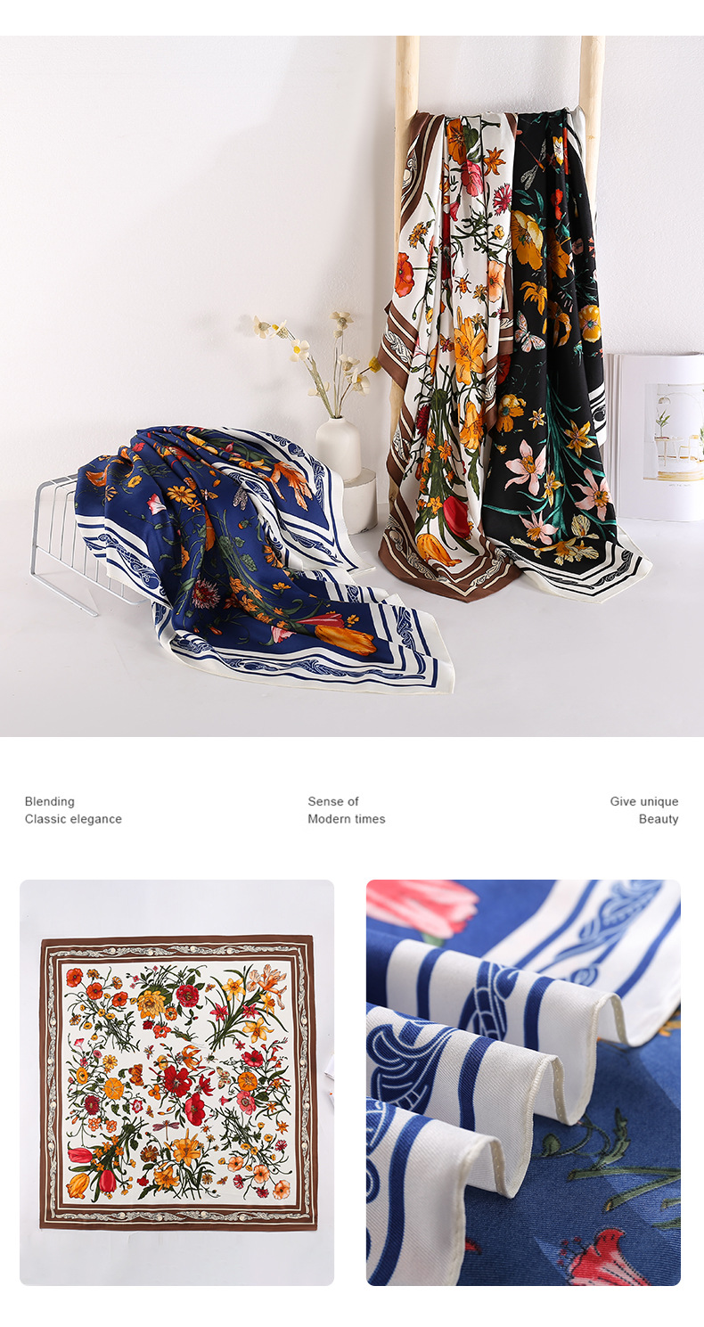 프랑스 복고풍 꽃 실크 코튼 스퀘어 스카프 여성 Ins 틈새 우아한 좋은 착용 장식 실크 스카프 햇빛 90 목도리 패션