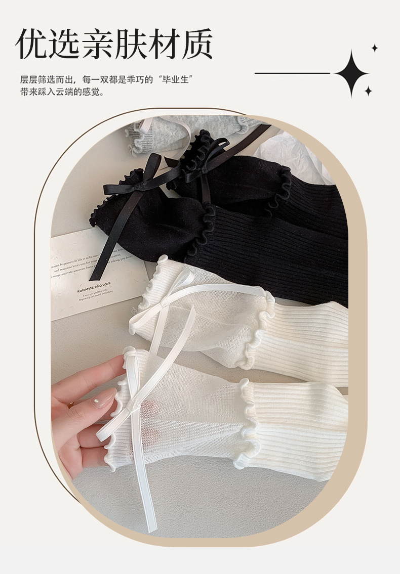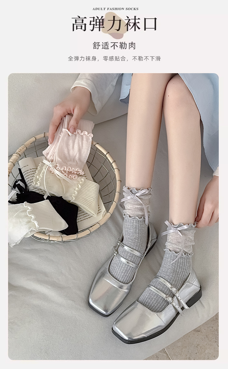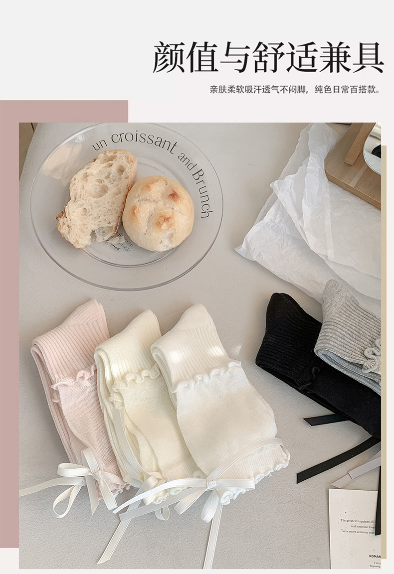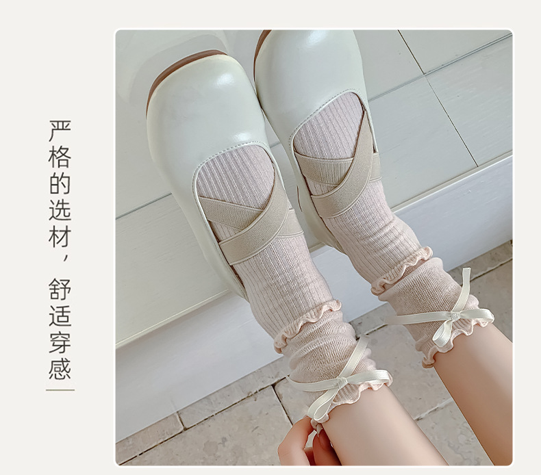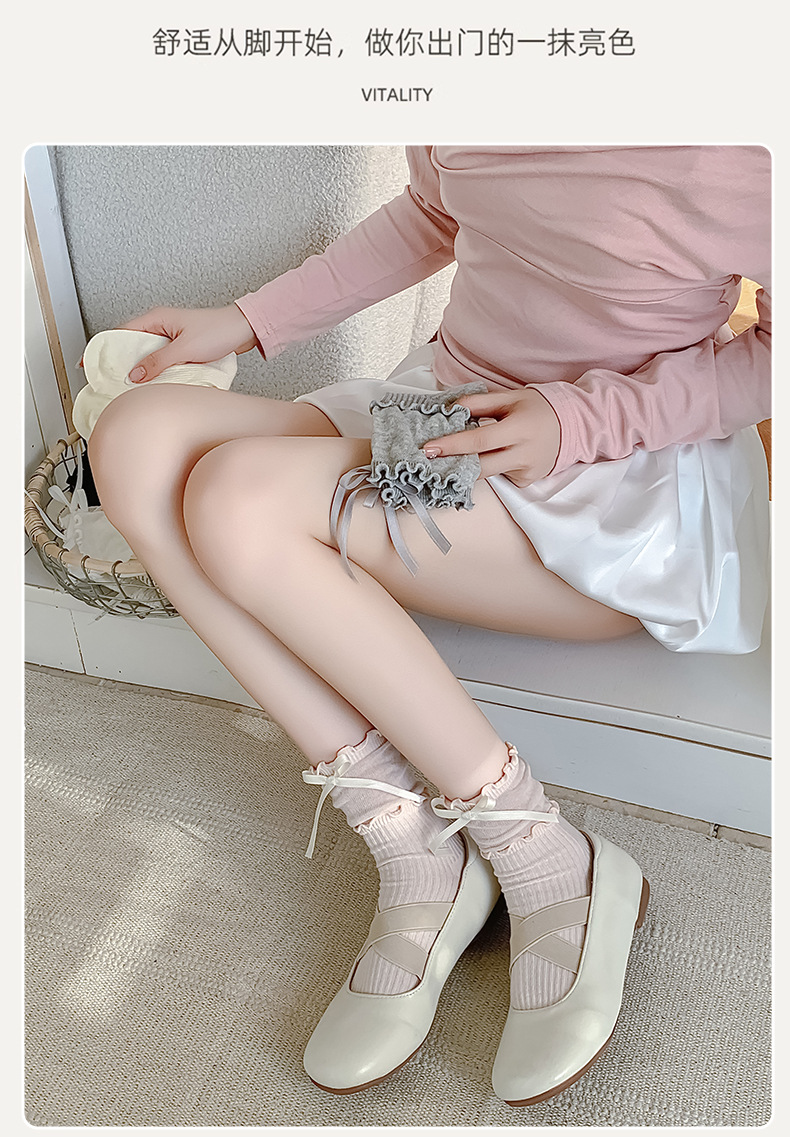 발레 스타일 양말 여성 봄과 여름 얇은 일본 스타일 더블 나무 귀 미드 튜브 양말 달콤한 활 더미 스타킹 로리타