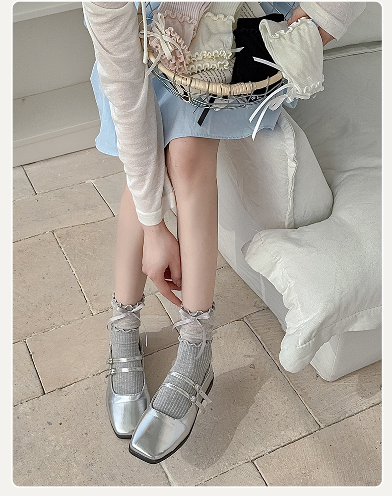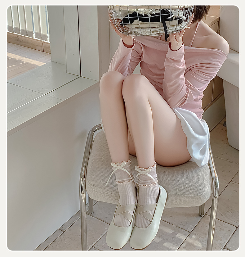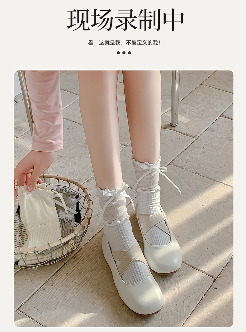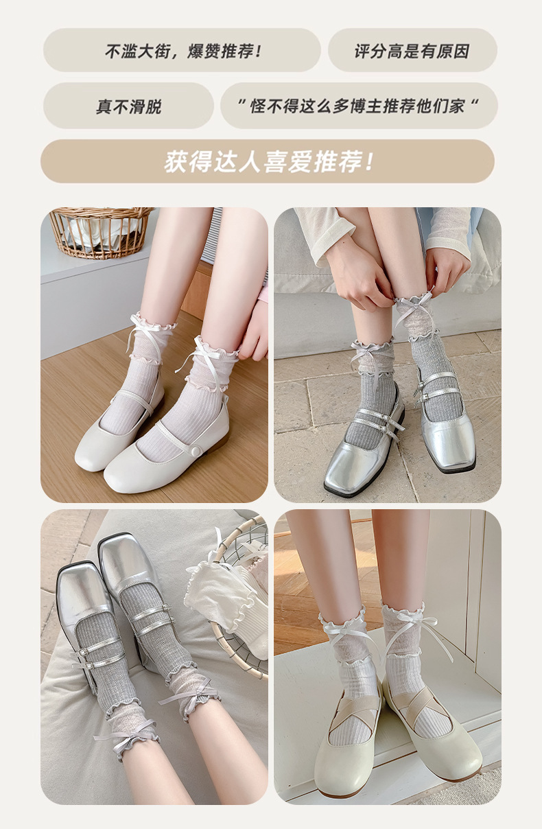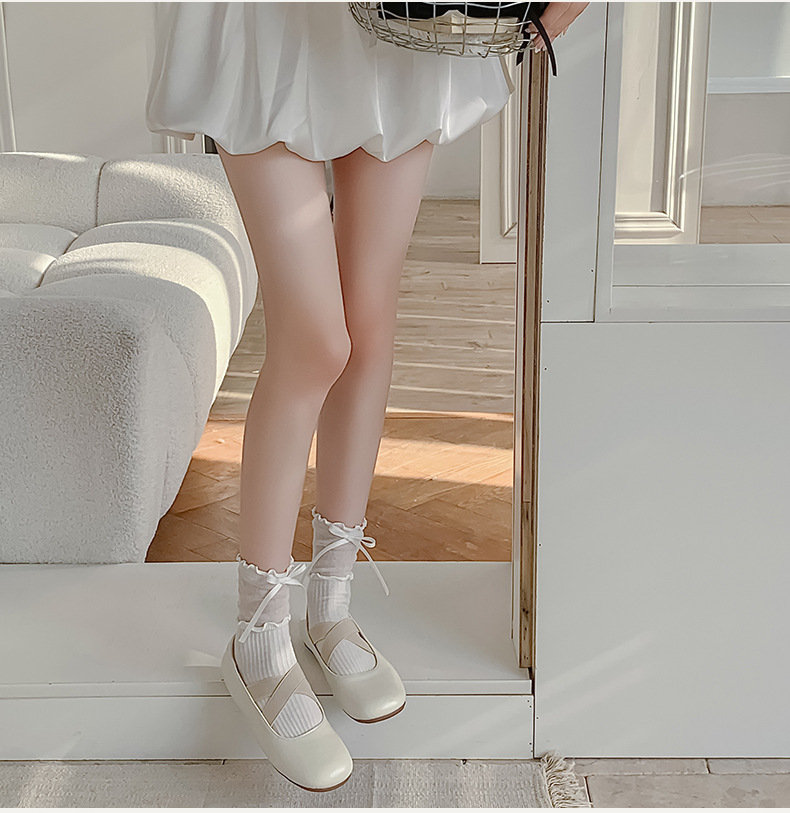 발레 스타일 양말 여성 봄과 여름 얇은 일본 스타일 더블 나무 귀 미드 튜브 양말 달콤한 활 더미 스타킹 로리타
