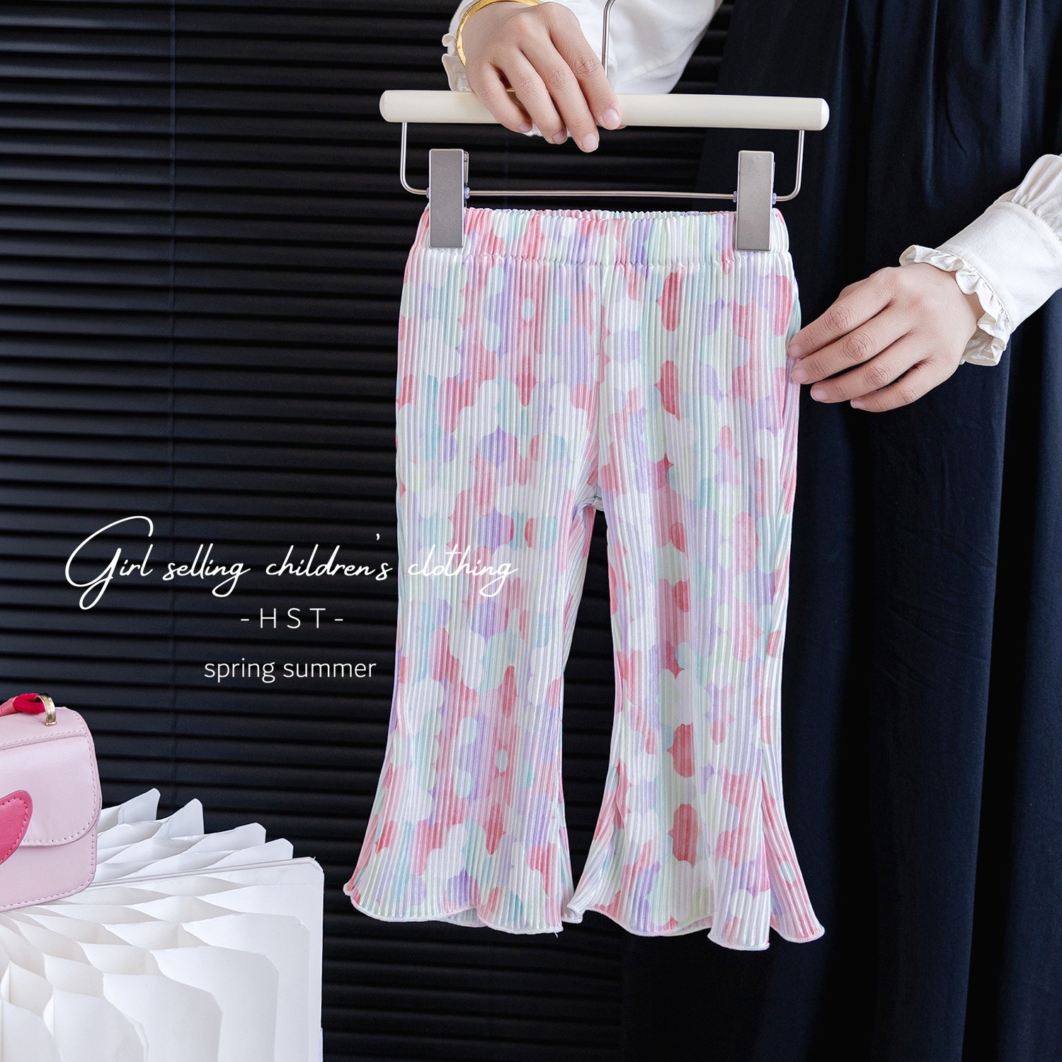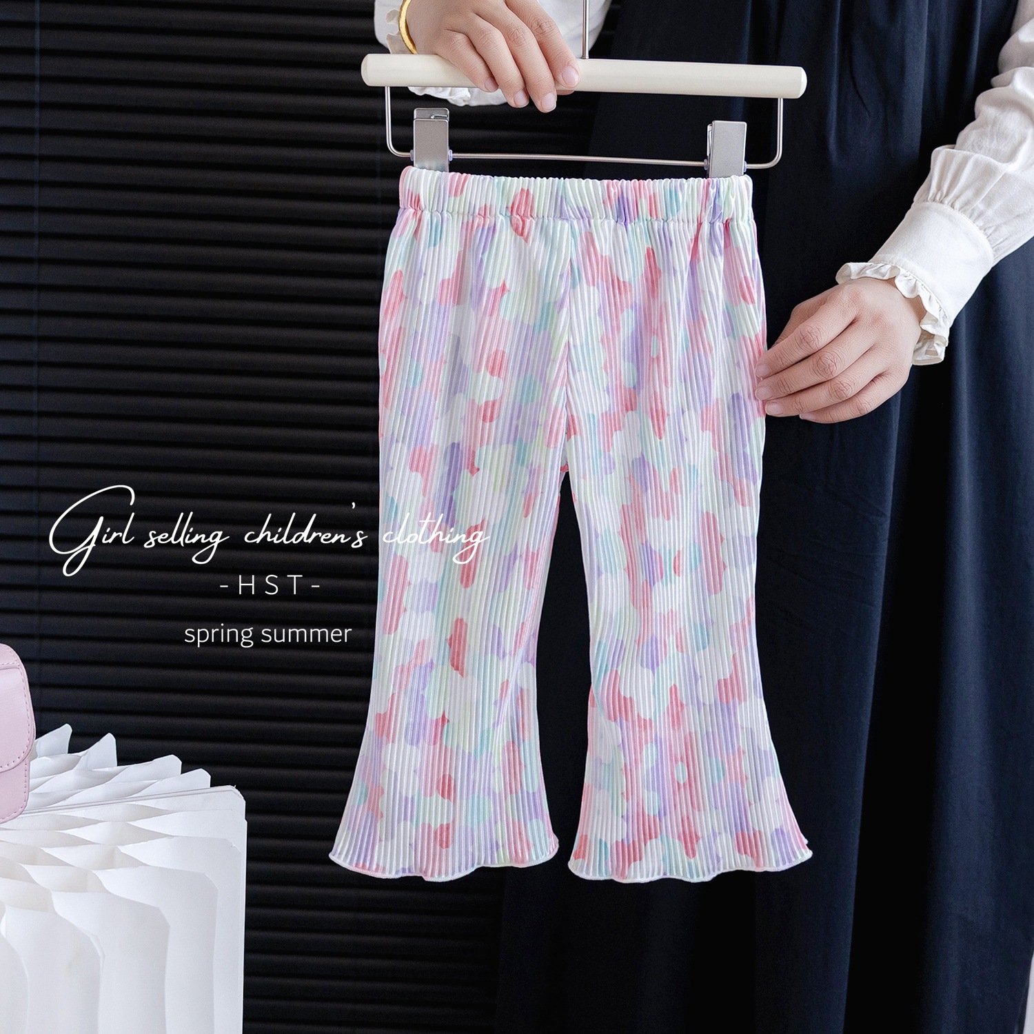 한국 아동복 바지 2024 여름 새로운 유행 서양식 인쇄 모든 경기 안티 모기 바지 아기 여성 에어컨 바지