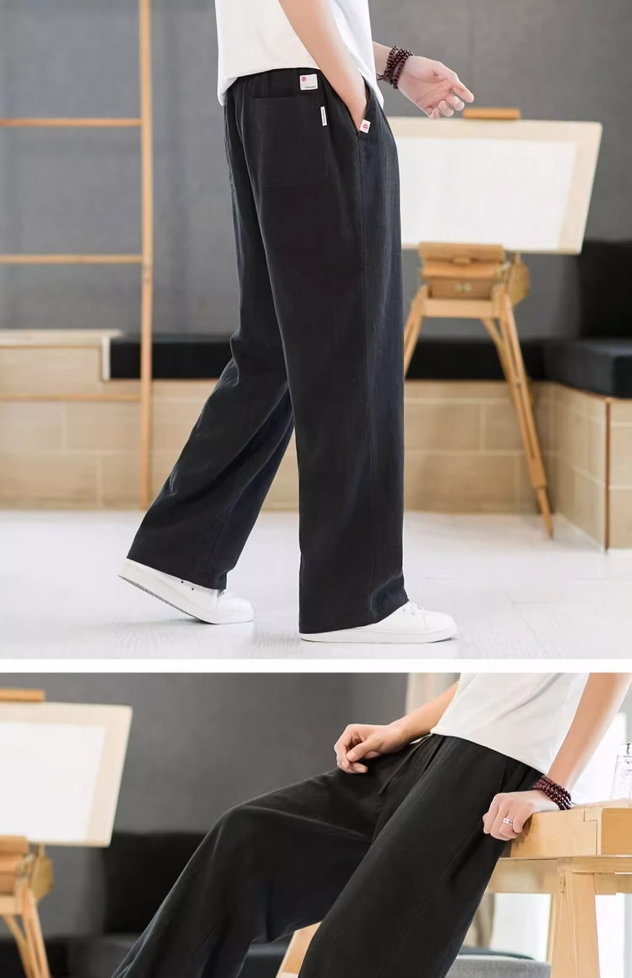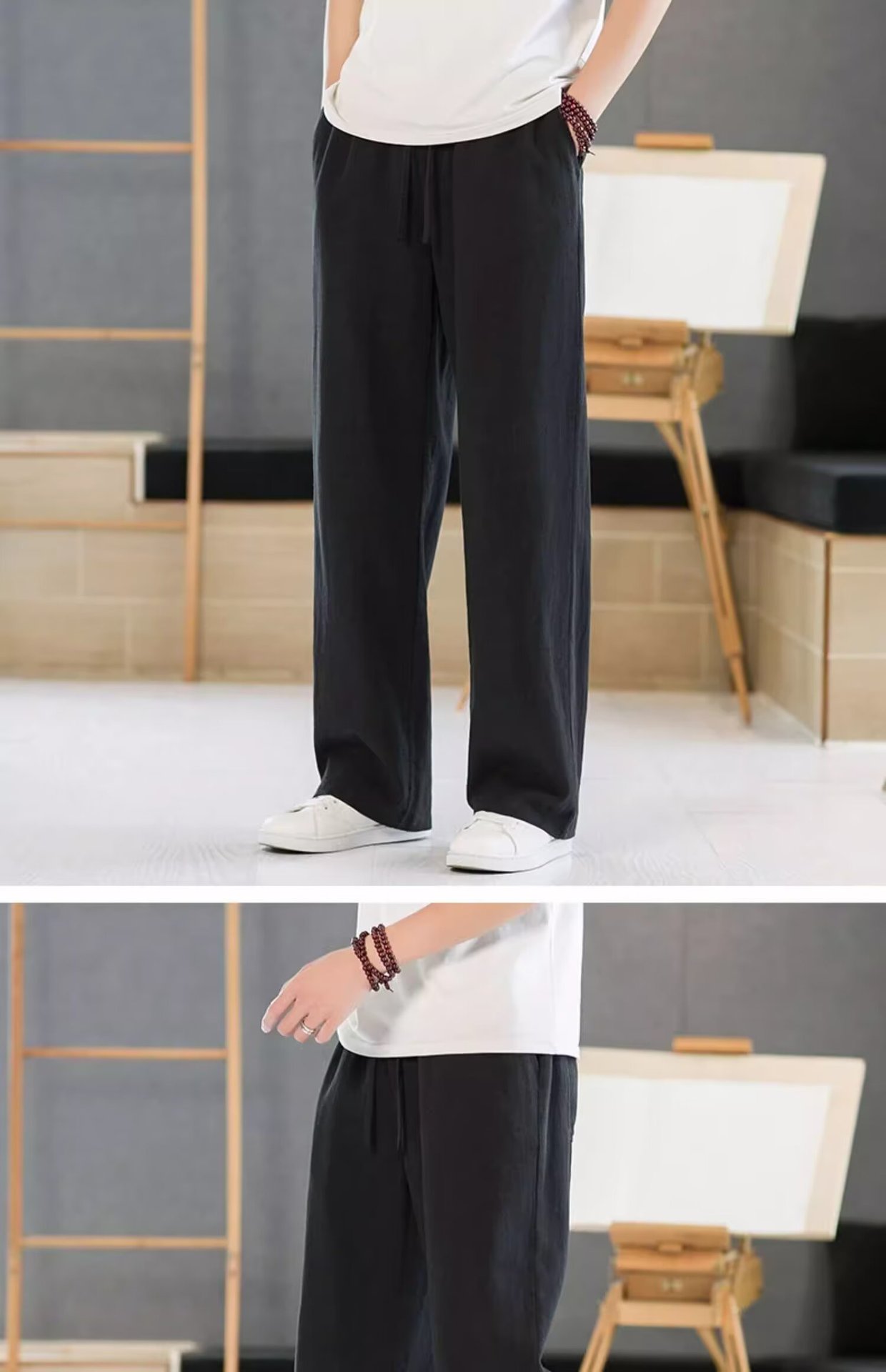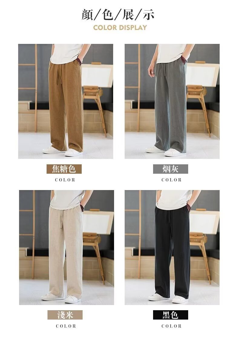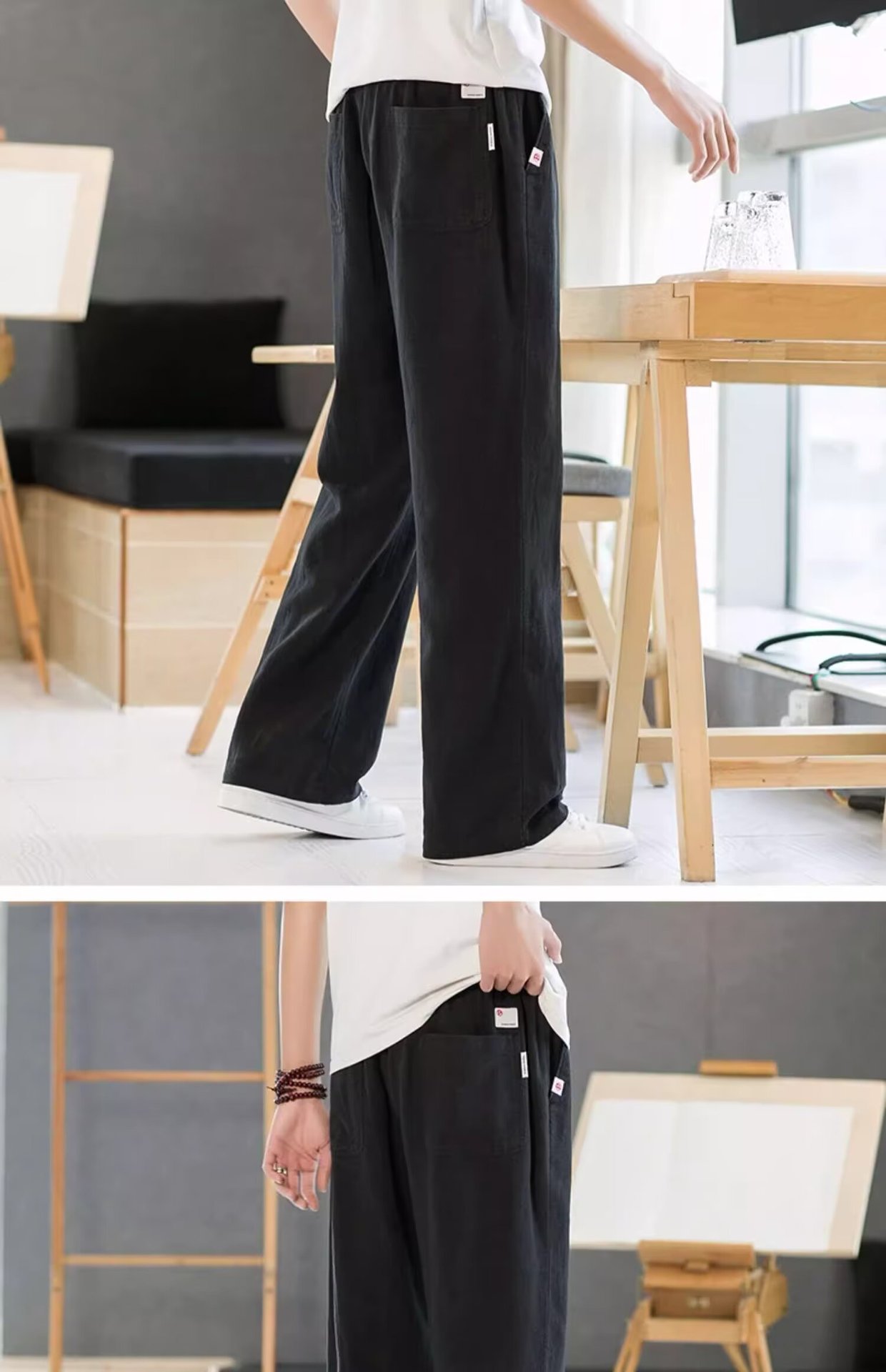 2024 신상 루즈 캐주얼 팬츠 남성 한국 스타일 트렌디한 다용도 팬츠 여름 얇은 와이드 레그 바닥 길이 바지