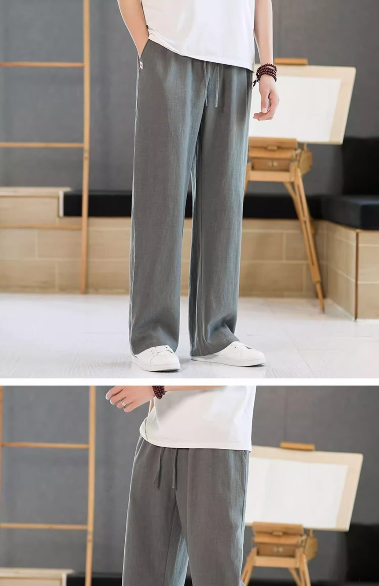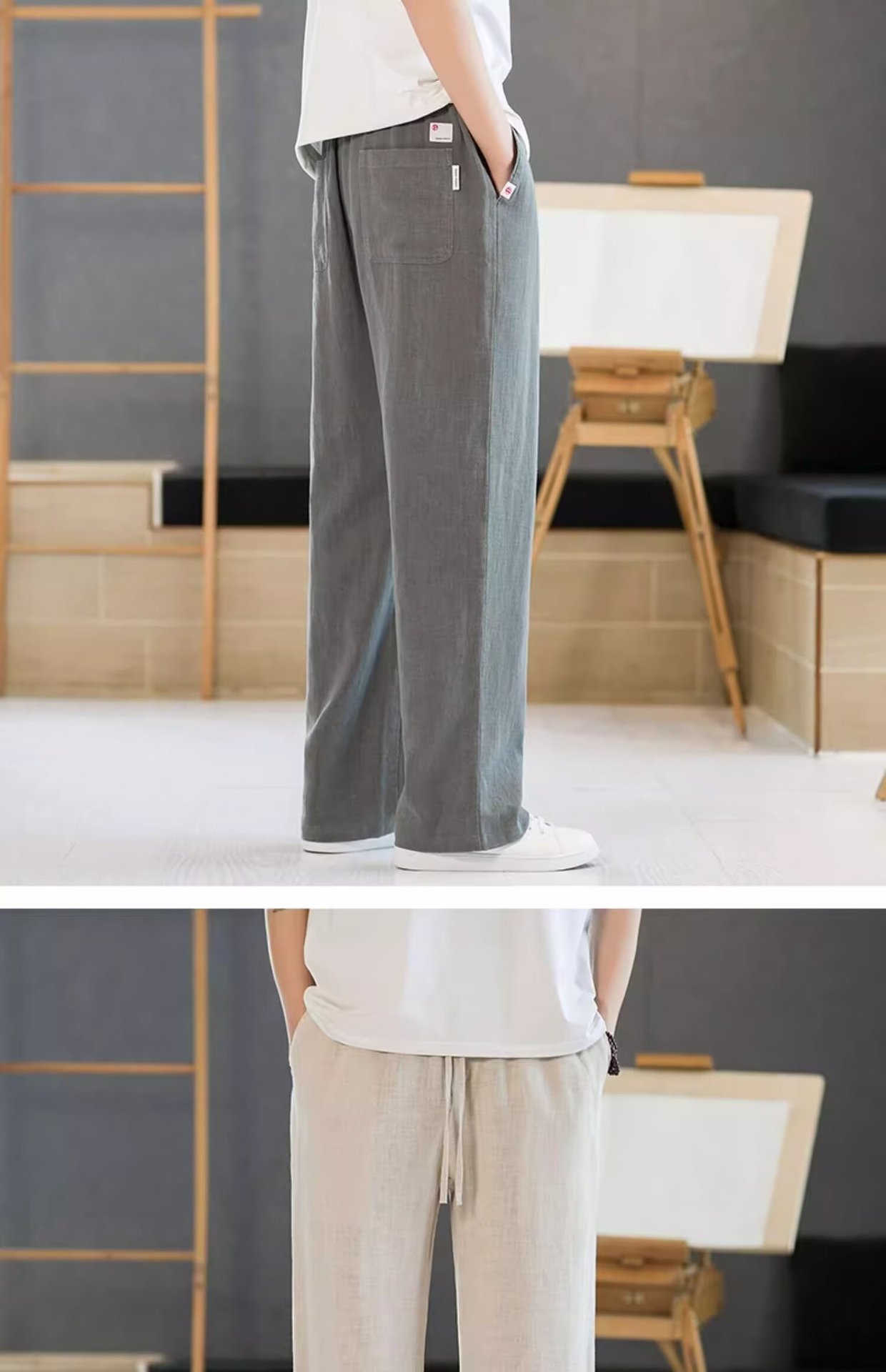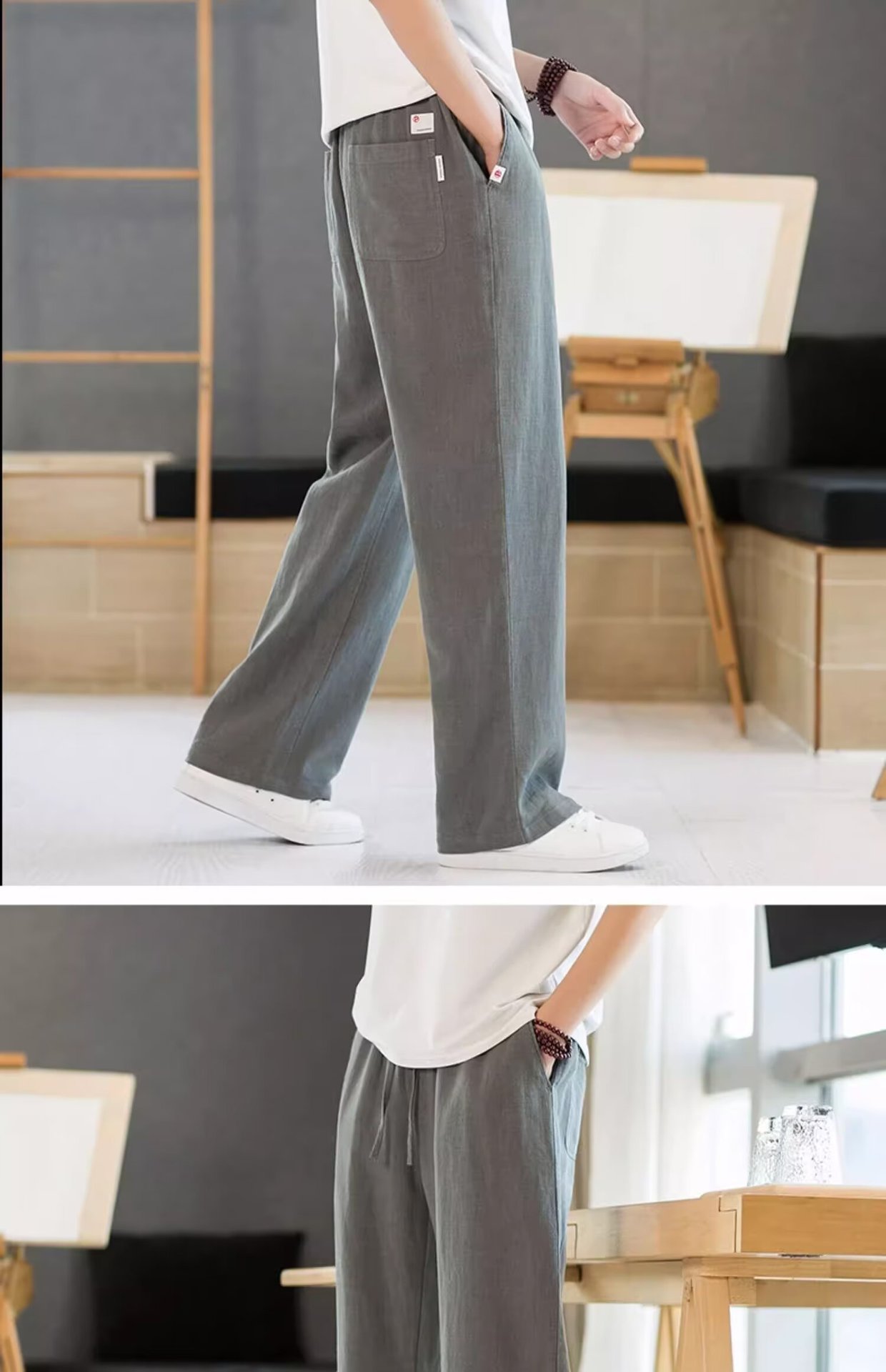 2024 신상 루즈 캐주얼 팬츠 남성 한국 스타일 트렌디한 다용도 팬츠 여름 얇은 와이드 레그 바닥 길이 바지