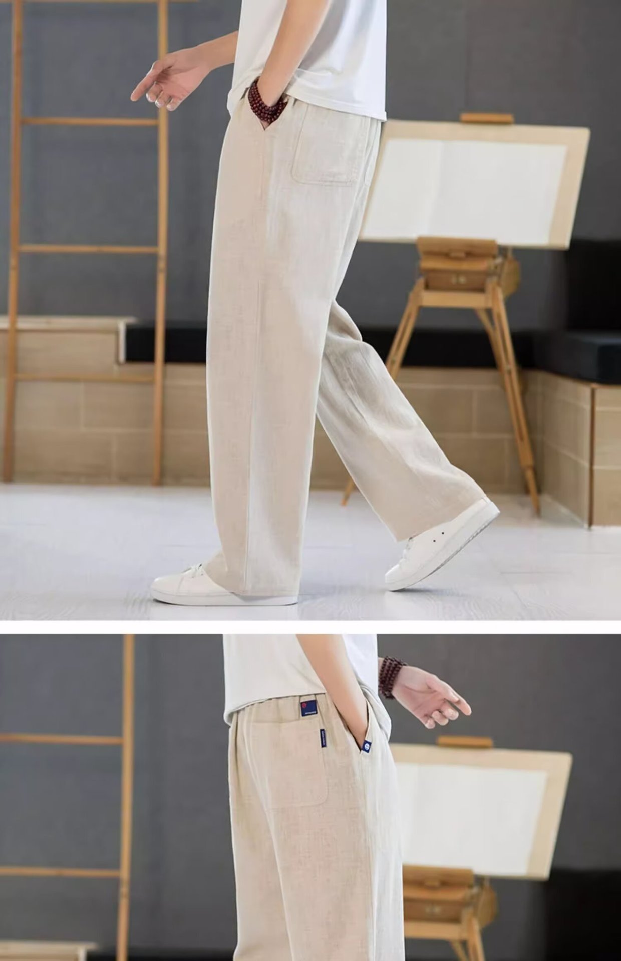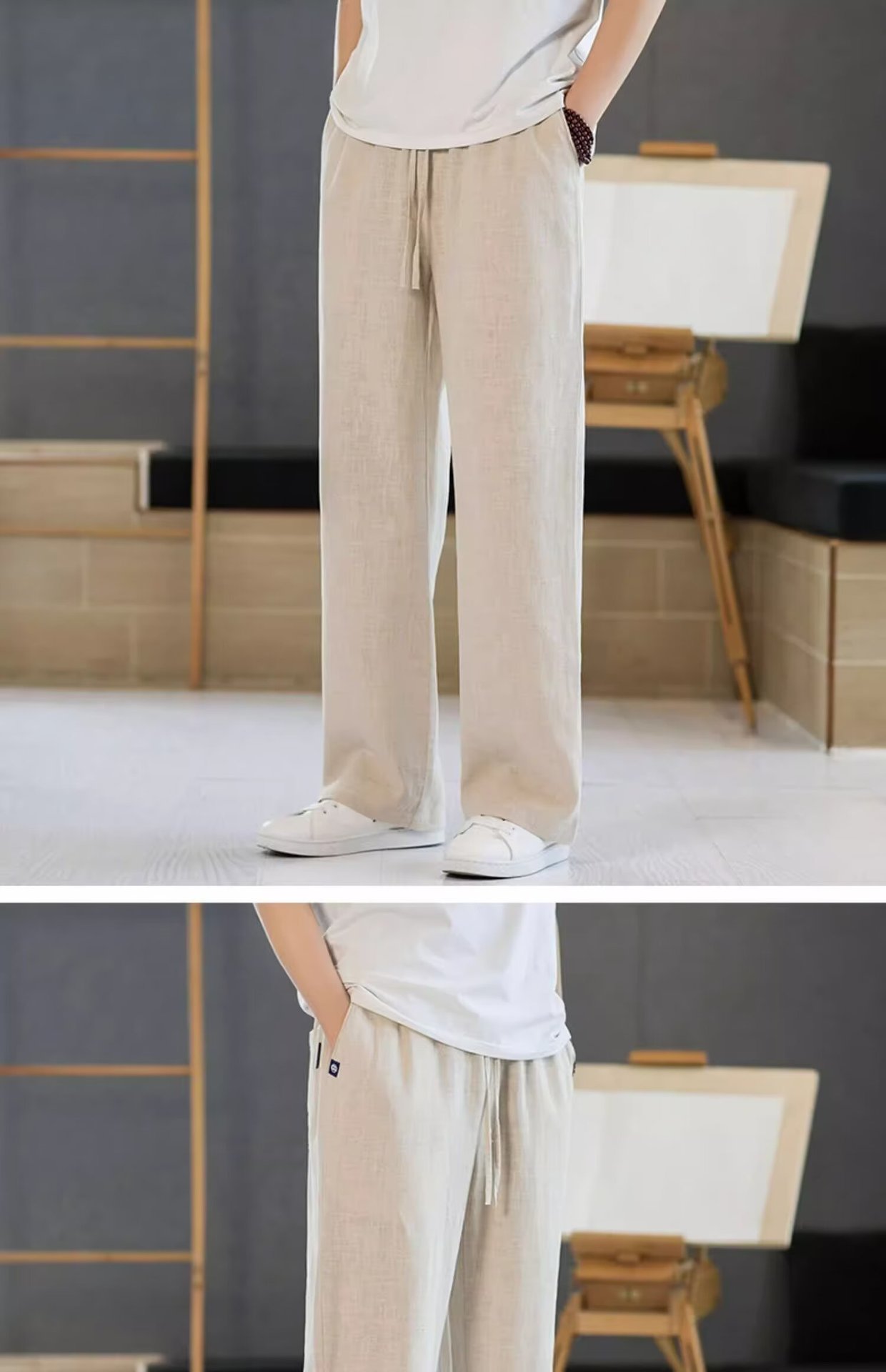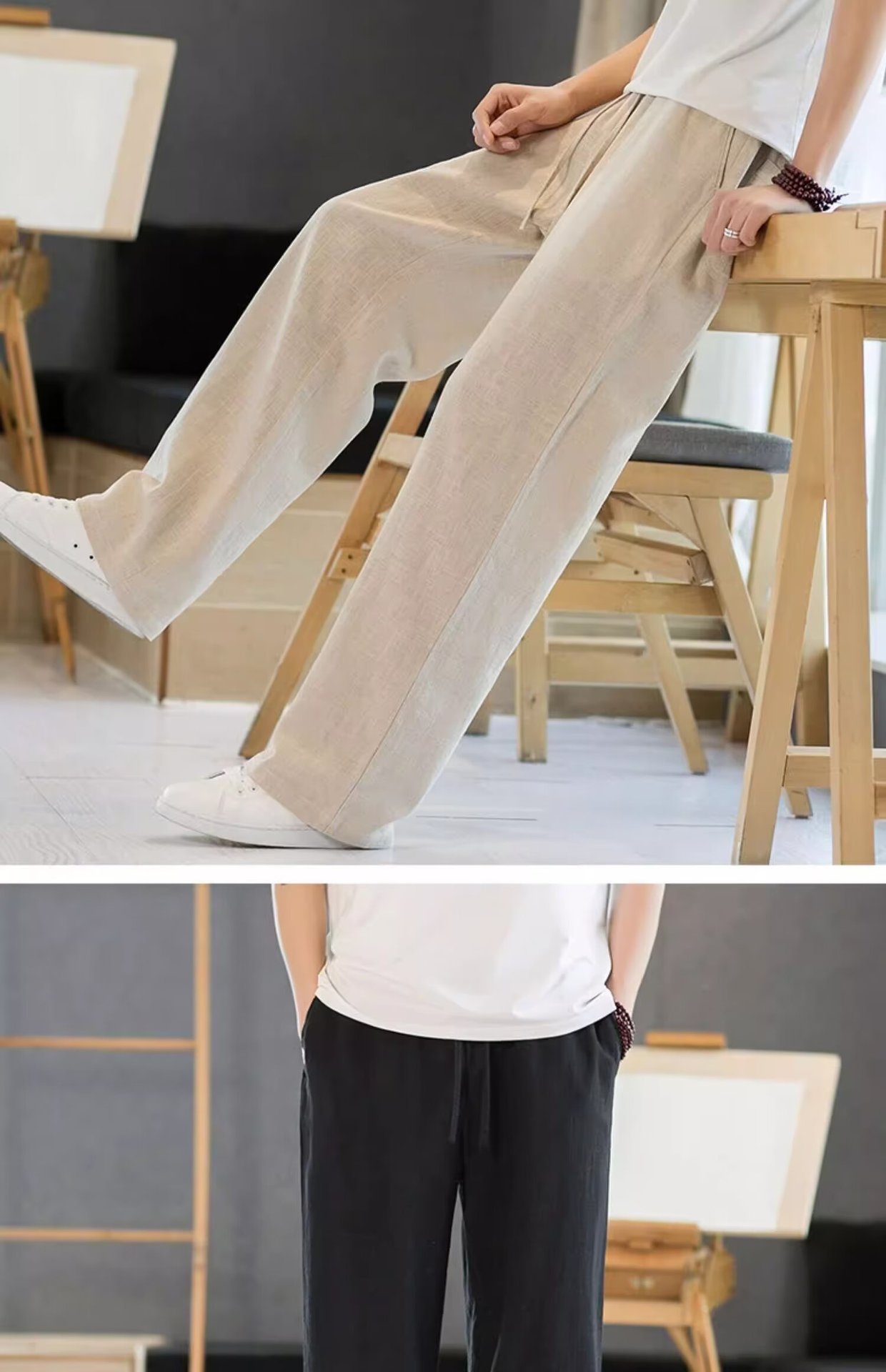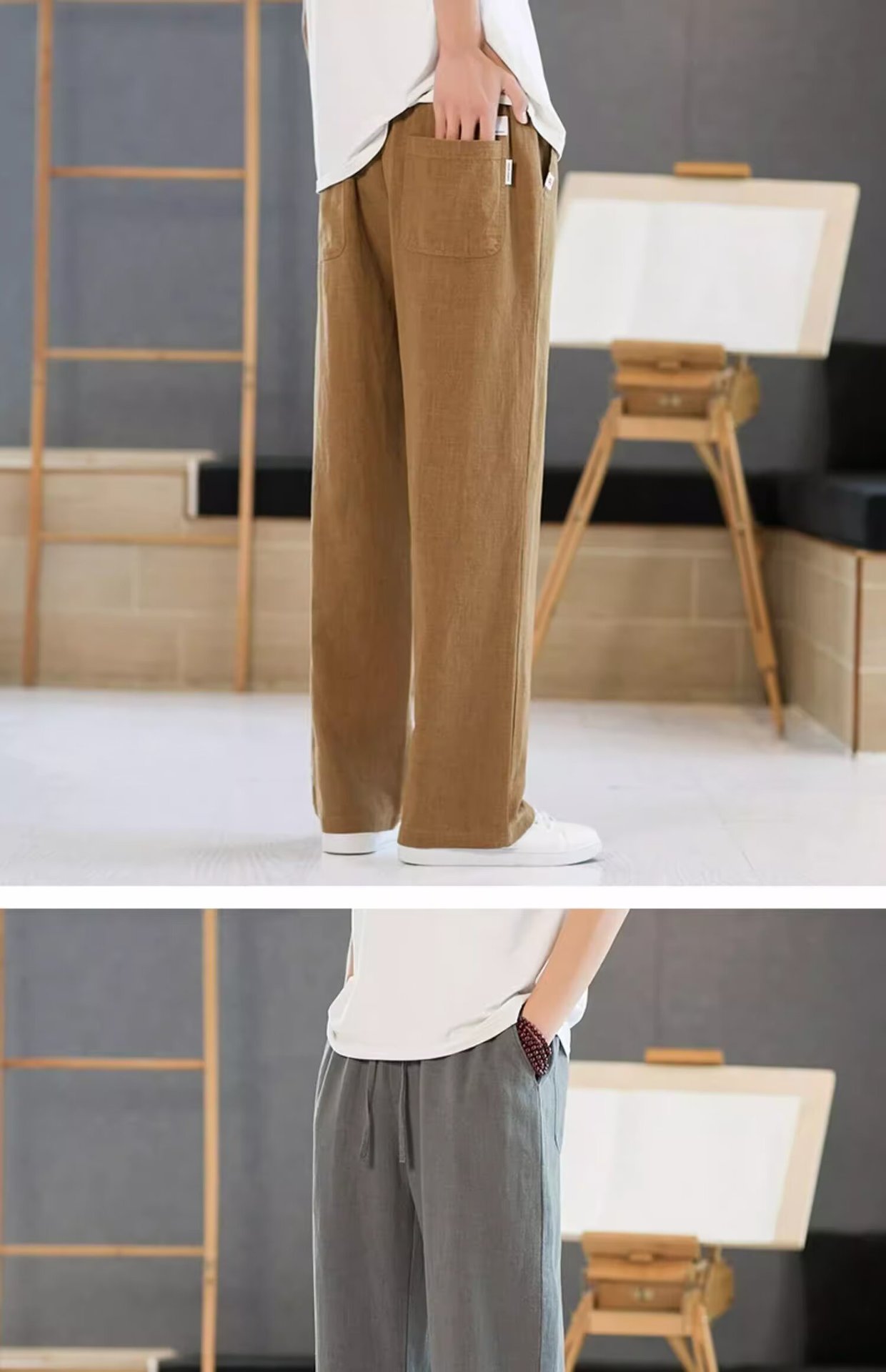 2024 신상 루즈 캐주얼 팬츠 남성 한국 스타일 트렌디한 다용도 팬츠 여름 얇은 와이드 레그 바닥 길이 바지