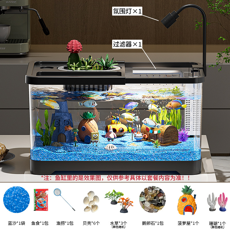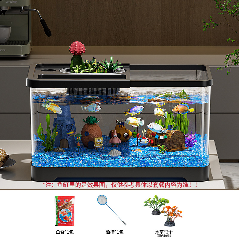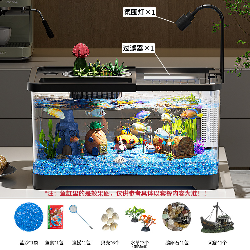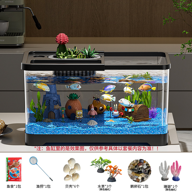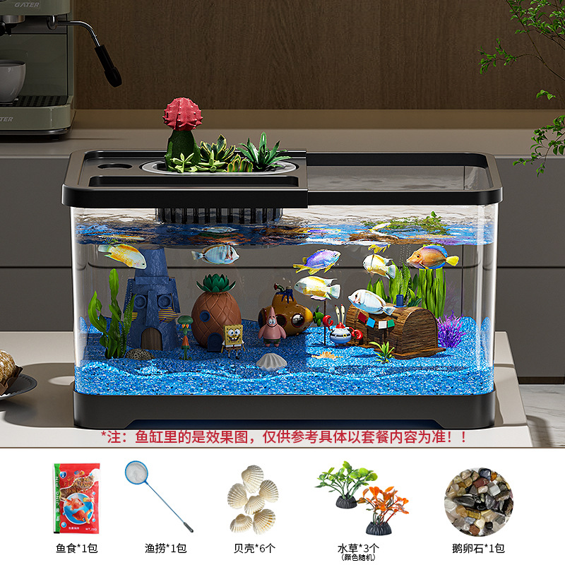 거실 물고기 탱크 가정용 작은 생태 탱크 풀 세트 데스크탑 풍경 금붕어 탱크 사무실 HD 투명 거북이 탱크스토어 가기