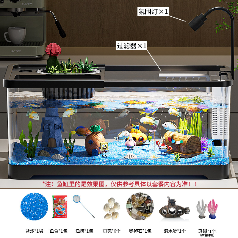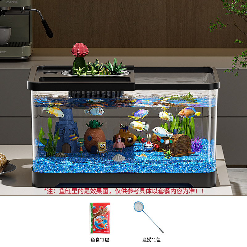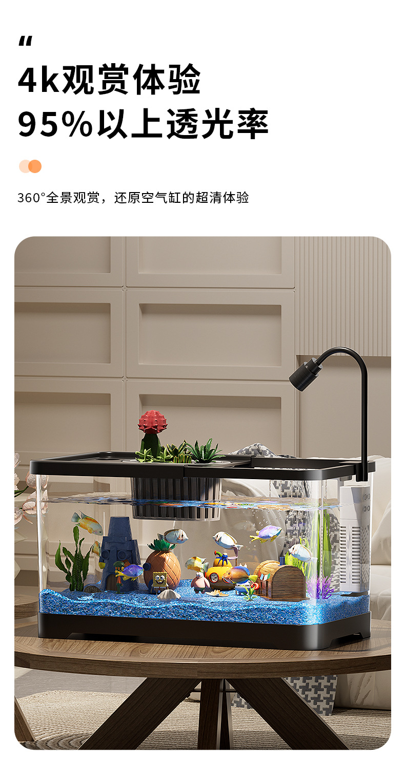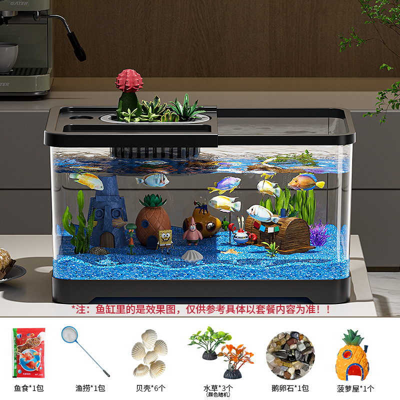 거실 물고기 탱크 가정용 작은 생태 탱크 풀 세트 데스크탑 풍경 금붕어 탱크 사무실 HD 투명 거북이 탱크스토어 가기