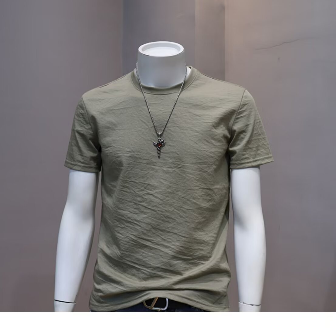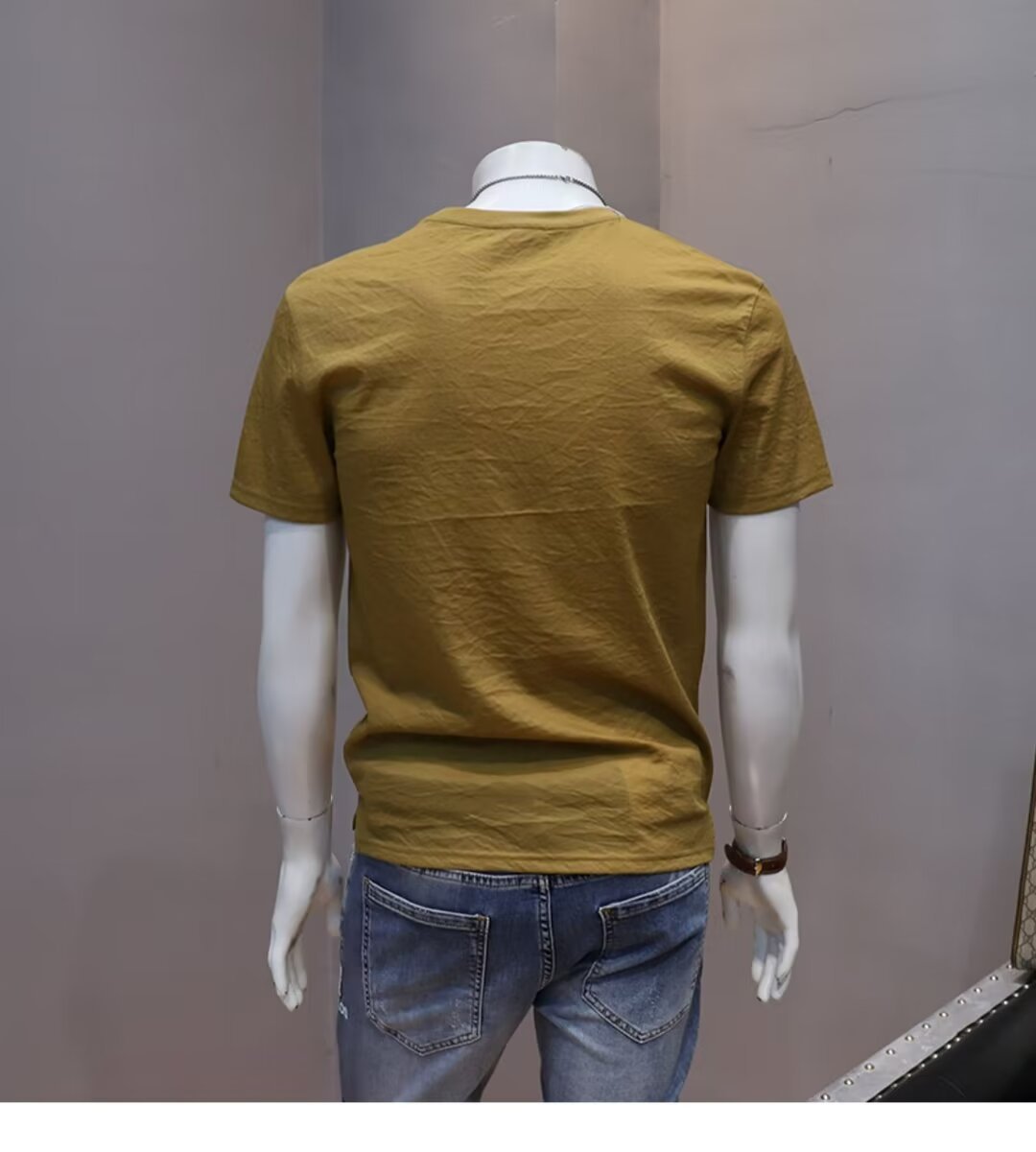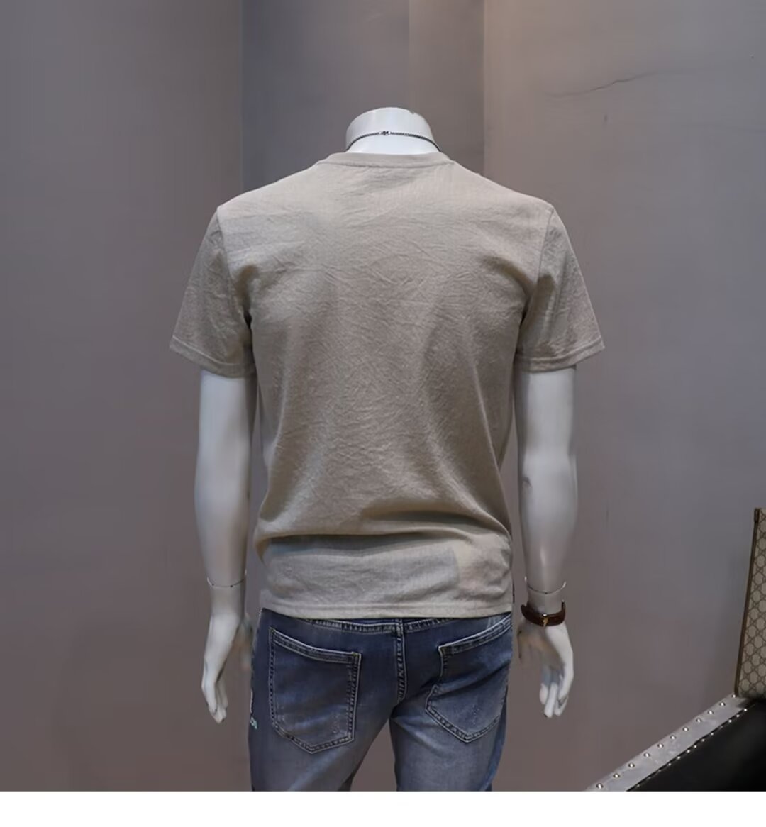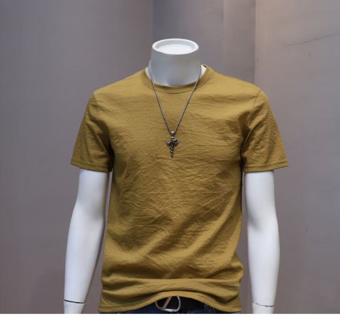 하이 엔드 아이스 실크 반팔 티셔츠 남자 여름 얇은 Tiansi 대마 최고 남성면 및 리넨 반소매 티셔츠스토어 가기
