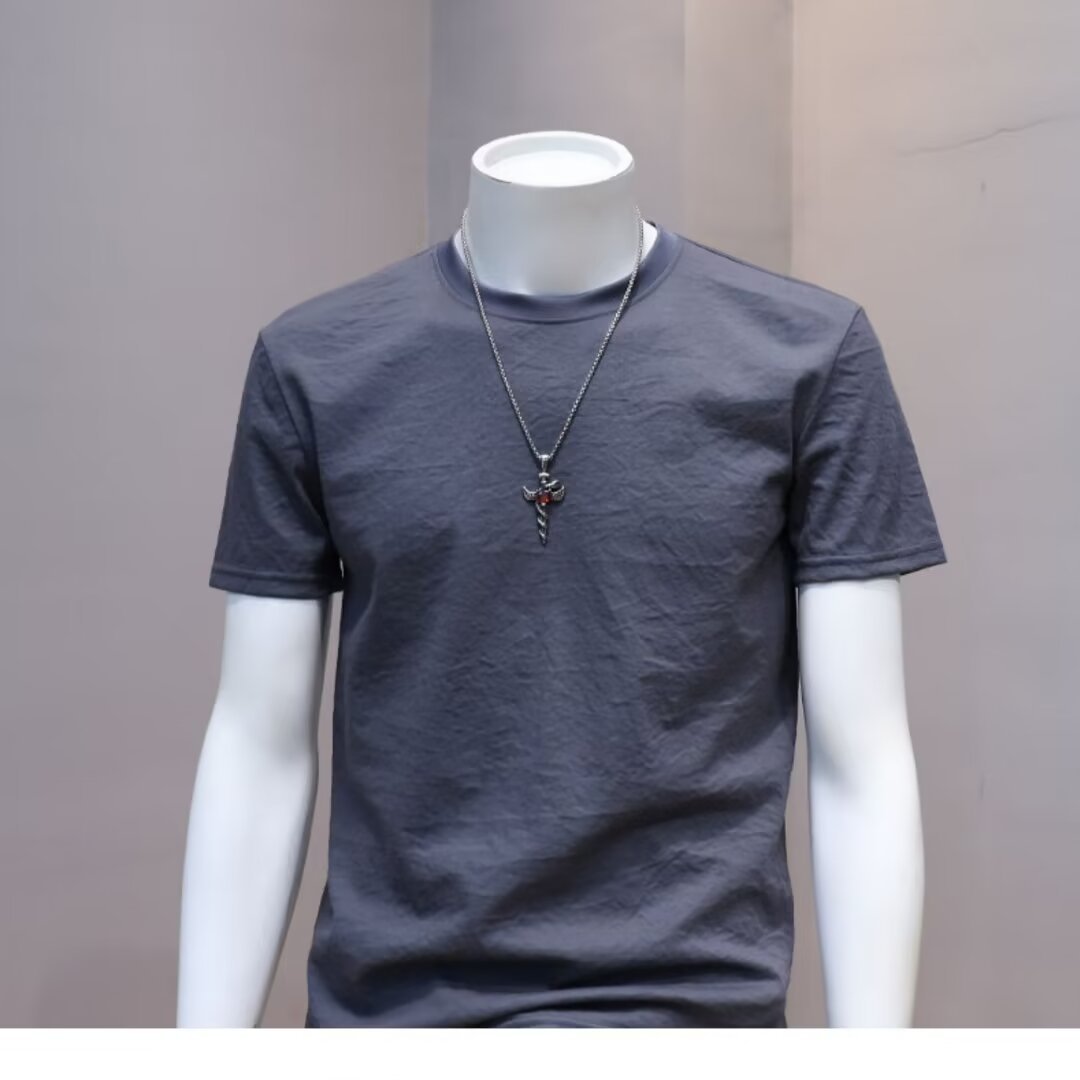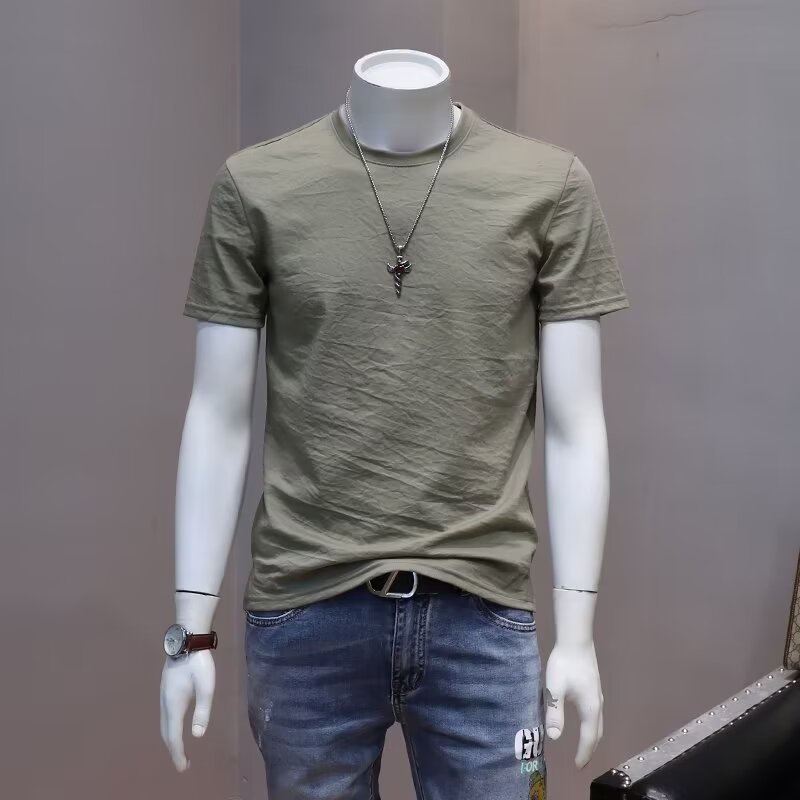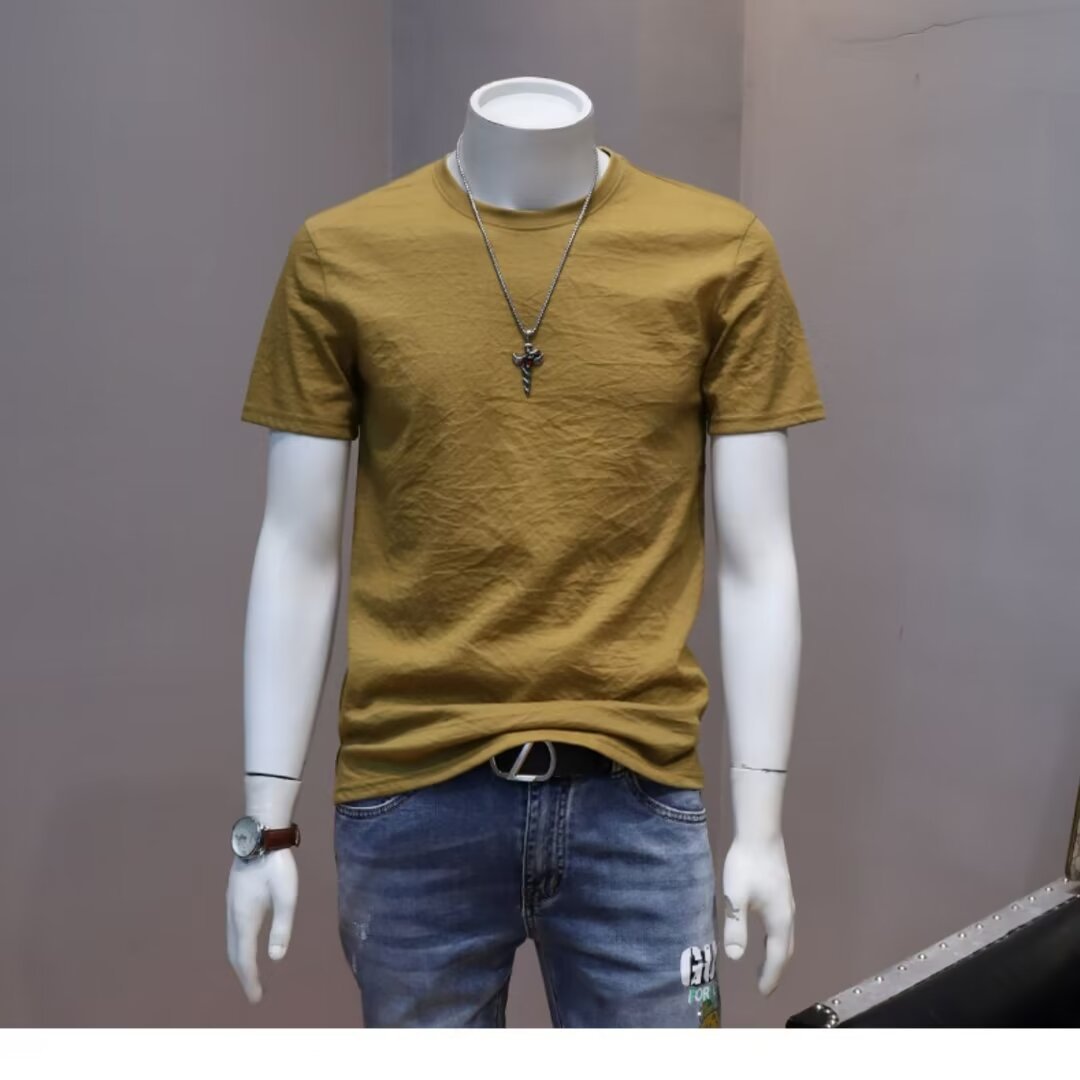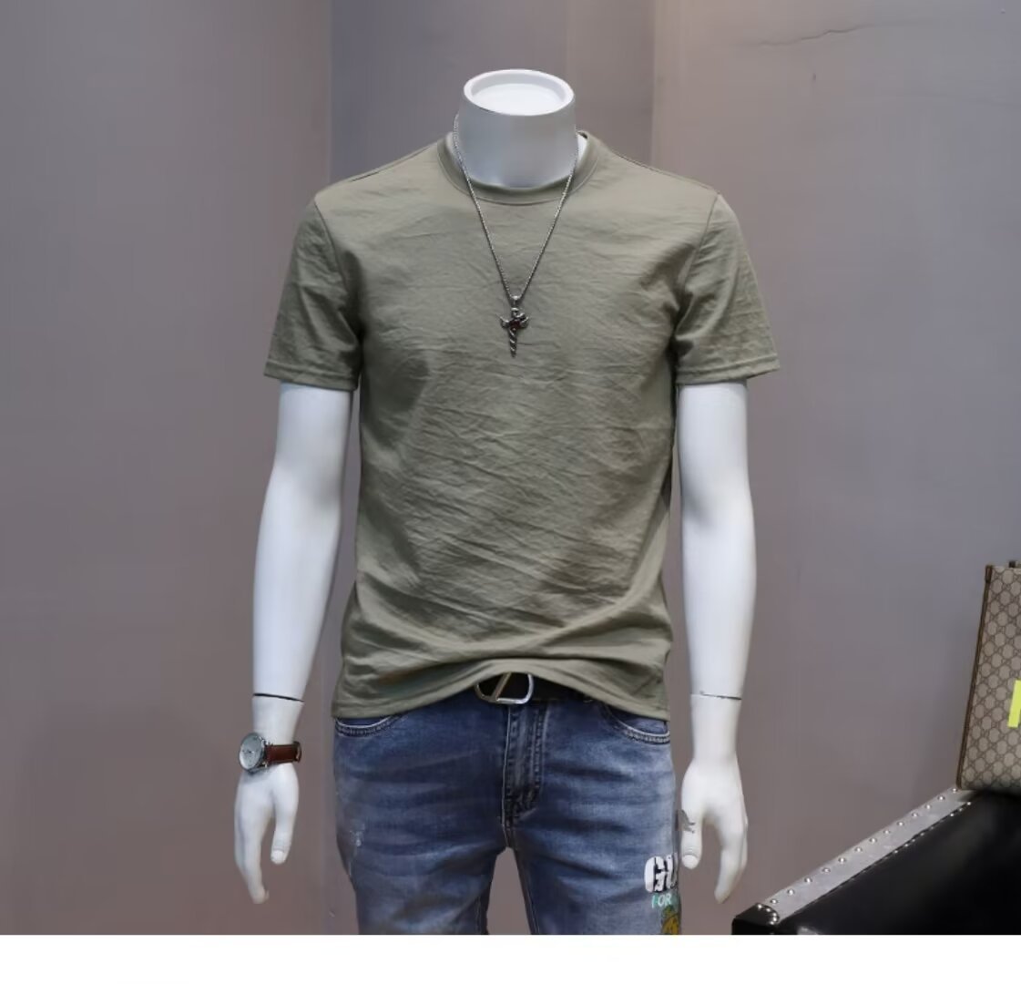 하이 엔드 아이스 실크 반팔 티셔츠 남자 여름 얇은 Tiansi 대마 최고 남성면 및 리넨 반소매 티셔츠스토어 가기