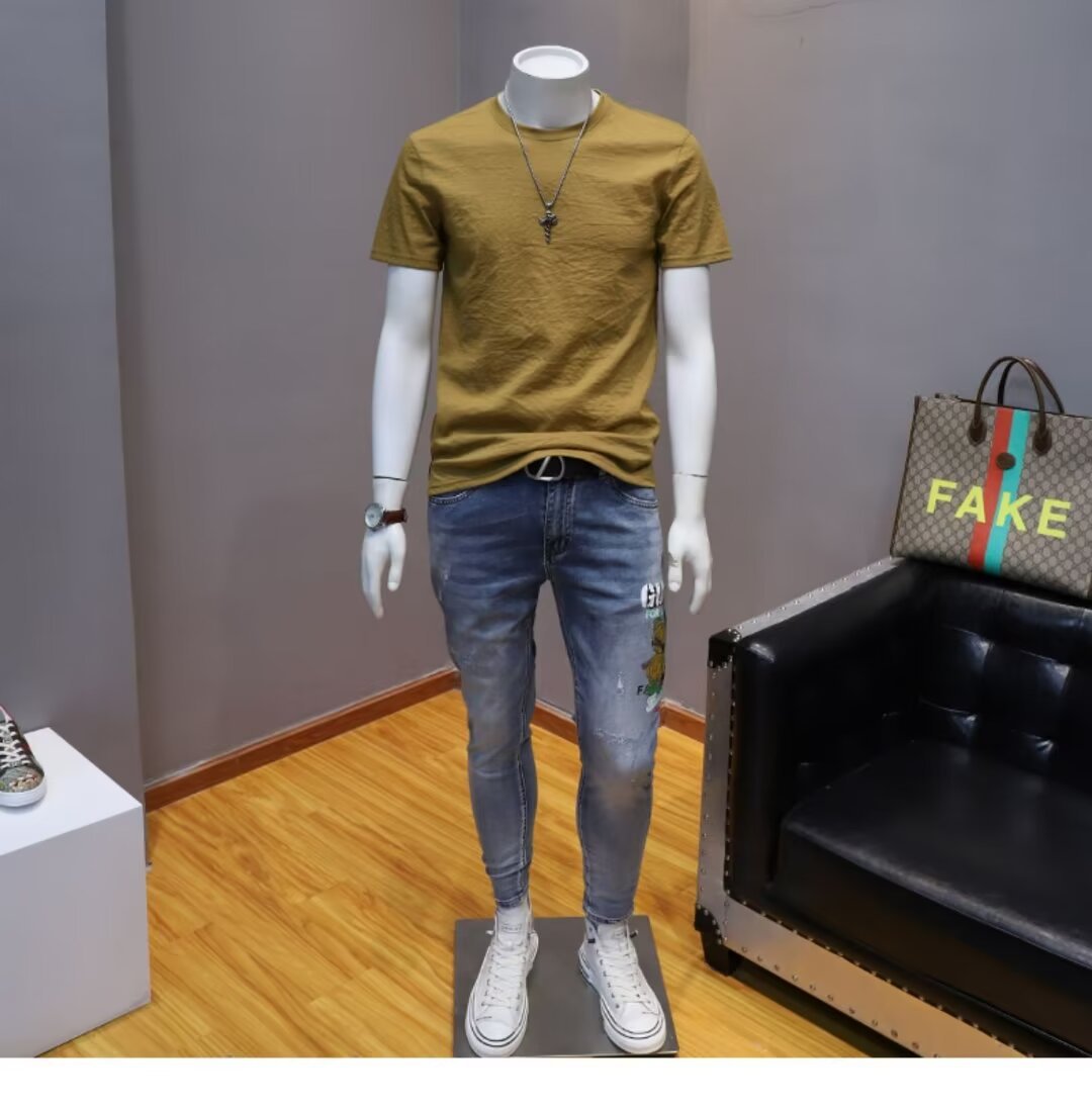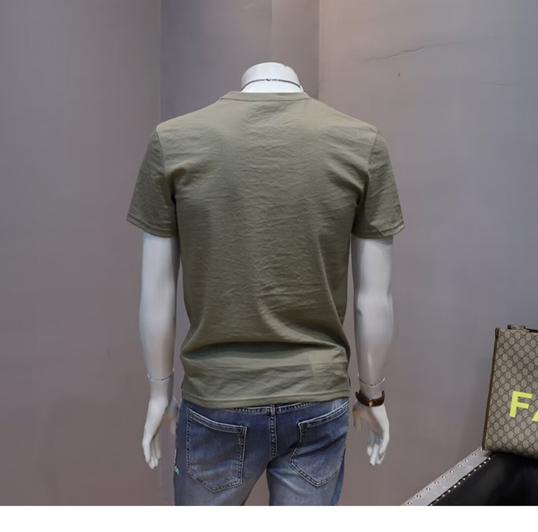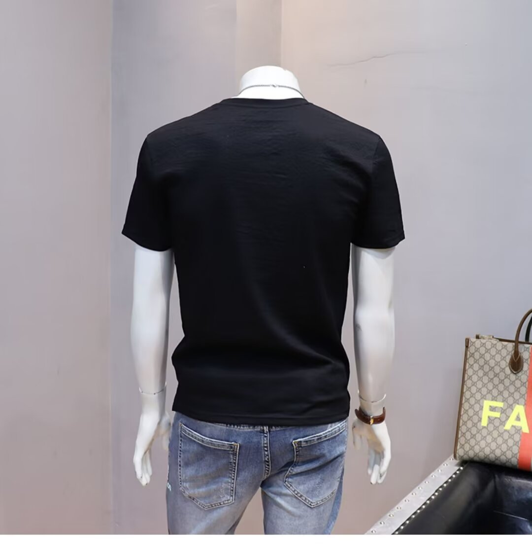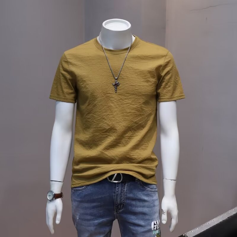하이 엔드 아이스 실크 반팔 티셔츠 남자 여름 얇은 Tiansi 대마 최고 남성면 및 리넨 반소매 티셔츠스토어 가기