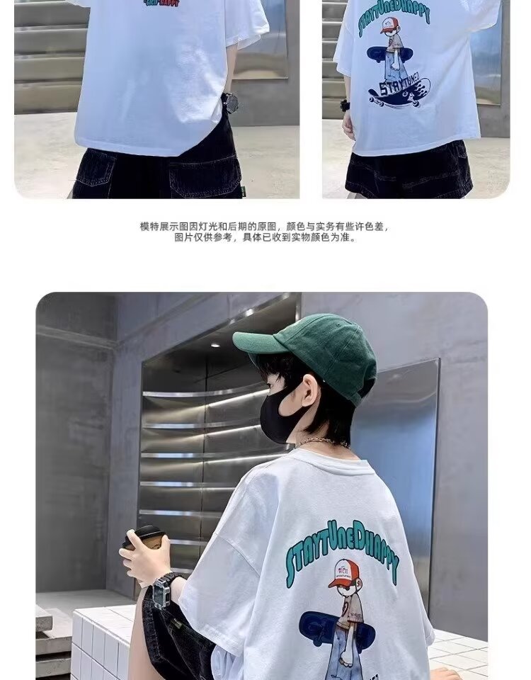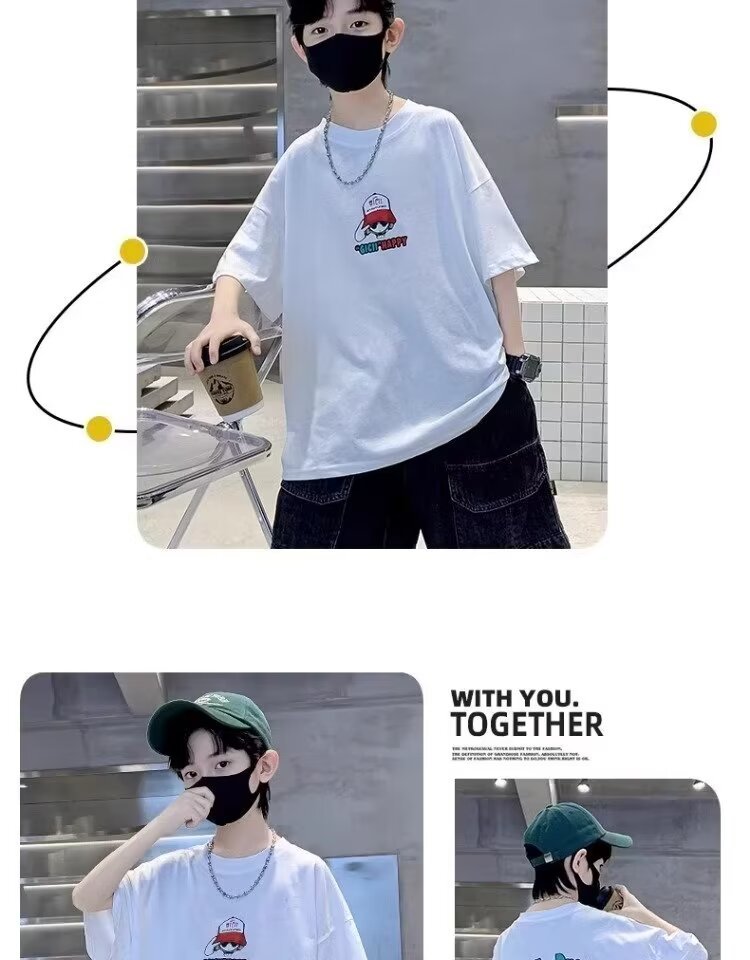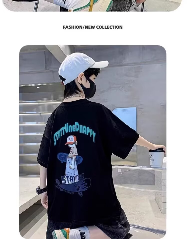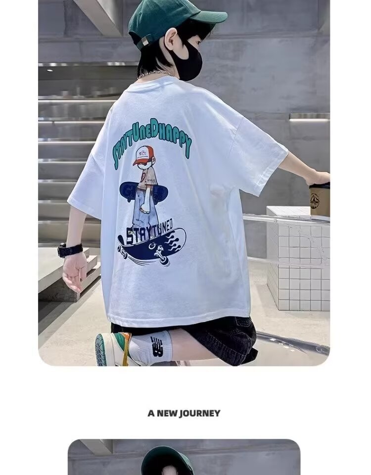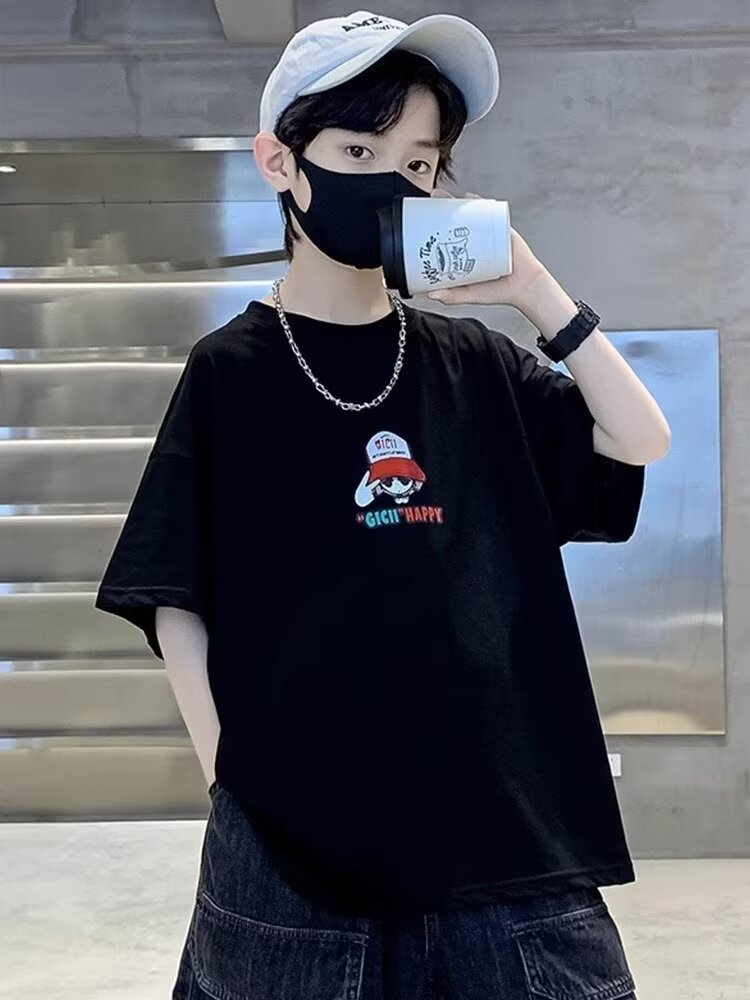 남학생과 여학생 반소매 티셔츠 2024 새로운 재미 어린이 최고 여름 얇은 아기 반소매 티셔츠스토어 가기