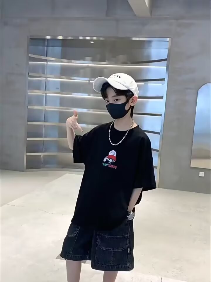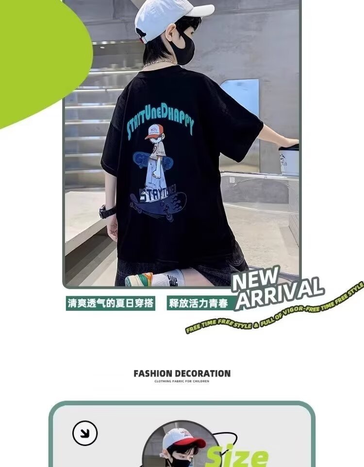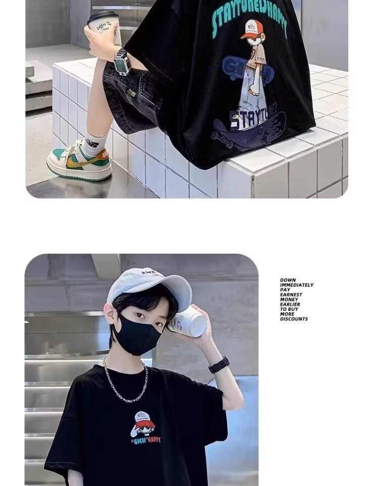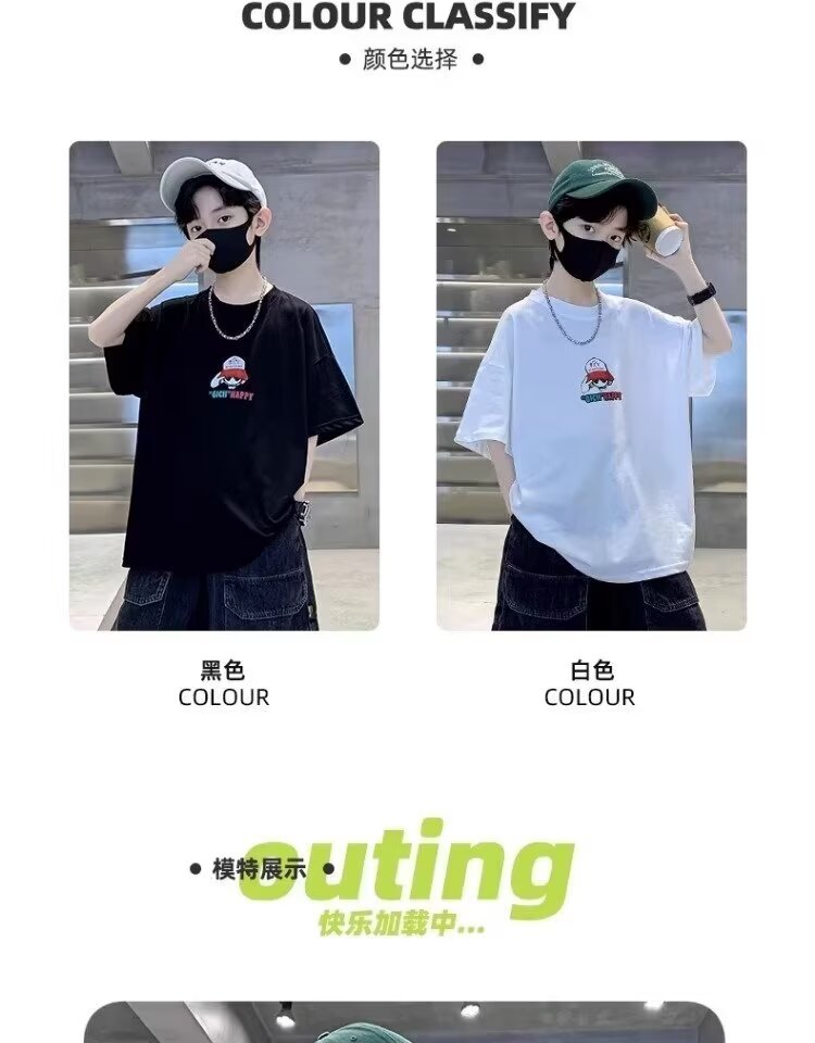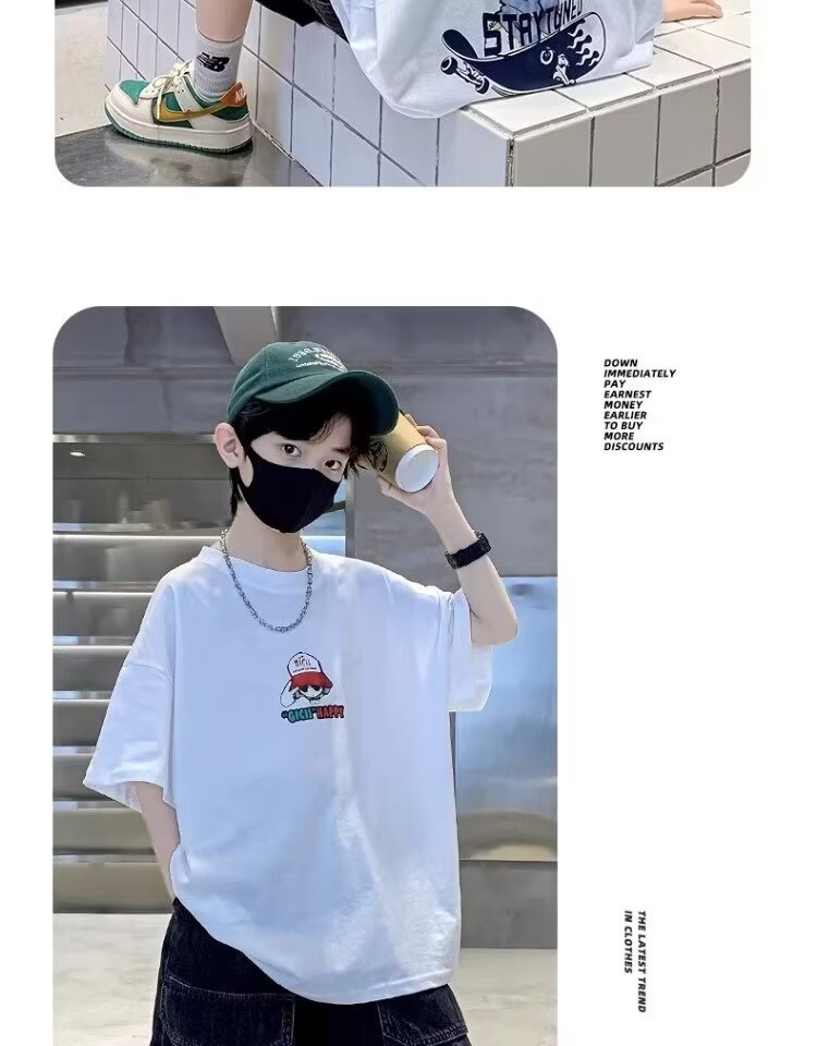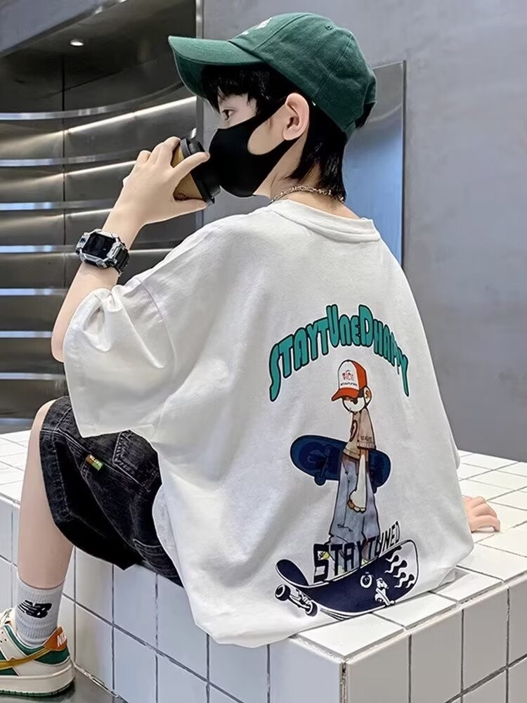 남학생과 여학생 반소매 티셔츠 2024 새로운 재미 어린이 최고 여름 얇은 아기 반소매 티셔츠스토어 가기