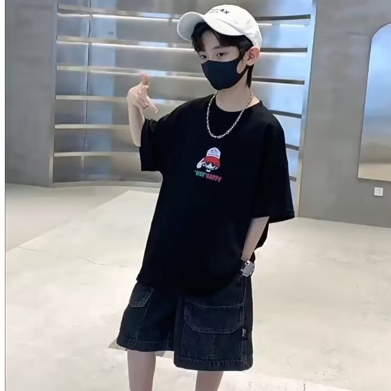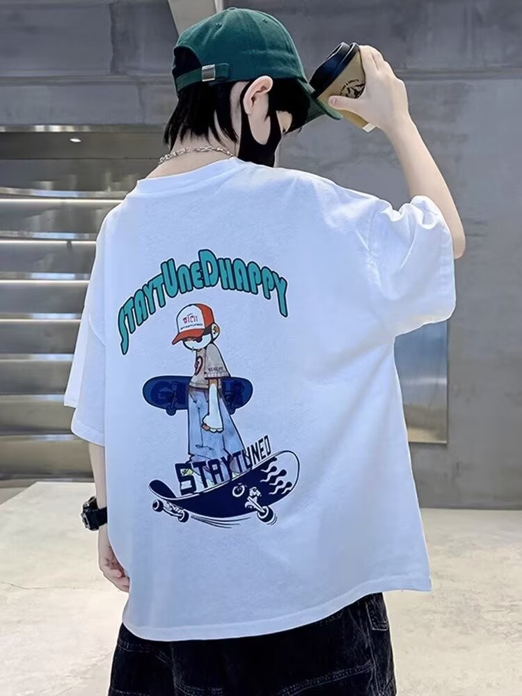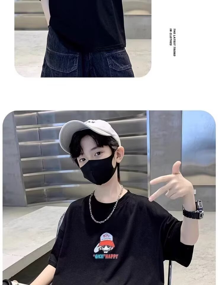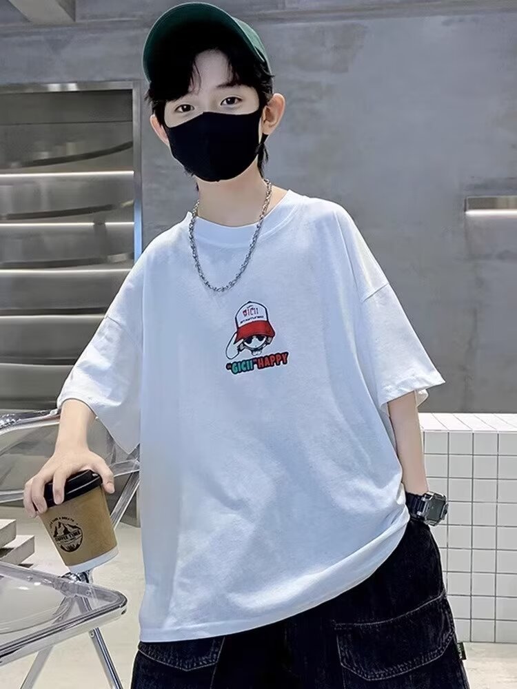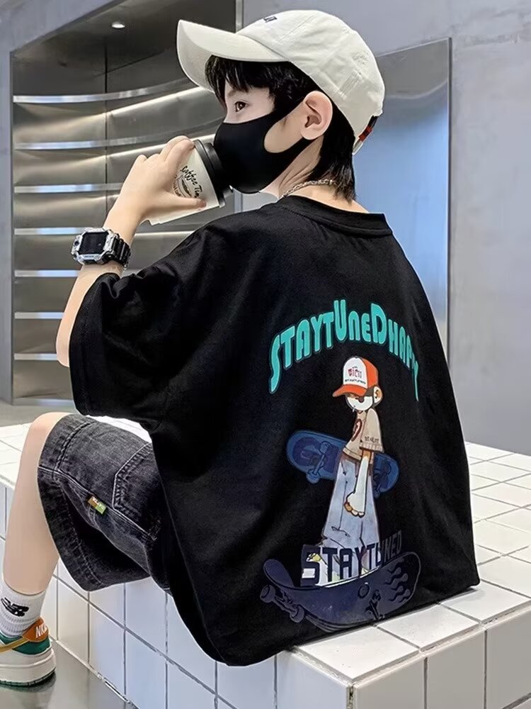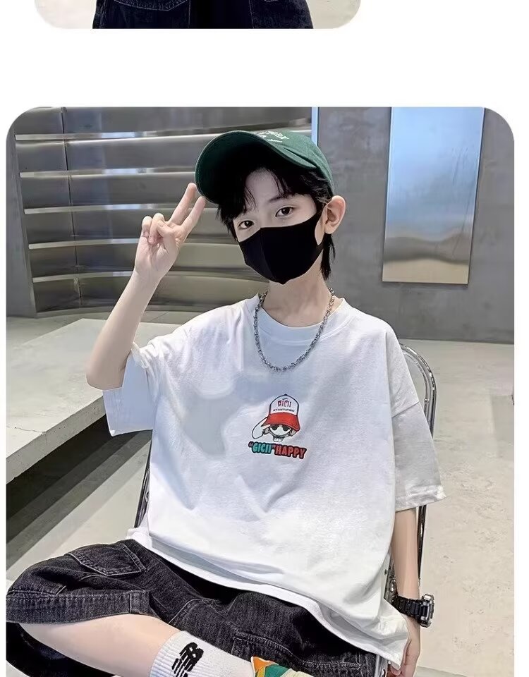 남학생과 여학생 반소매 티셔츠 2024 새로운 재미 어린이 최고 여름 얇은 아기 반소매 티셔츠