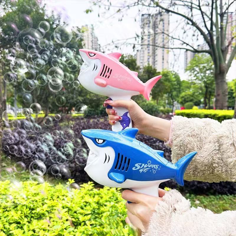 새로운 어린이 인기 만화 전기 작은 상어 거품 다공성 거품 기계 완전 자동 거품 부는 장난감 도매