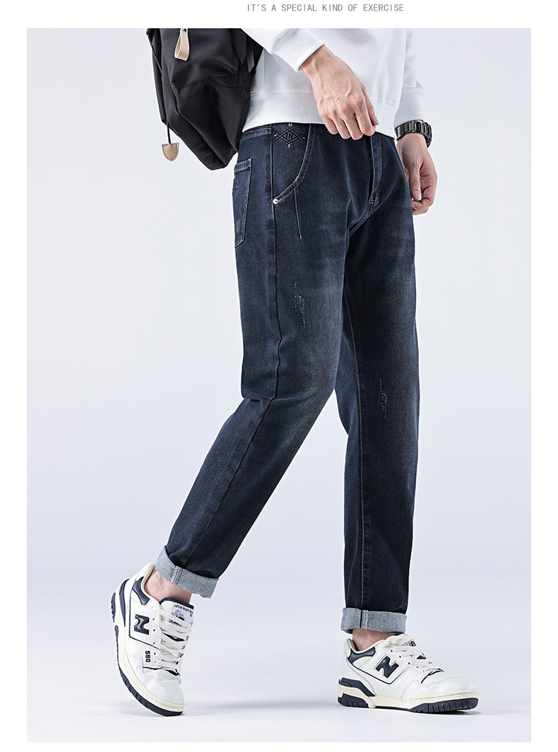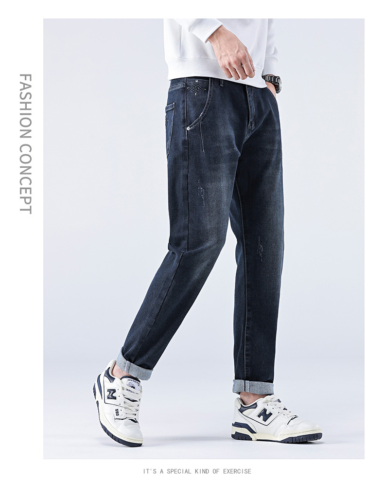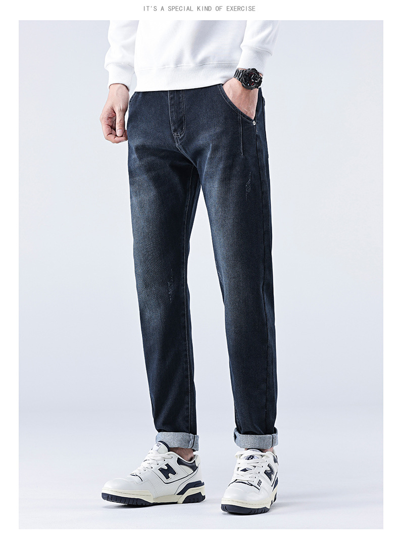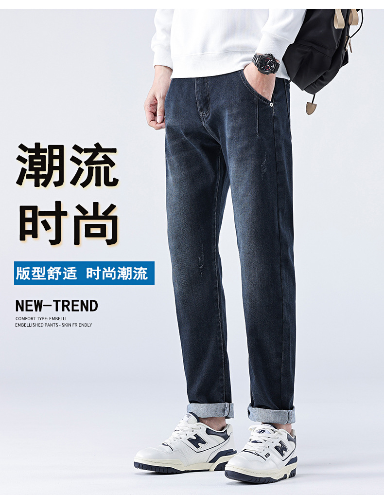 남성용 스트레치 청바지 여름 슬림 스트레이트 팬츠 새로운 한국 스타일 트렌디 캐주얼 다용도 남성용 긴 바지스토어 가기
