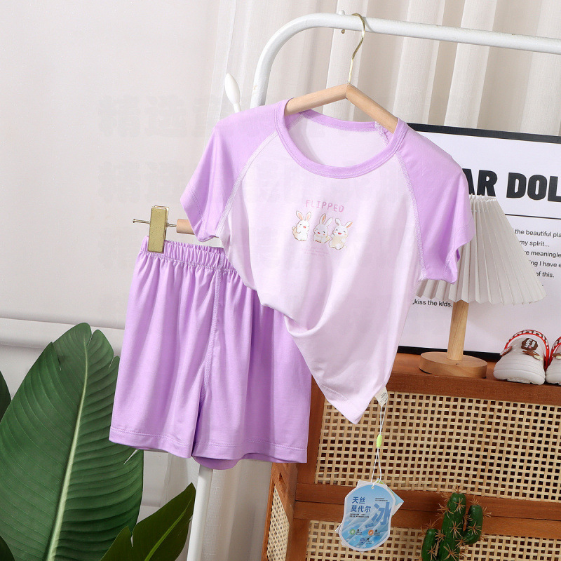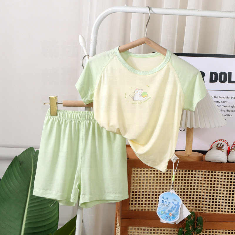 아동용 모달 잠옷 소녀 여름 얇은 반팔 반바지 에어컨 클래스 A 텐셀 루즈 홈웨어 세트