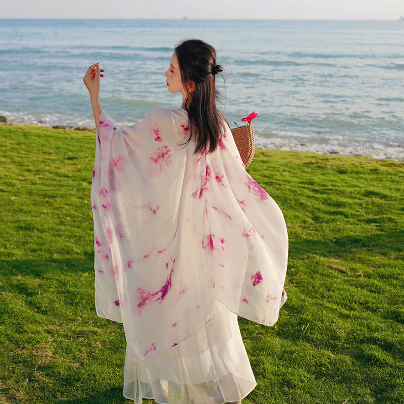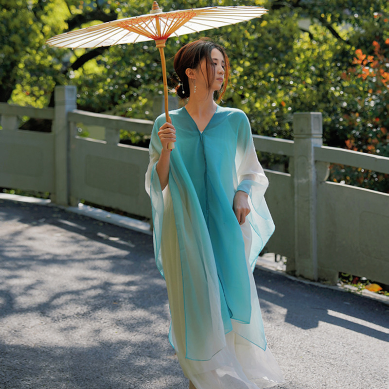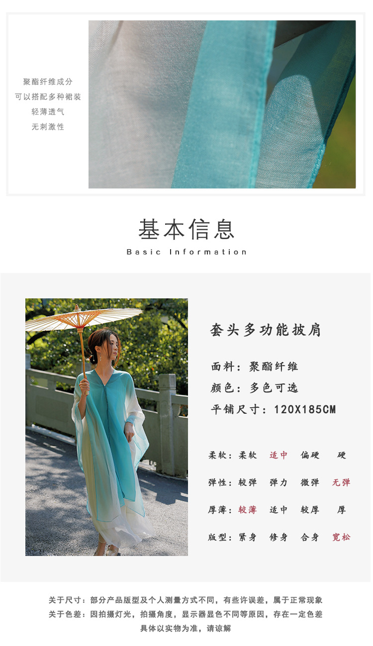 여성을위한 그라디언트 색상 Jiangnan Yunnan 고대 도시 여행 태양 보호 목도리 여름 얇은 대형 실크 스카프 해변 거즈 스카프스토어 가기