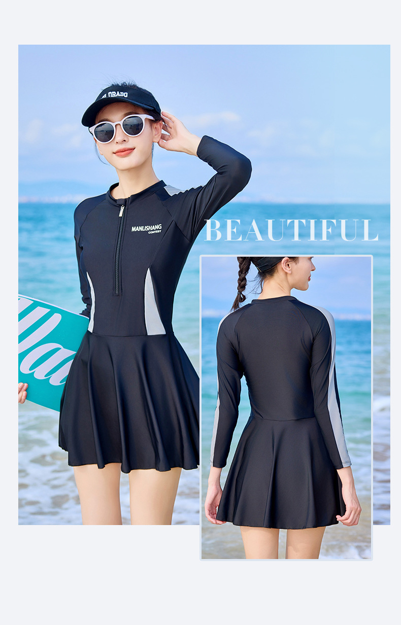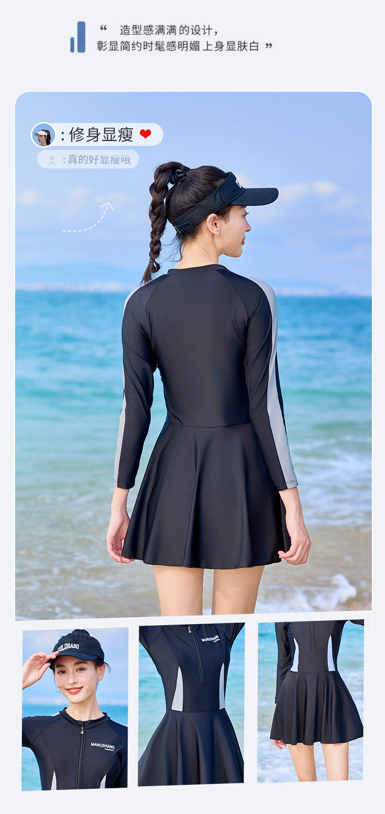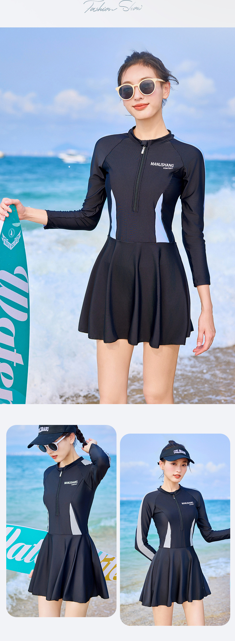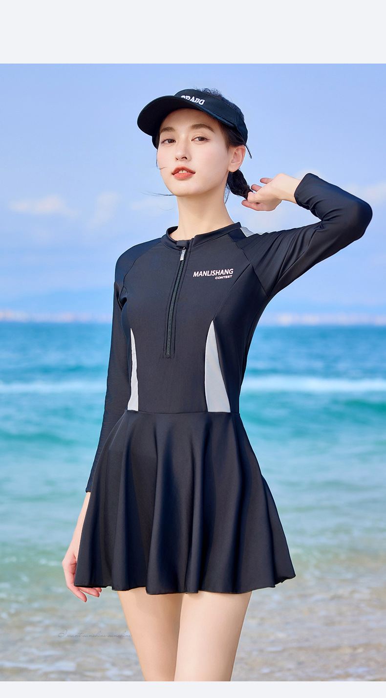 블랙 수영복 여성 원피스 긴팔 자외선 차단제 배 커버 슬리밍 새로운 대형 보수적 수영복 캐주얼 스포츠 수영복스토어 가기